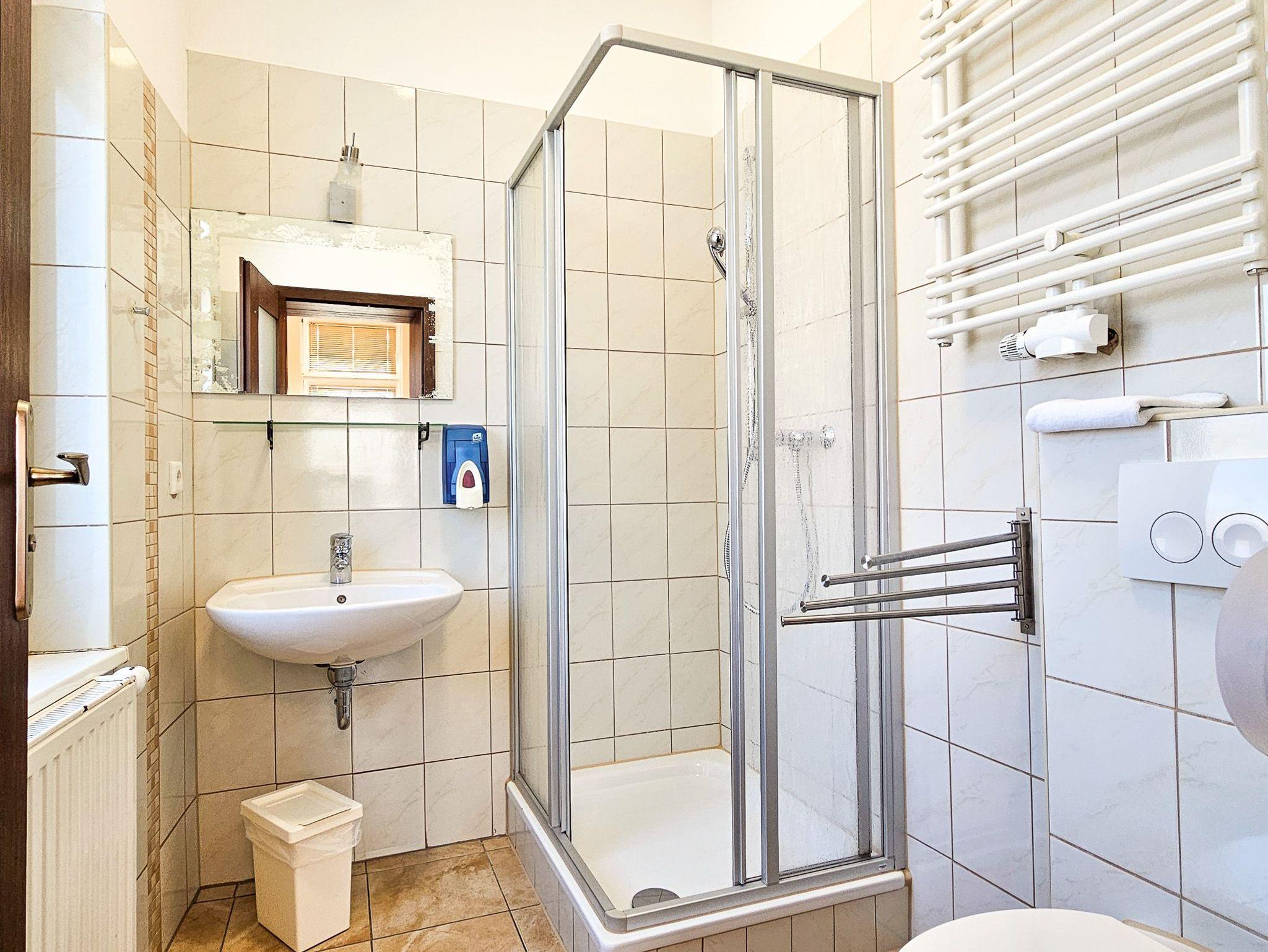 Selbstverständlich steht Ihnen auch ein Badezimmer mit einem WC und einer Dusche zur Verfügung.