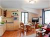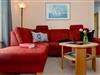 Der helle Wohnraum verfügt über einen kombinierten Wohn- Koch und Essbereich mit offener komplett eingerichteter Küche (Ceranfeld, Geschirrspüler, Kühlschrank mit Gefrierfach, Mikrowelle, Kaffeemaschine, Wasserkocher, und Toaster). Das bequeme Sofa im Wohnzimmer ist der ideale Rückzugsort nach einem erfrischenden Spaziergang an der Ostsee oder der Promenade und dient gleichzeitig als Schlafmöglichkeit (200 x 200cm) für die dritte Person. Ein Flat TV rundet hier den Komfort ab.