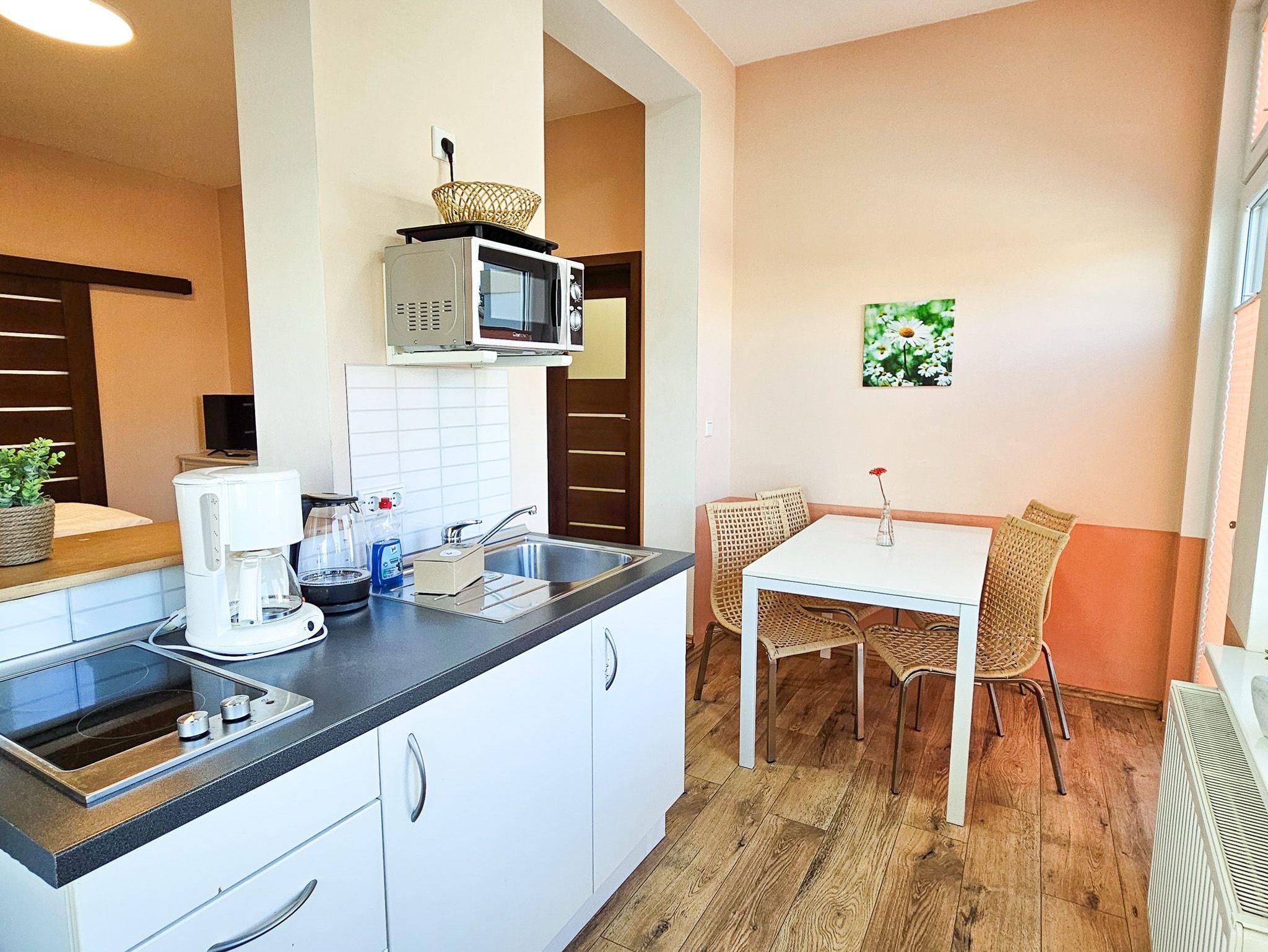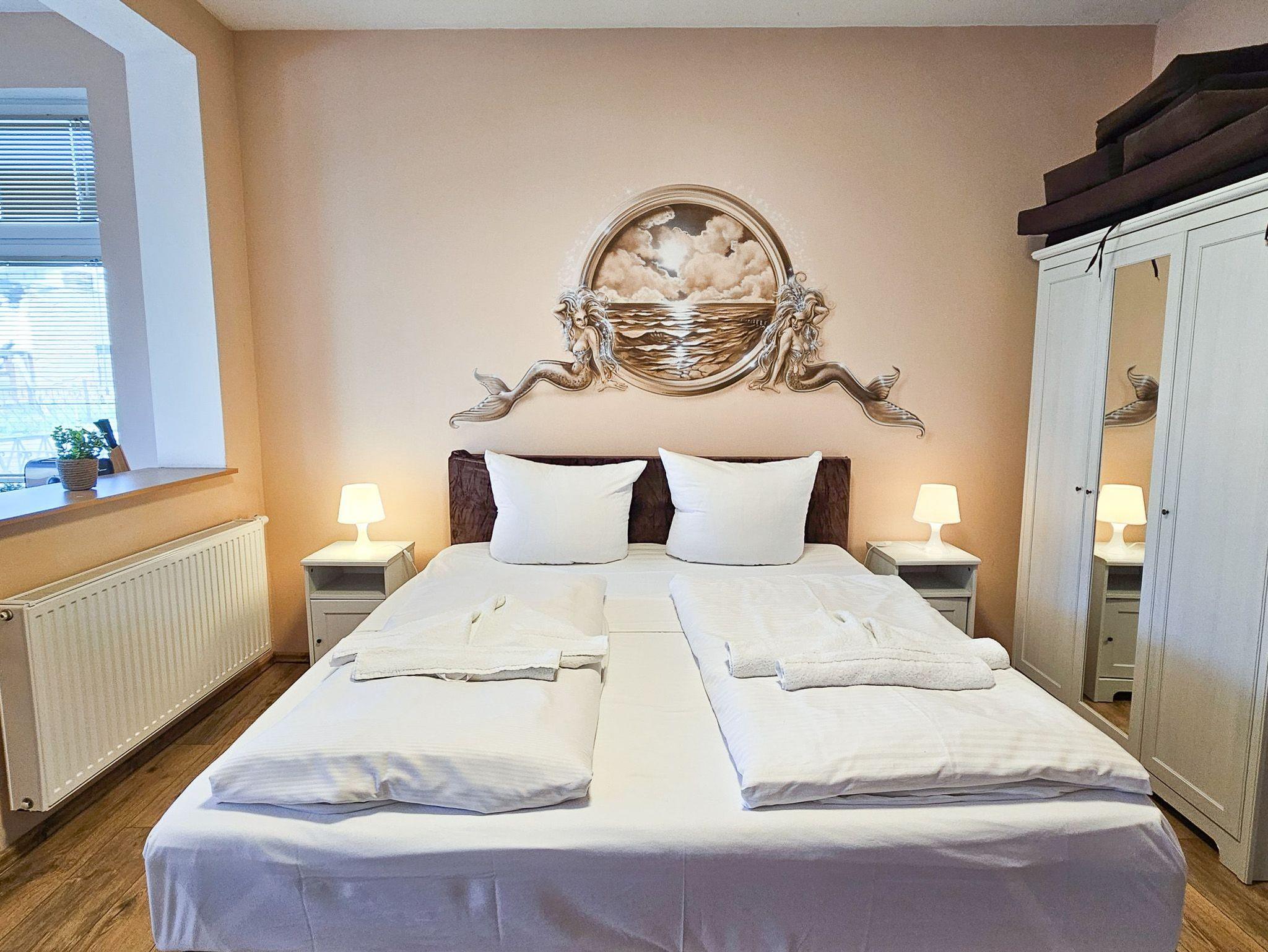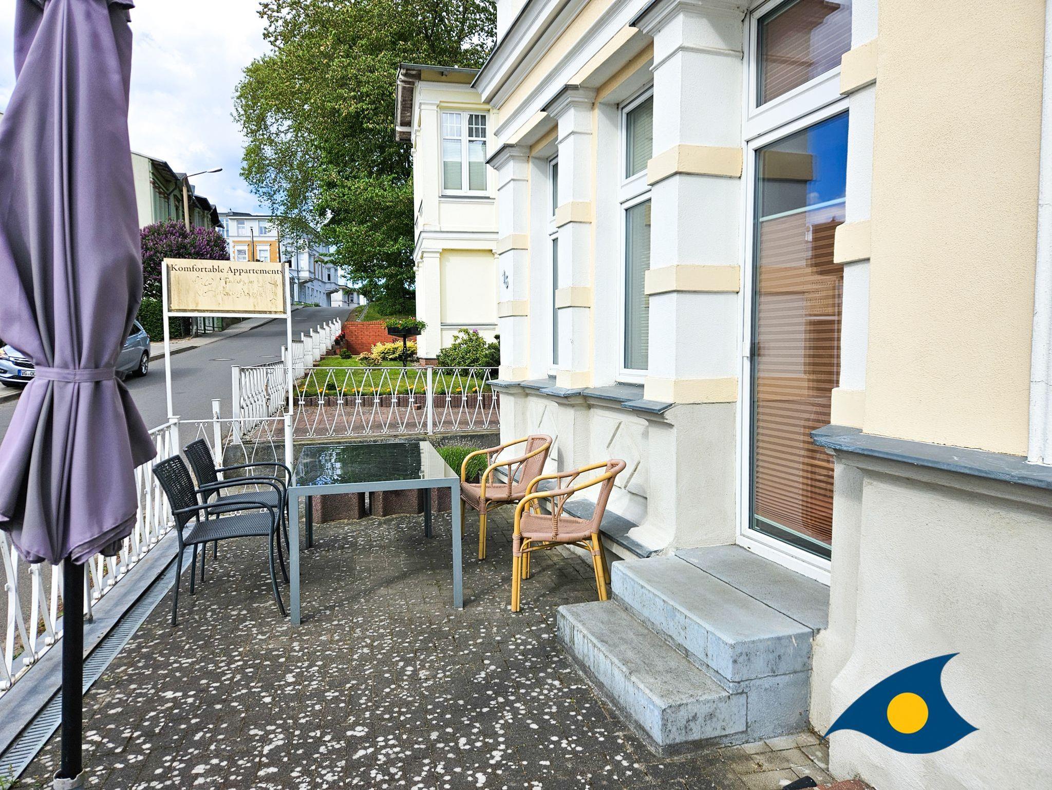 Die 34m² große Ferienwohnung befindet sich im Erdgeschoss der Villa Utpatel und bietet Platz für zwei Erwachsene und ein Kind bis 14 Jahre.