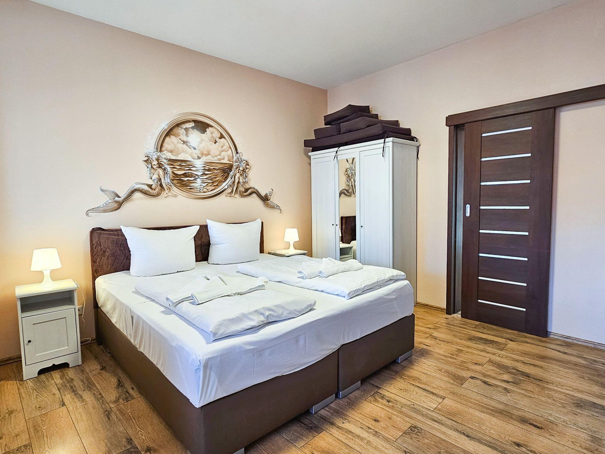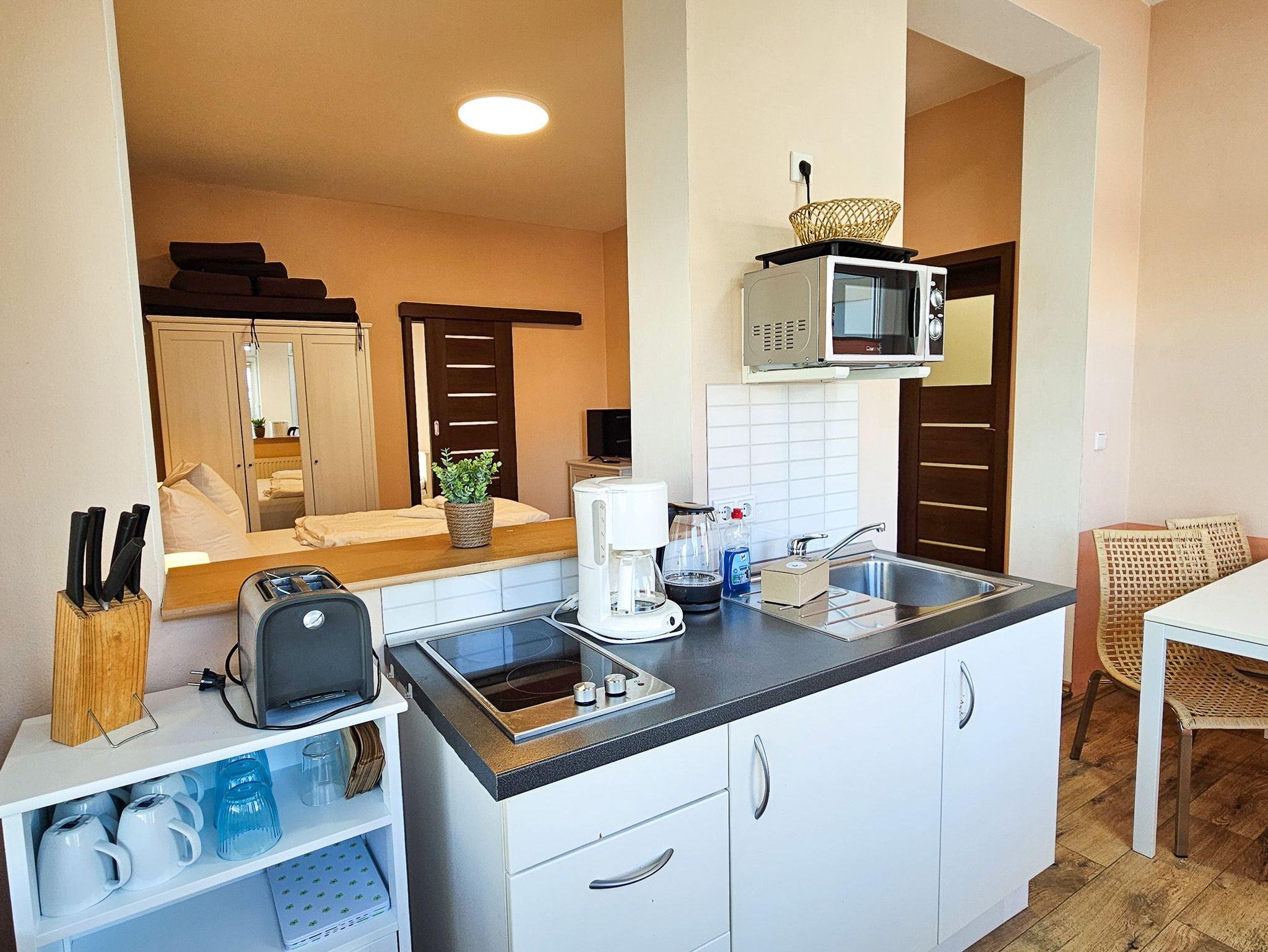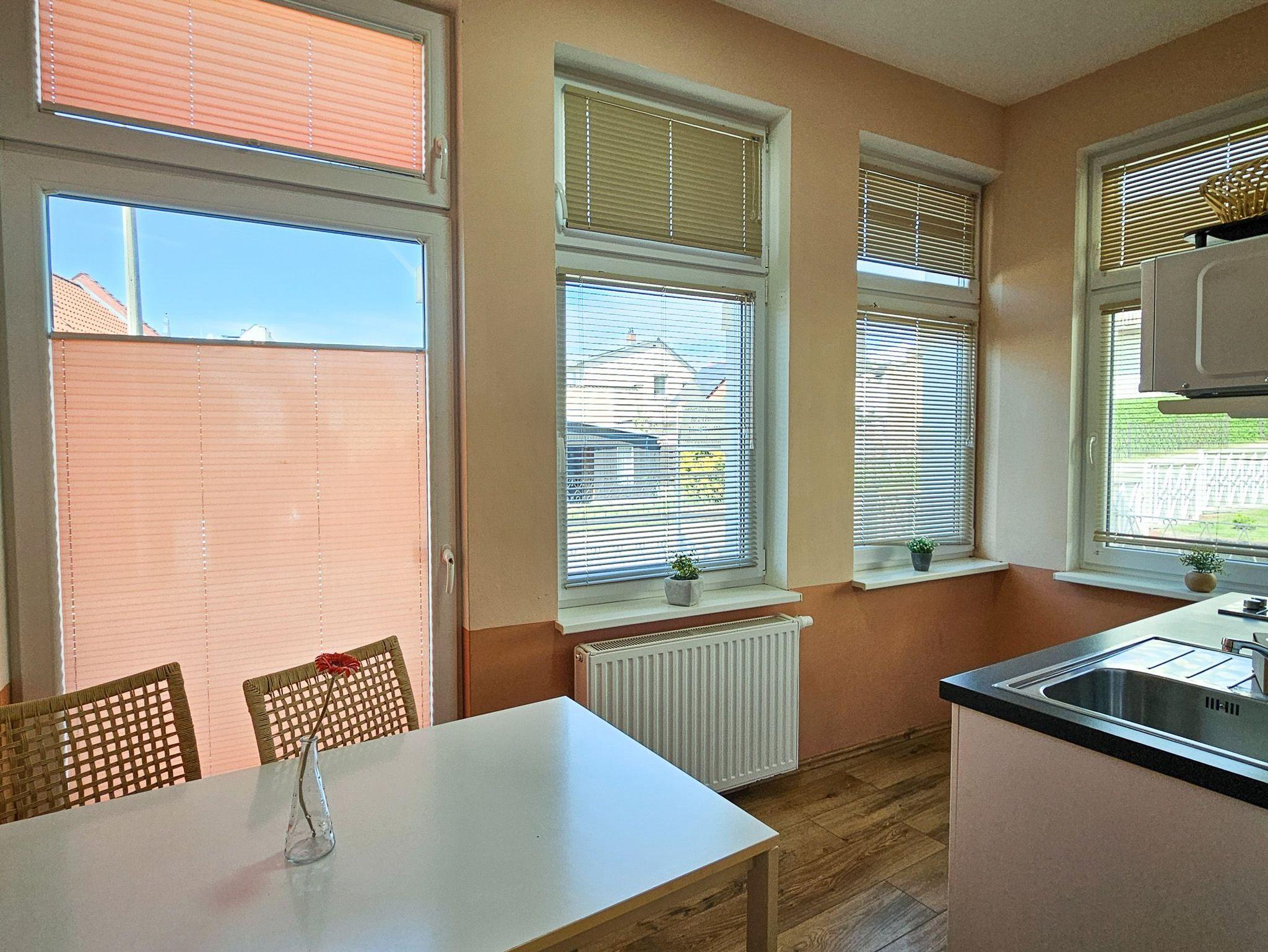 Die 34m² große Ferienwohnung befindet sich im Erdgeschoss der Villa Utpatel und bietet Platz für zwei Erwachsene und ein Kind bis 14 Jahre.
