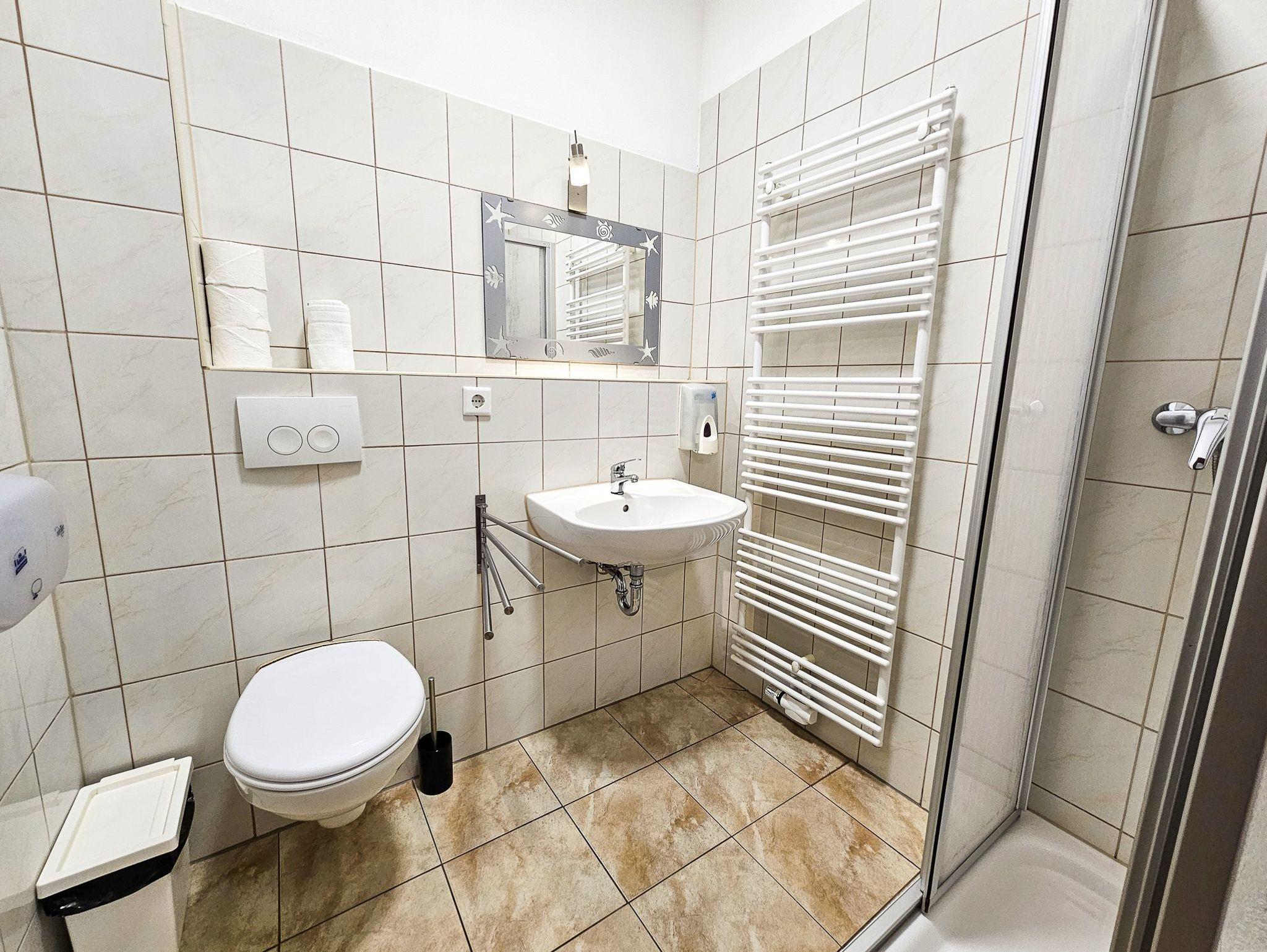 Selbstverständlich steht Ihnen auch ein Badezimmer mit einem WC und einer Dusche zur Verfügung.