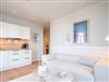 Ob beim Essen, beim Entspannen auf der Couch oder gleich nach dem Aufstehen ? aus dem lichtdurchfluteten Appartement A 3.3 im Haus A der Strandterrasse haben Sie die Ostsee immer im Blick. Hier können Sie von gleich zwei Balkonen und aus den bodentiefen Fenstern die blaue Weite jederzeit genießen. Das 45 Quadratmeter große Urlaubsparadies für zwei Personen befindet sich im 3. Obergeschoss direkt gegenüber der Ahlbecker Seebrücke. Der Wohnbereich zur Seeseite lädt zum Verweilen ein und bietet einen atemberaubenden Ausblick. Das Designkonzept der Einrichtung ist darauf abgestimmt, dass Sie sich rundum wohlfühlen. Helle Möbel und warme Farben versetzen Sie in eine entspannte Stimmung. Ein schöner Essplatz bietet nicht nur Platz für gemeinsame Mahlzeiten, sondern lässt den Blick auch immer wieder über die Ostsee und die Promenade schweifen. Ein bequemes Sofa verführt zum Kuscheln und zum Kinoerlebnis auf dem 43-Zoll-Flachbildfernseher. In das geräumige Wohnzimmer ist eine offene Küchenzeile integriert, die mit hochwertigen Elektrogeräten wie einem Backofen, einem 3-Platten-Induktionskochfeld und einer Nespresso-Kapselmaschine ausgestattet ist. Vom Wohnzimmer aus haben Sie Zugang zum Nord-Balkon mit einem Tisch und zwei Stühlen. Hier sind Sie dem Rauschen der Wellen noch ein Stück näher. Das Schlafzimmer verfügt über ein luxuriöses Boxspringdoppelbett (1,80m x 2,00m), einen extra angefertigten Kleiderschrank mit viel Stauraum und einen weiteren 43-Zoll-Flachbildfernseher für Ihre Unterhaltung. Von hier aus können Sie auf den zweiten Balkon in Nord-West-Richtung hinaustreten. Inhalieren Sie die gesunde Meeresbrise tief ein und genießen Sie entspannte Mußestunden auf der Sonnenliege. Im innenliegenden Bad ist mit Dusche, Waschtisch und Toilette alles vorhanden, was Sie zum Frischmachen brauchen. Ein reservierter PKW-Stellplatz in der Tiefgarage sorgt dafür, dass Ihr Fahrzeug sicher untergebracht ist. Dann kann es ja losgehen mit den wundervollen und erlebnisreichen Tagen am Meer.
