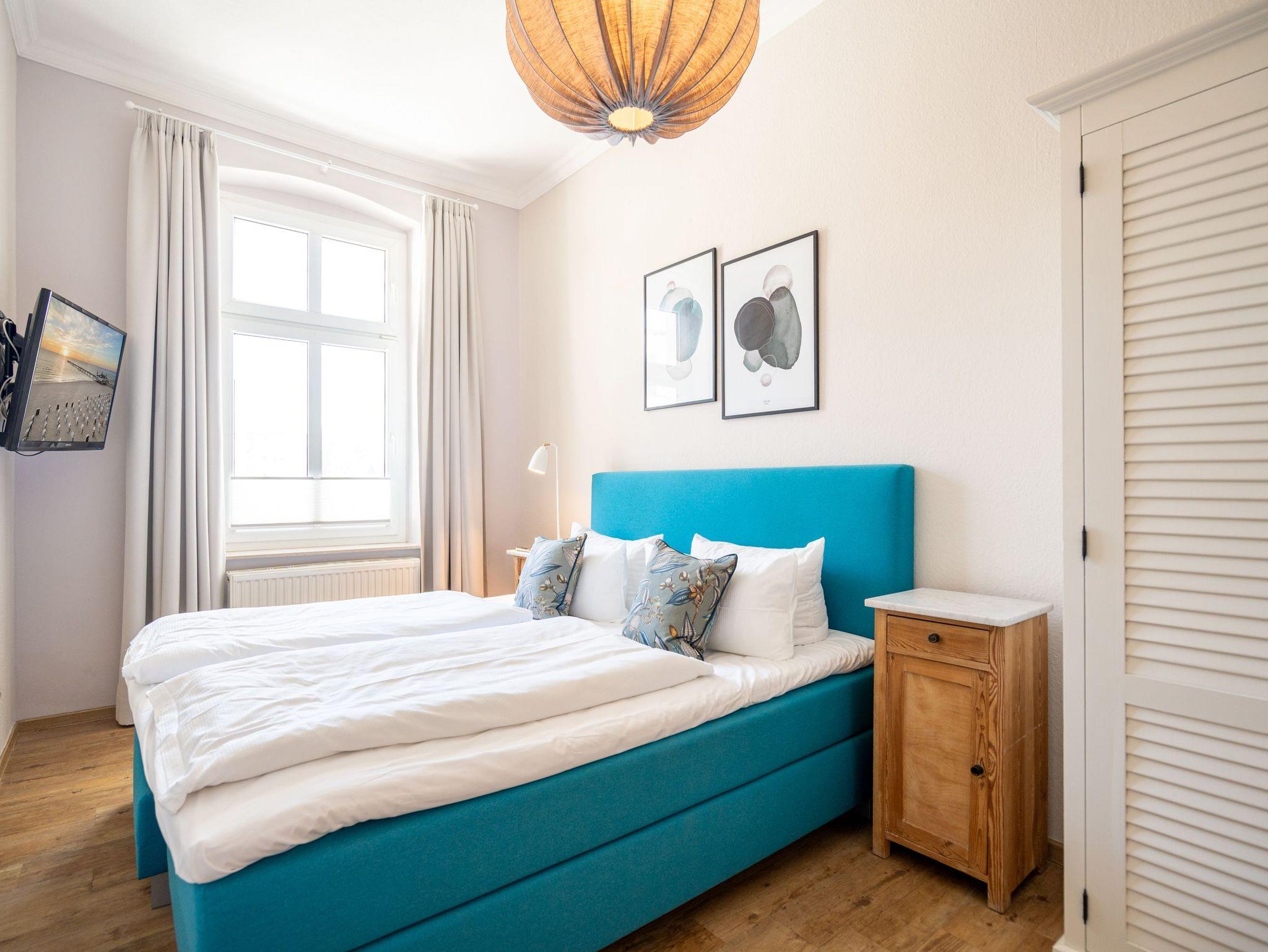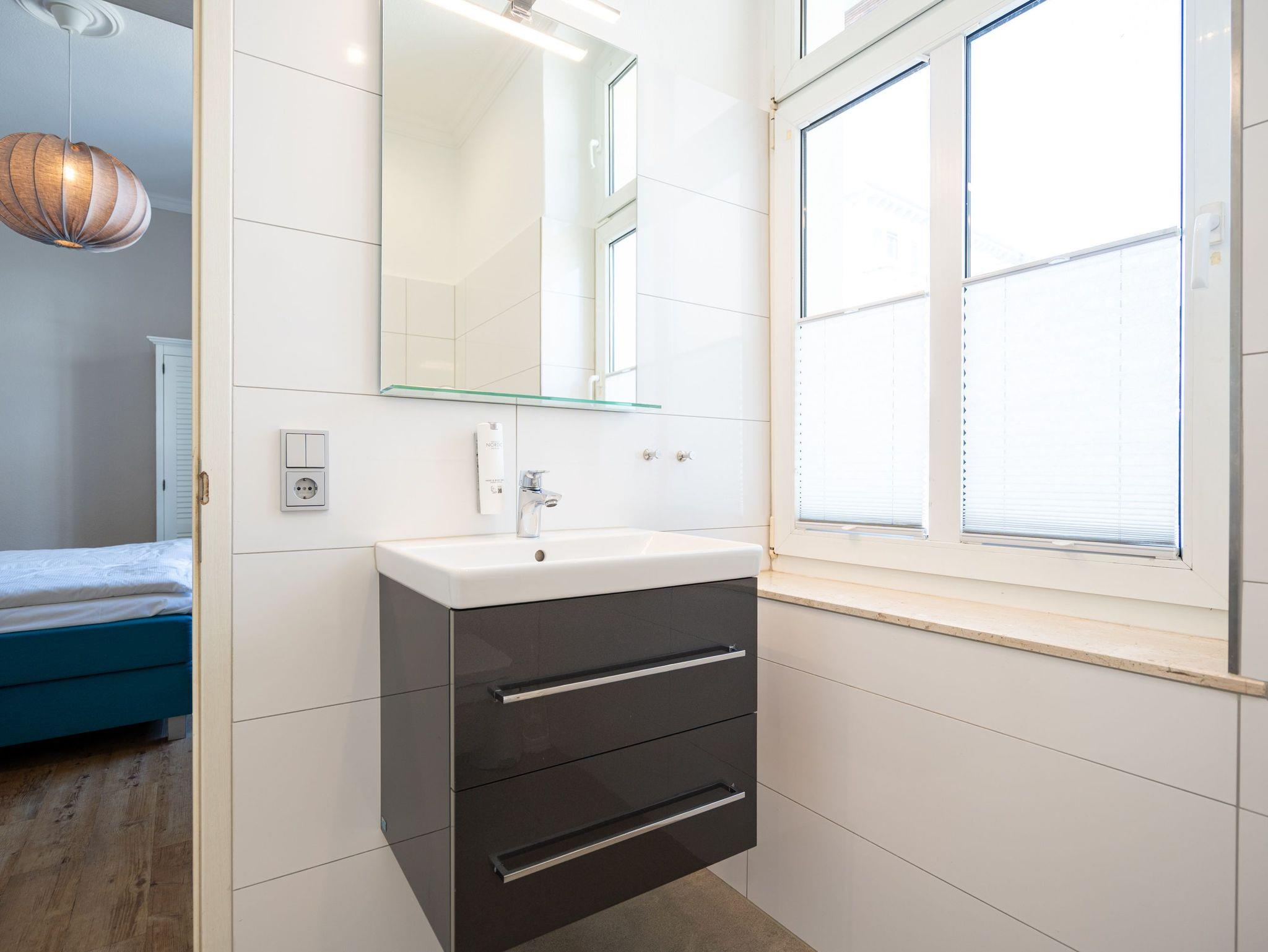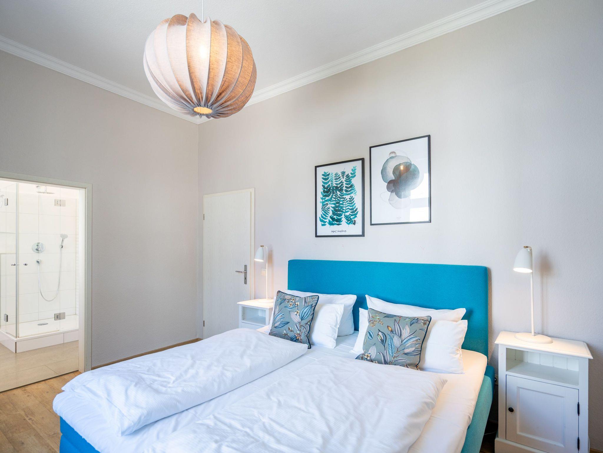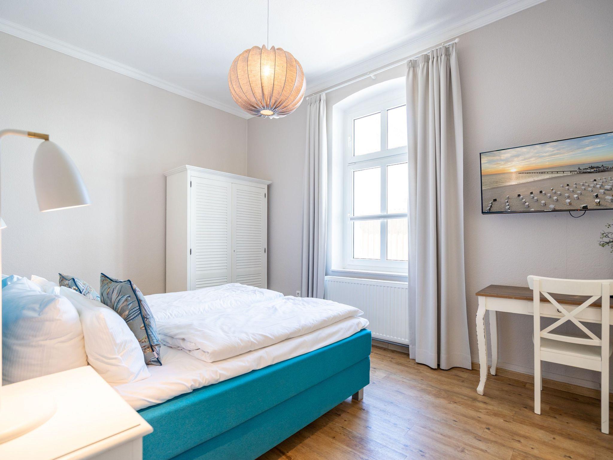 Von der schönen großen Terrasse aus können Sie an schönen Tagen vollauf die frische Seeluft genießen. Denn die Ostsee ist nur ein paar Meter entfernt. Lassen Sie sich in das Rauschen der Wellen fallen und schalten Sie einmal vollkommen ab. Vom Frühling bis in den Herbst hinein ist die Terrasse mit Gartenmöbeln und Strandkorb bestückt, so dass Sie hier schon zum Frühstück in der Sonne sitzen können. Die ganze Wohnung Nummer 1 in der Villa Albertine lädt auf ihren 80 Quadratmetern nur dazu ein, sich in ihr wohlzufühlen. Hier können Sie mit bis zu sechs Personen entspannt Urlaub machen. Drei Schlafzimmer mit komfortablen Boxspringdoppelbetten ausgestattet, schenken Ihnen erholsame Träume. Große Schränke bieten viel Ablagefläche. Kommen Sie in der schönen und offenen Wohnküche zu gemeinsamen Mußestunden beim Relaxen auf der bequemen Sitzgruppe oder zum genussvollen Dinieren zusammen. Die Küche bietet alles, was Sie für die Zubereitung eines schönen Essens benötigen. Hochwertige Geräte und erlesenes ASA-Geschirr sorgen dafür, dass das Kochen Spaß macht. Eine helle und zum Wohnzimmer hin offene Veranda lässt Sie eintauchen in die mondäne Zeit der Bäderarchitektur. Hier können Sie am großen Esstisch wunderbare Auszeitstunden verbringen. Die Wohnung verfügt über zwei Dusch-Bäder. Bei Ihrer Anreise sind die Betten bereits bezogen und Handtücher liegen bereit. In der Tiefgarage steht Ihnen für Ihr Auto ein Tiefgaragenplatz zur Verfügung.