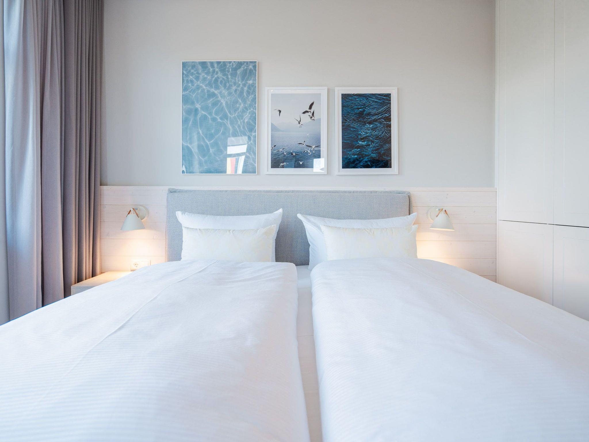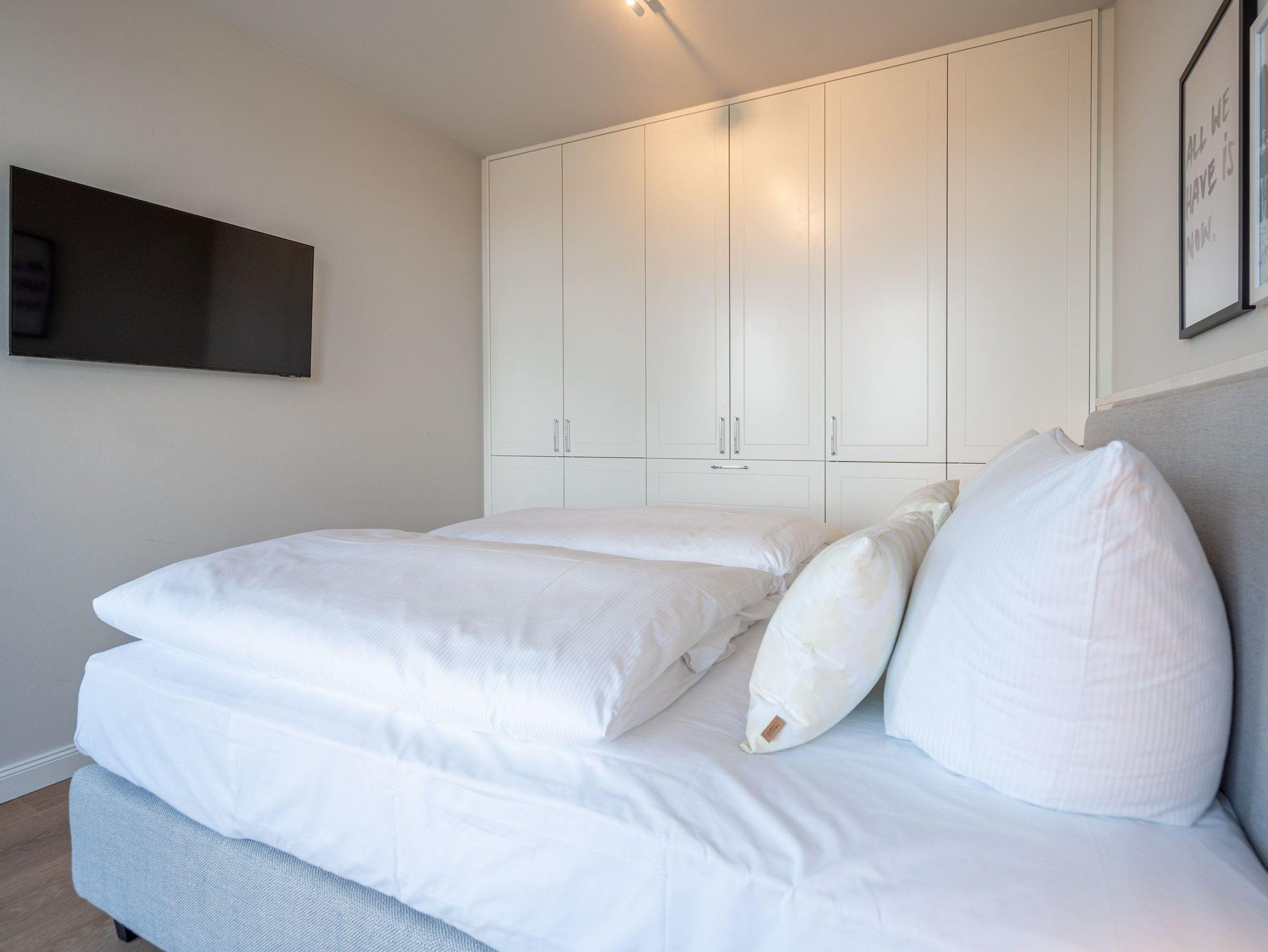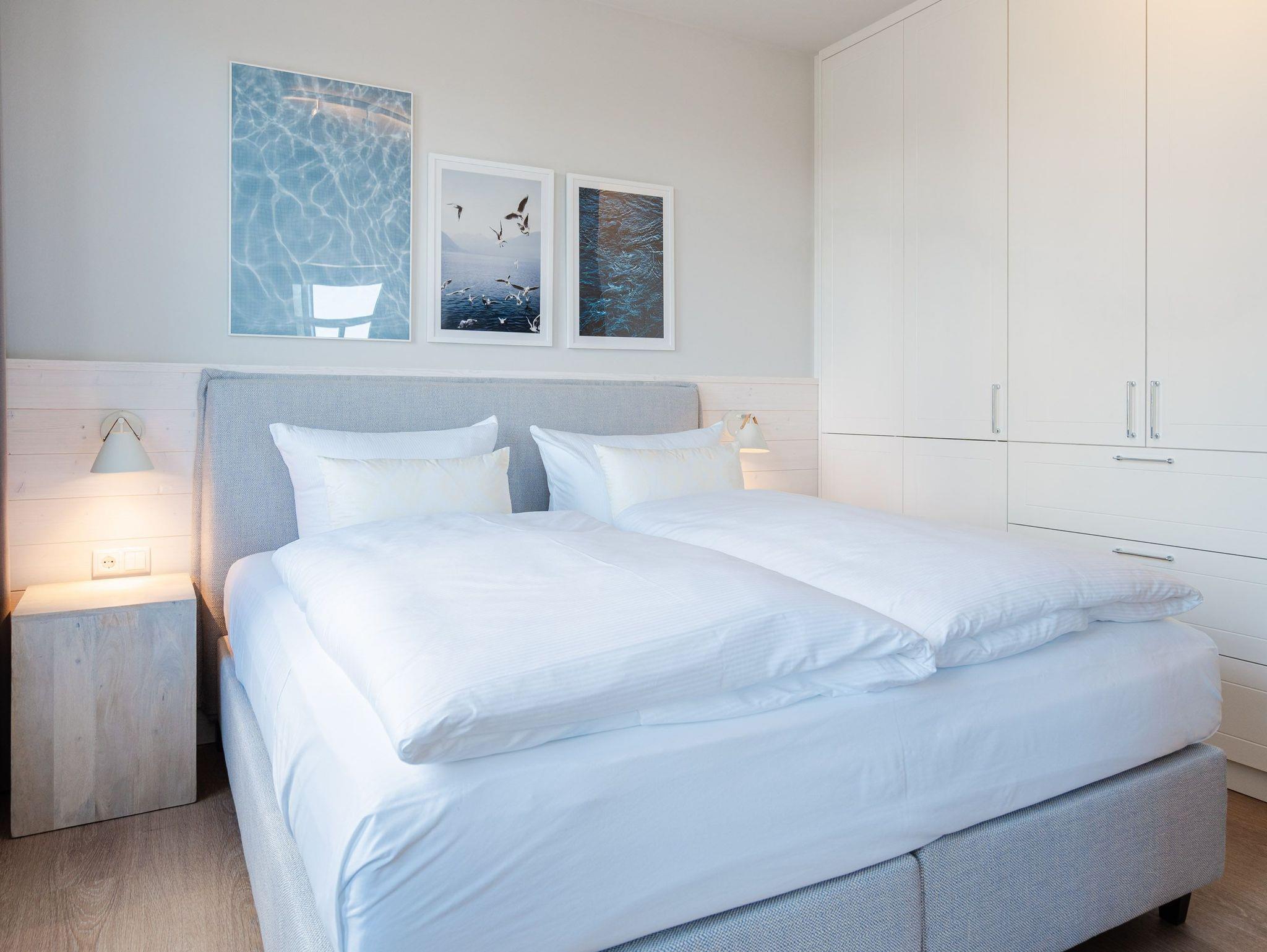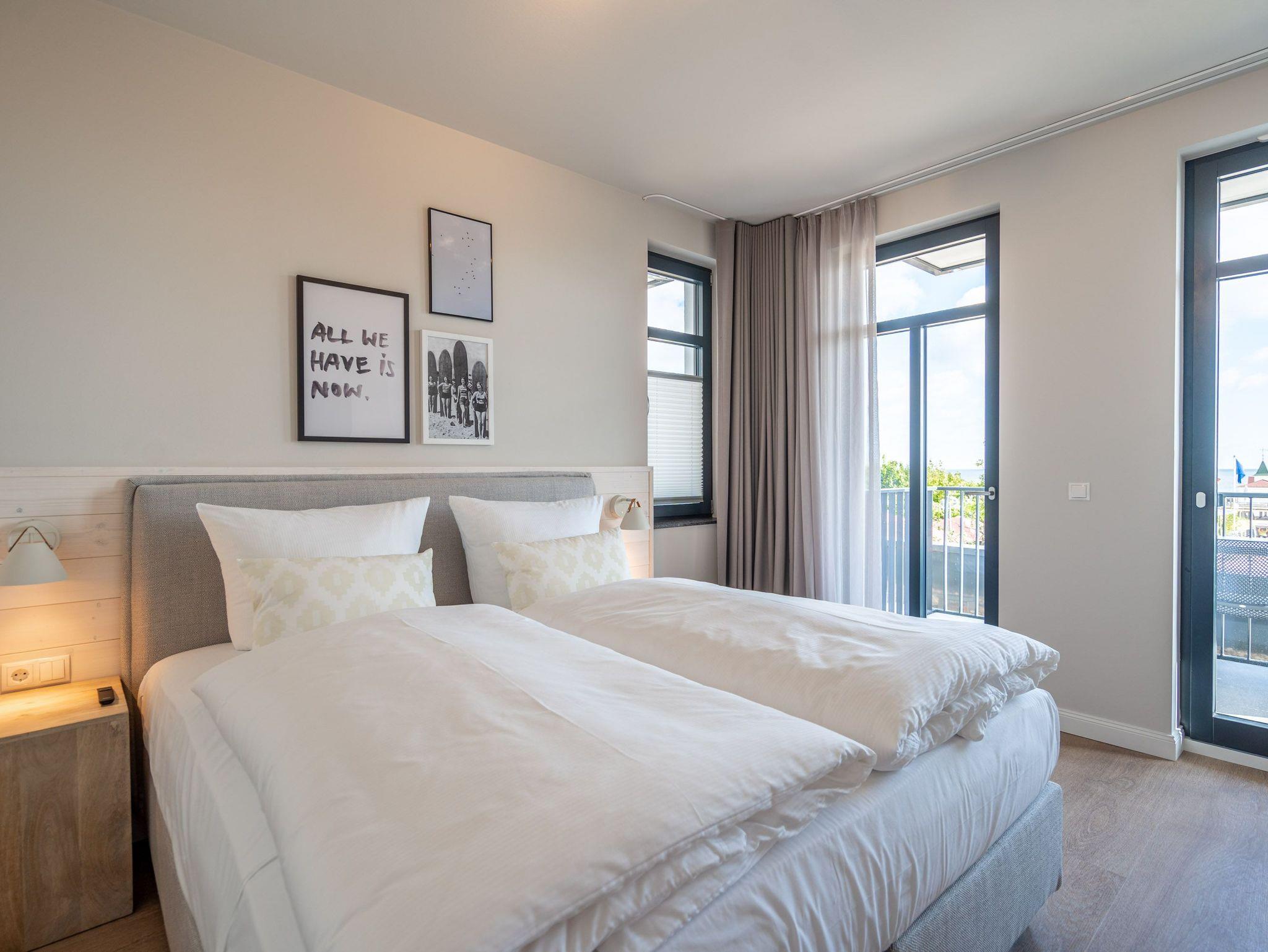 Dem Ostseerauschen ganz nah sind Sie in diesem schönen und modernen 3-Raum-Appartement im 1. Obergeschoss mit fantastischer Aussicht. Denn das 78-Quadratmeter-Wohlfühlreich für bis zu 4 Personen hat direkten Blick auf die Ahlbecker Seebrücke. Freuen Sie sich auf eine exklusive Auszeit in bester Lage. Denn das wohl bekannteste Postkartenmotiv der Insel Usedom liegt Ihrem Feriendomizil zu Füßen. Das Appartement verfügt über ein Wohnzimmer und zwei Schlafzimmer. Genießen Sie die Zeit im offenen Wohn- und Essbereich, der zur Seeseite hin ausgerichtet ist. Hier kommen Sie aus dem Schwärmen gar nicht mehr heraus. Gemeinsame Stunden werden hier zu unvergesslich schönen Erinnerungen. Kochen Sie zusammen in der mit allem ausgestatteten Küchenzeile und entspannen Sie auf der gemütlichen Sitzgruppe mit Sofa und Sessel. Der Elektrokamin (ohne Wärmeabgabe) sorgt für eine hyggelige Atmosphäre, während der 50-Zoll-Flachbildfernseher sich um das Entertainment kümmert. Mit gleich drei Balkonen (2 x Nordausrichtung und 1x Richtung Osten) können Sie das Lichtspiel auf der Ostsee vom Sonnenaufgang bis in den Abend beobachten, wenn sich der Himmel über dem Meer von zartem Rosa bis ins Orangegelb und Feuerrot einfärbt. Von hier aus können Sie nachts zu Midsommar den roten Streifen am Horizont über der Ostsee deutlich sehen. Die zwei Schlafzimmer sind jeweils mit einem komfortablen Boxspringdoppelbett (1,80m x 2,00m), einem großen Kleiderschrank ausgestattet. Angenehme Träume sind garantiert. Beide Schlafzimmer verfügen zudem über einen 43-Zoll-Flachbildfernseher. Eines der Schlafzimmer hat einen Zugang zum dritten Balkon, so dass Sie schon beim Aufwachen Meerblick haben. Schnick, schnack, schnuck kann im Fall der Fälle hilfreich sein. Für Ihren Komfort stehen Ihnen zwei innenliegende Bäder mit Dusche, WC und Waschtisch zur Verfügung. Ein PKW-Stellplatz in der Tiefgarage gehört ebenfalls zur Wohnung. Kommen Sie an und lassen Sie die Alltagssorgen los. Erleben Sie erholsame Tage in der Strandterrasse und lassen Sie sich von dem traumhaften Ausblick und den Annehmlichkeiten dieser komfortablen Ferienwohnung verzaubern.
