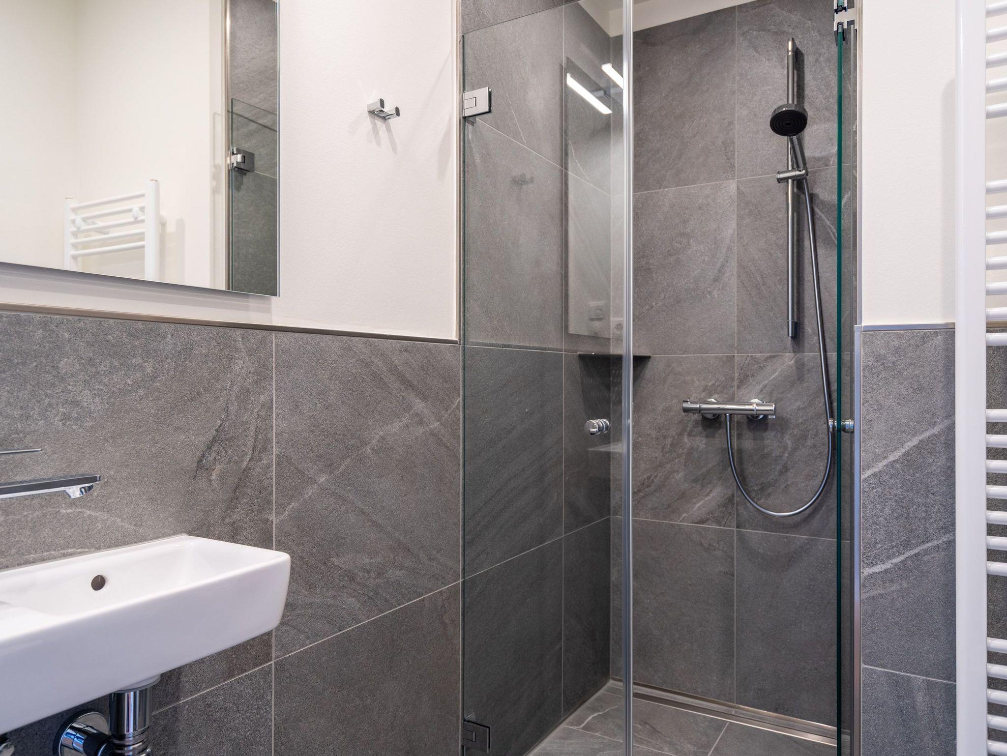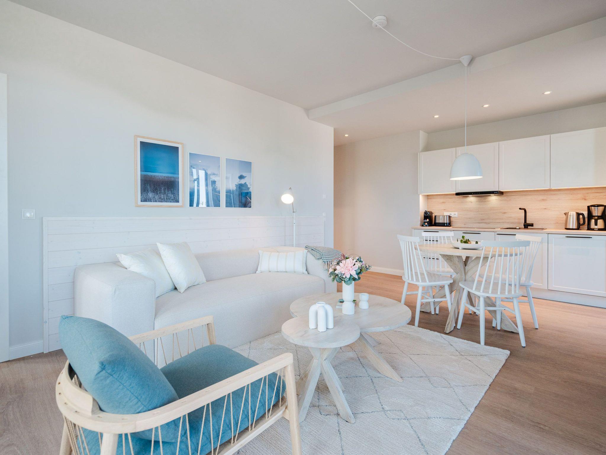 Die 2024 fertig gestellte Strandterrasse liegt direkt an der belebten Strandpromenade und bietet einen einzigartigen Ausblick auf die Grand Dame der historischen Seebrücken sowie die historische Konzertmuschel, einem beliebten Treffpunkt für Kunst und Kultur. Dahinter liegt die Ostsee ? ein Panorama, das zu den schönsten in den Kaiserbädern gehört. Es ist wie das Abtauchen in eine andere Zeit. In eine Zeit, in der man mit Stock, Sonnenschirm und Hut fürs „Sehen und gesehen werden“ über die Promenade schlenderte; aber auch in eine Zeit, in der ? damals wie heute ? Zeit einmal für eine kurze Weile keine Rolle spielt. Weil man angekommen ist im Loslassen, Entspannen und Genießen. Es ist dieser besondere Geruch nach Meeresluft und Freiheit, der in Erinnerung bleibt. Dazu die Bilder, die man mitnimmt. Von langen Strandspaziergängen, vom Lachen in fröhlich schäumenden Ostseewellen, von der Zeit in einem wunderschönen Urlaubsdomizil. Denn genau das ist die Strandterrasse mit ihren 56 modernen und exklusiven Ferienappartements direkt gegenüber der Ahlbecker Seebrücke. Die Ein-, Zwei- oder Dreizimmerwohnungen ? zwischen 40 und 70 Quadratmeter groß ? sind von einer Innenarchitektin gemeinsam mit unserem Erfahrungsschatz an Gästewünschen mit viel Liebe zum Detail und ganz individuell konzipiert worden. Entspannung und Wohlfühlen stehen an erster Stelle. Alles ist aufeinander abgestimmt und sorgt für eine gemütliche Atmosphäre. Wählen Sie zwischen einem Domizil in einem hellen, sandfarbenen Designkonzept oder einem Appartement mit anthrazitfarbenen Farbakzenten. Alle Appartements verfügen gleichermaßen über eine stilvolle und komfortable Einrichtung, die passgenau angefertigt worden ist, sowie über moderne Küchen und Bäder. Jedem Schlafzimmer ist ein eigenes Bad mit Dusche zugeordnet (außer App. B4.5). Die Appartements besitzen fast alle einen Balkon ? viele schauen sogar zur Ostsee hinaus. Die meisten Feriendomizile haben einen Elektrokamin und Infrarotsaunen. Im Erdgeschoss befindet sich ein separater Gemeinschaftsraum für Fahrräder. Außerdem besteht die Möglichkeit, im Gemeinschaftswaschraum 2 Waschmaschinen [&] Trockner zu nutzen. Ergänzt wird das Angebot durch eine Gemeinschaftssauna, die täglich von 11:00 bis 22:00 Uhr nutzbar ist. In der Tiefgarage (Einfahrtshöhe 2,03 Meter) steht für jede Wohnung 1 Pkw-Stellplatz zur Verfügung. Ist alles zur Zufriedenheit untergebracht? Dann kann der Urlaub ja beginnen. Und beim Blick vom Balkon über die Ostsee treffen sich zum Sonnenaufgang das Heute und das Damals. Gelassenheit legt sich beim Gang hinunter an den Strand auf die Seele. Jetzt darf die Zeit stehenbleiben.