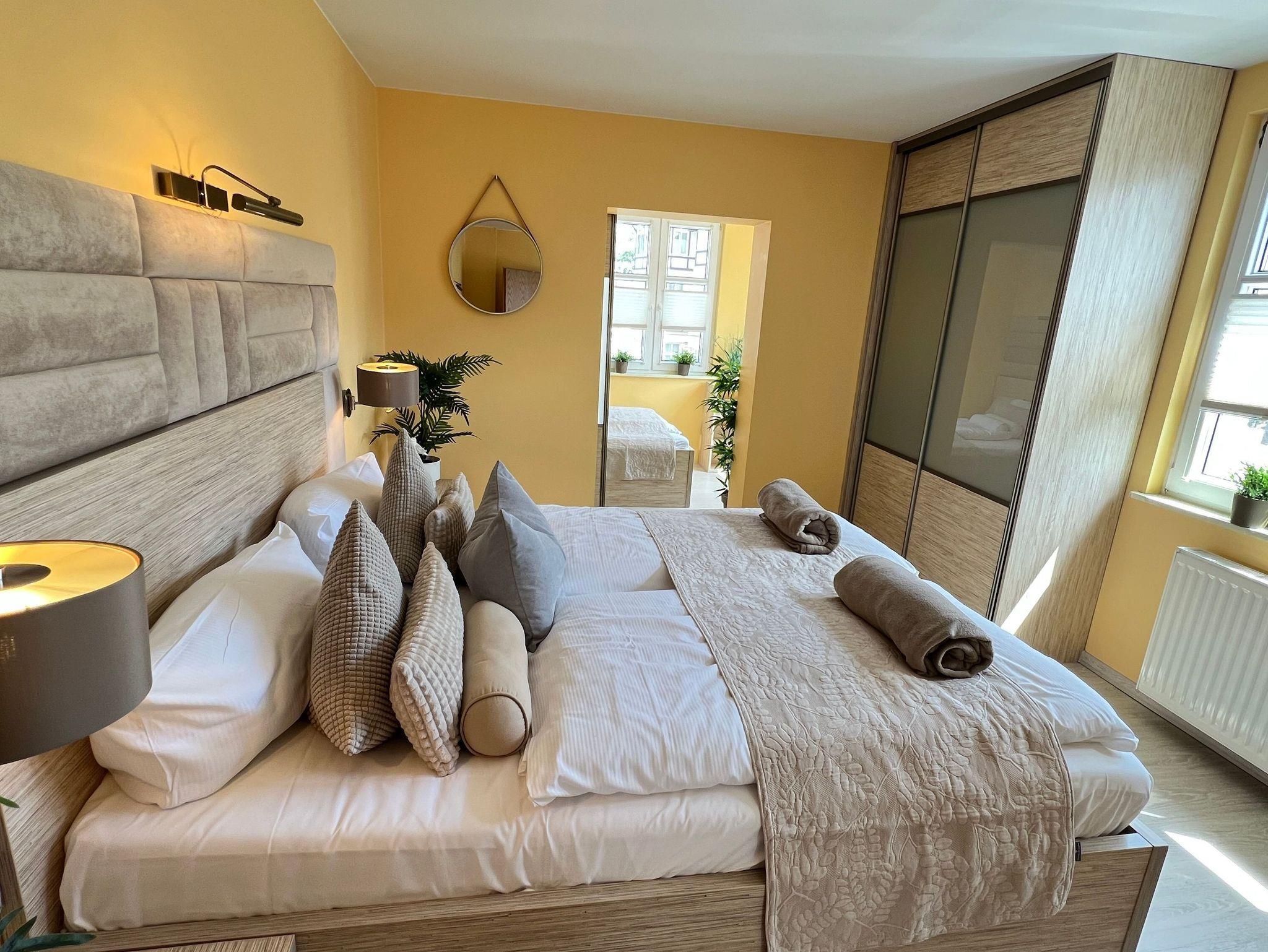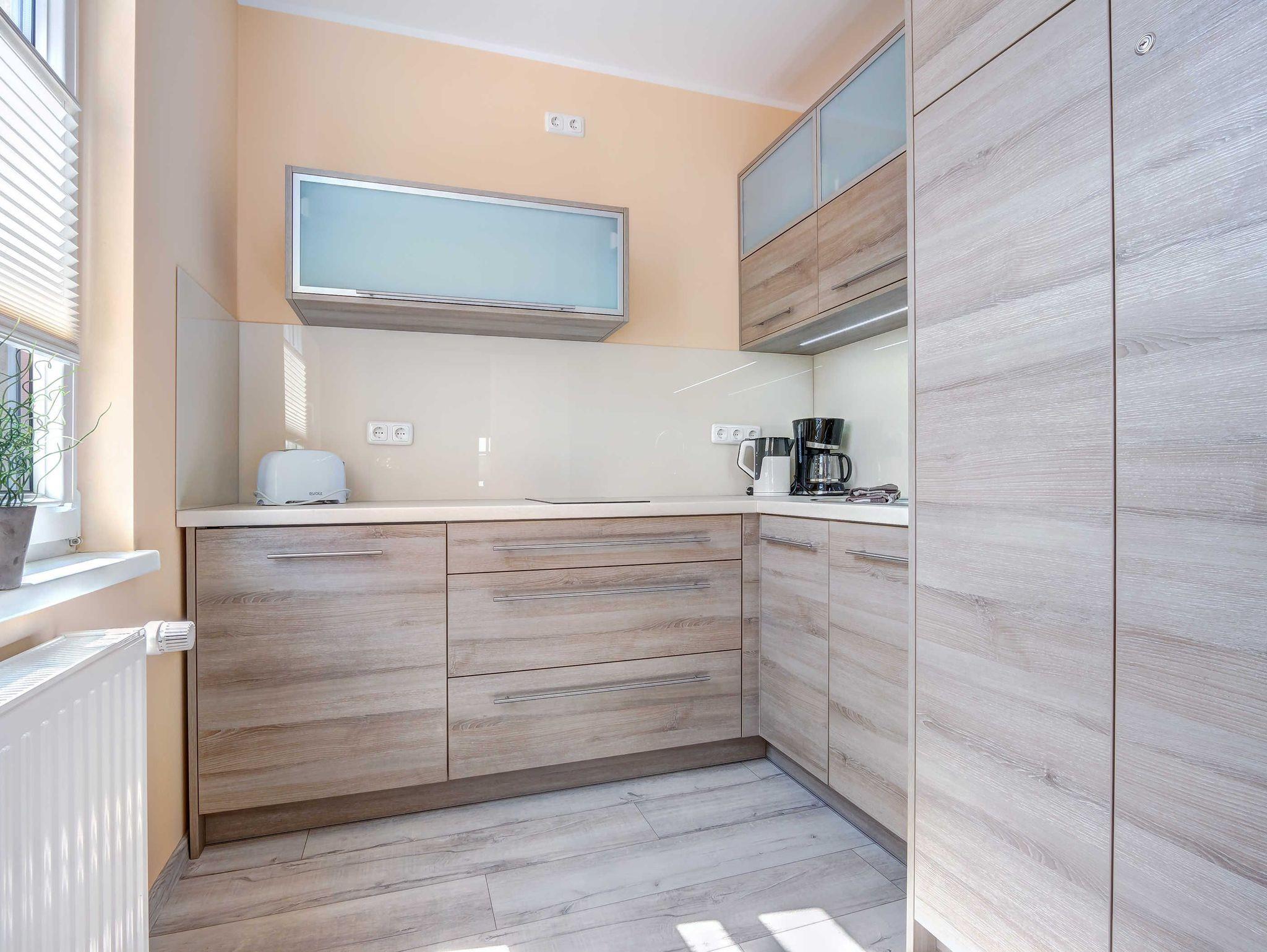 Die nur 80 Meter vom Strand entfernte Obergeschosswohnung besticht durch seine Helligkeit. Viele Fenster in einem Erker mit Tisch und Sitzmöglichkeiten dienen Ihrer Gemütlichkeit. Ein großzügiger Wohn-/Schlafraum sowie ein zweites, separates Schlafzimmer sorgen für Familien mit ausreichend Platz. Zwei große Betten (160cm und 140cm) sowie eine farblich harmonischer Ruhesessel lassen Ihrer Ruhe keine Wünsche offen. Eine moderne, grundausgestattete Einbauküche, LED-SMART-TV, HiFi-Anlage und Internetzugang lassen Sie bei uns alle Sorgen vergessen. Ihr Appartement ist sowohl Allergiker wie Nichtraucher freundlich. Weiße, kräftige Baumwollbettwäsche und weiche Handtücher werden Ihnen schmeicheln. Geschirrtücher und Duschvorleger sind vorhanden. Interessant für junge Familien sind die Unterbringungsmöglichkeiten mitgebrachten Eigentums (entweder im Haus Ihres Appartements Parterre oder im Fahrradschuppen). Auf dem Hof finden Sie Wäscheständer für Ihre nasse Wäsche. Ihrem Fahrzeug ist ein Parkplatz direkt am Ferienhaus reserviert. Für eventuell benötigte Hochstühle oder Kinderreisebetten entstehen Ihnen nach Rücksprache keine zusätzlichen Kosten. Bitte informieren Sie uns über Ihre Wünsche rechtzeitig.