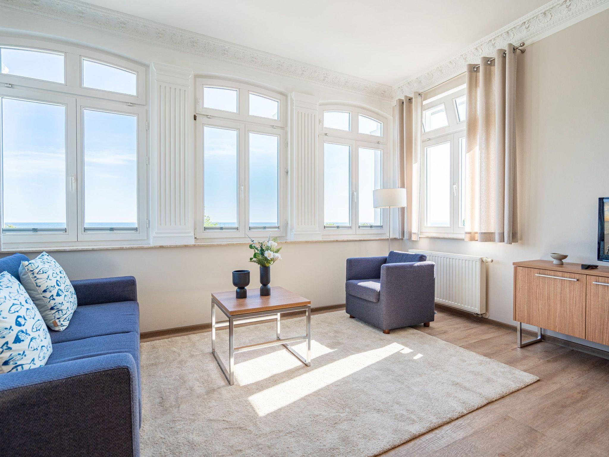 Die 2-Raum-Ferienwohnung Nr. C11 in der Villa Seedüwel bietet auf 41 qm gemütlichen Platz für zwei Personen und liegt im 2. Obergeschoss. Der offene Wohnbereich begeistert mit einem traumhaften Blick auf die Ostsee und ist mit einer Küchenzeile ausgestattet, die ein 2-Platten-Cerankochfeld, eine Mikrowelle und einen Kühlschrank mit Gefrierfach umfasst. Ein Essplatz für zwei Personen, eine Sitzgruppe und ein Flat-TV vervollständigen den Wohnbereich. Das Schlafzimmer verfügt über ein komfortables Doppelbett (1,80 m x 2,00 m) und einen Kleiderschrank. Auch von hier aus genießen Sie den Blick auf die Ostsee. Das innenliegende Bad ist mit einer Dusche und einem Waschbecken ausgestattet, und es gibt ein separates WC. Ein Stellplatz in der Tiefgarage ( Einfahrthöhe 2,03m) des benachbarten Hauses ?Strandterrasse? ist für Sie reserviert. WLAN steht Ihnen kostenfrei zur Verfügung.