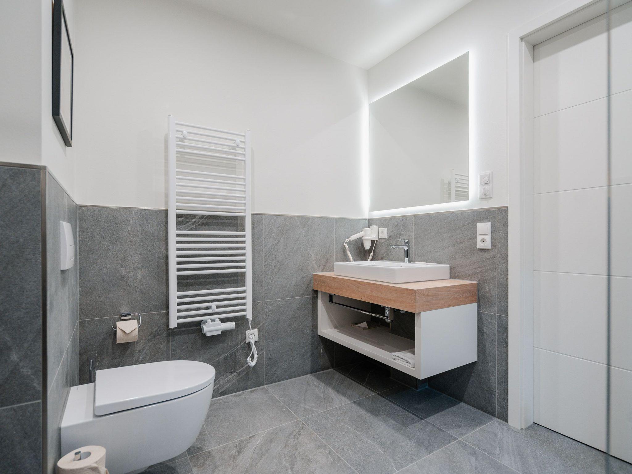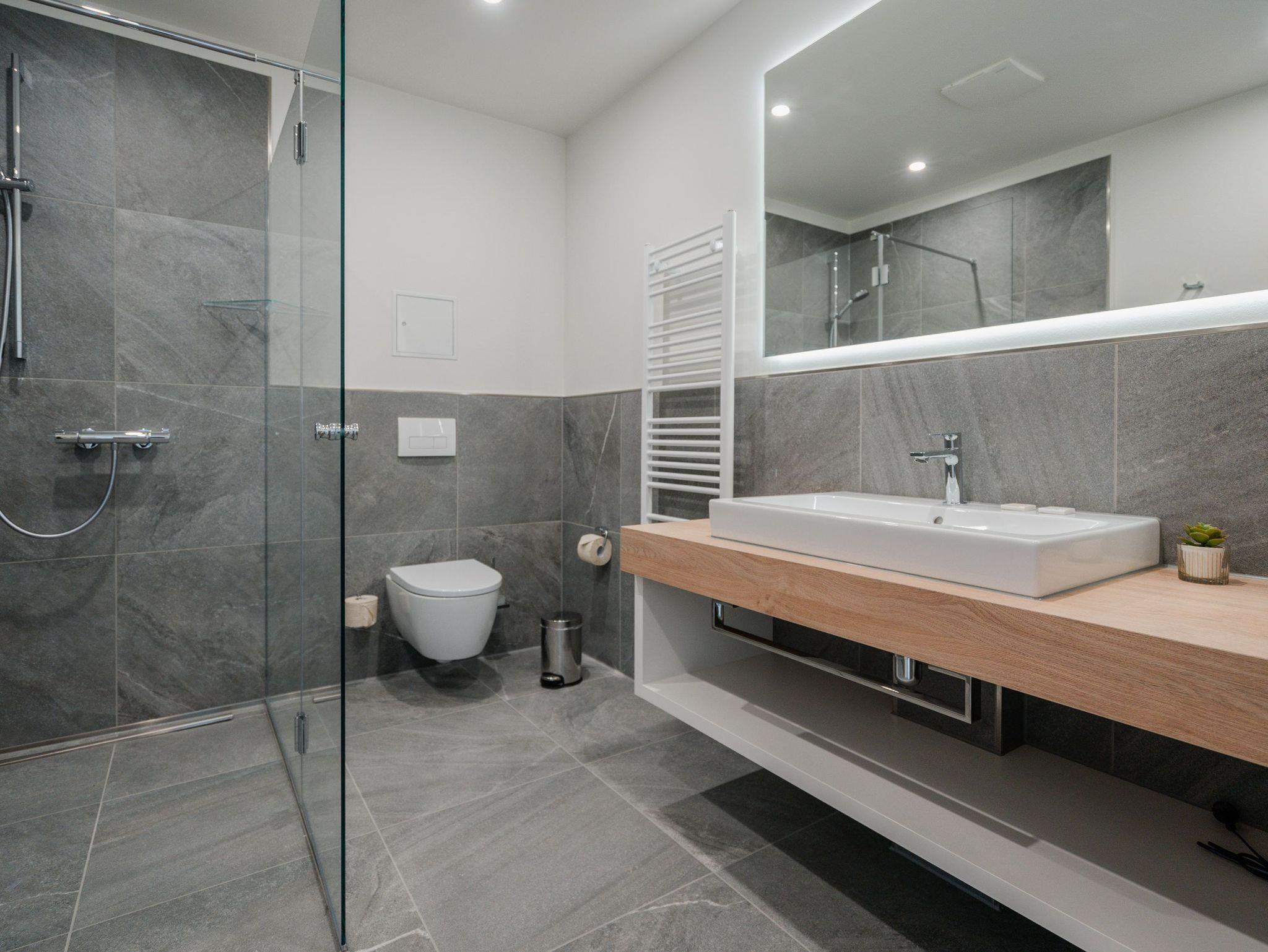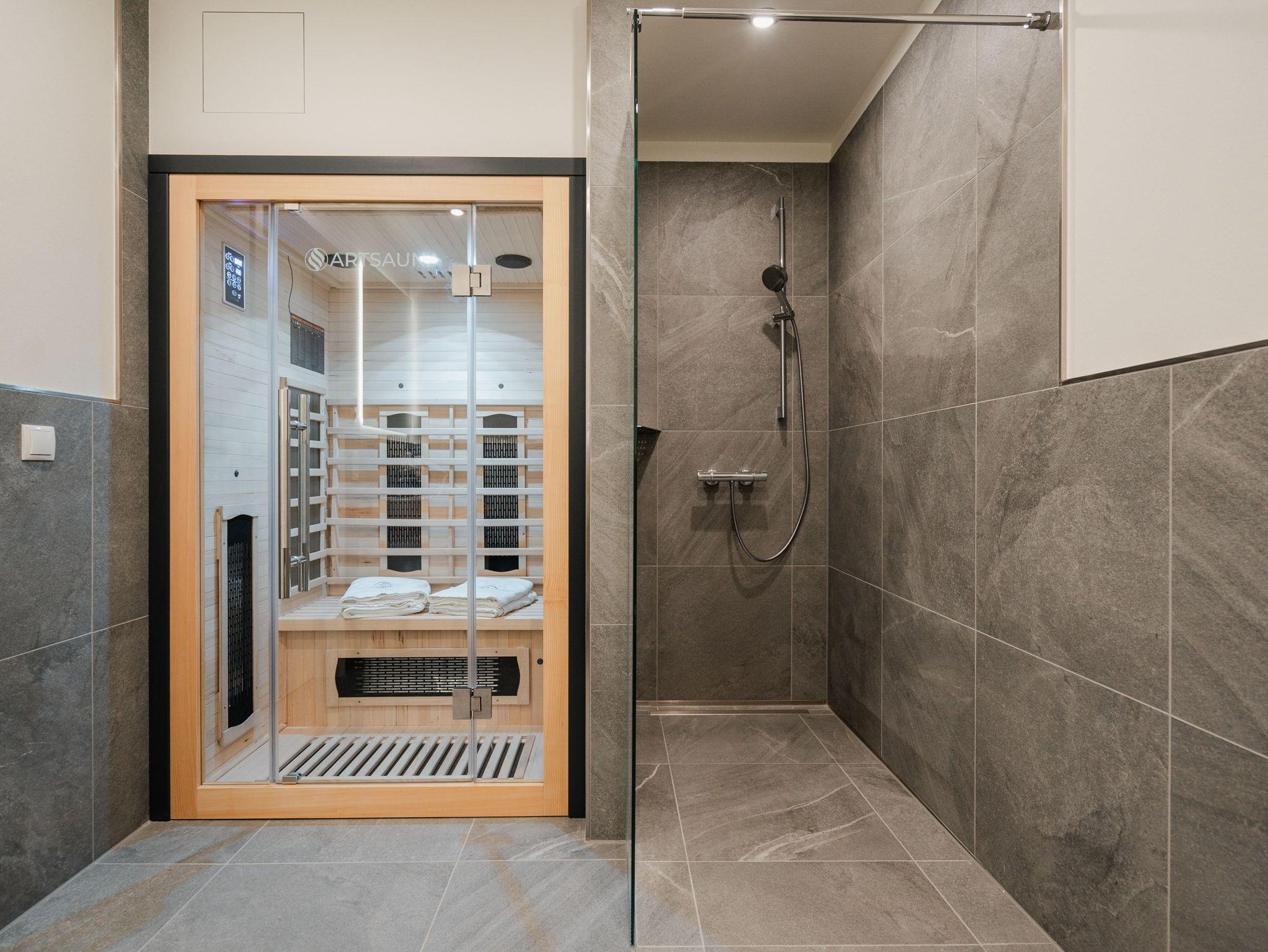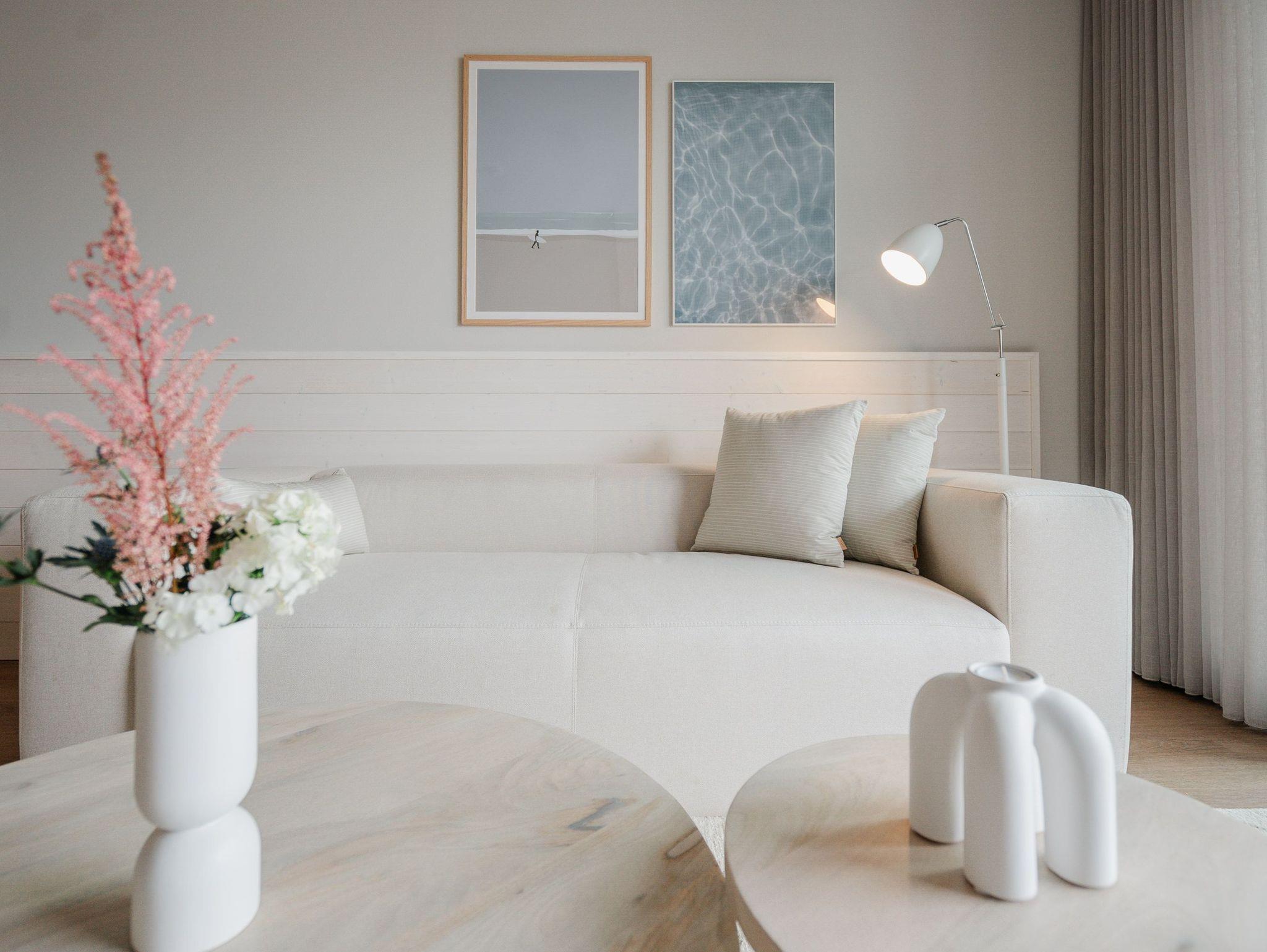 Die 2024 fertig gestellte Strandterrasse liegt direkt an der belebten Strandpromenade und bietet einen einzigartigen Ausblick auf die Grand Dame der historischen Seebrücken sowie die historische Konzertmuschel, einem beliebten Treffpunkt für Kunst und Kultur. Dahinter liegt die Ostsee ? ein Panorama, das zu den schönsten in den Kaiserbädern gehört. Es ist wie das Abtauchen in eine andere Zeit. In eine Zeit, in der man mit Stock, Sonnenschirm und Hut fürs „Sehen und gesehen werden“ über die Promenade schlenderte; aber auch in eine Zeit, in der ? damals wie heute ? Zeit einmal für eine kurze Weile keine Rolle spielt. Weil man angekommen ist im Loslassen, Entspannen und Genießen. Es ist dieser besondere Geruch nach Meeresluft und Freiheit, der in Erinnerung bleibt. Dazu die Bilder, die man mitnimmt. Von langen Strandspaziergängen, vom Lachen in fröhlich schäumenden Ostseewellen, von der Zeit in einem wunderschönen Urlaubsdomizil. Denn genau das ist die Strandterrasse mit ihren 56 modernen und exklusiven Ferienappartements direkt gegenüber der Ahlbecker Seebrücke. Die Ein-, Zwei- oder Dreizimmerwohnungen ? zwischen 40 und 70 Quadratmeter groß ? sind von einer Innenarchitektin gemeinsam mit unserem Erfahrungsschatz an Gästewünschen mit viel Liebe zum Detail und ganz individuell konzipiert worden. Entspannung und Wohlfühlen stehen an erster Stelle. Alles ist aufeinander abgestimmt und sorgt für eine gemütliche Atmosphäre. Wählen Sie zwischen einem Domizil in einem hellen, sandfarbenen Designkonzept oder einem Appartement mit anthrazitfarbenen Farbakzenten. Alle Appartements verfügen gleichermaßen über eine stilvolle und komfortable Einrichtung, die passgenau angefertigt worden ist, sowie über moderne Küchen und Bäder. Jedem Schlafzimmer ist ein eigenes Bad mit Dusche zugeordnet (außer App. B4.5). Die Appartements besitzen fast alle einen Balkon ? viele schauen sogar zur Ostsee hinaus. Die meisten Feriendomizile haben einen Elektrokamin und Infrarotsaunen. Im Erdgeschoss befindet sich ein separater Gemeinschaftsraum für Fahrräder. Außerdem besteht die Möglichkeit, im Gemeinschaftswaschraum 2 Waschmaschinen [&] Trockner zu nutzen. Ergänzt wird das Angebot durch eine Gemeinschaftssauna, die täglich von 11:00 bis 22:00 Uhr nutzbar ist. In der Tiefgarage (Einfahrtshöhe 2,03 Meter) steht für jede Wohnung 1 Pkw-Stellplatz zur Verfügung. Ist alles zur Zufriedenheit untergebracht? Dann kann der Urlaub ja beginnen. Und beim Blick vom Balkon über die Ostsee treffen sich zum Sonnenaufgang das Heute und das Damals. Gelassenheit legt sich beim Gang hinunter an den Strand auf die Seele. Jetzt darf die Zeit stehenbleiben.