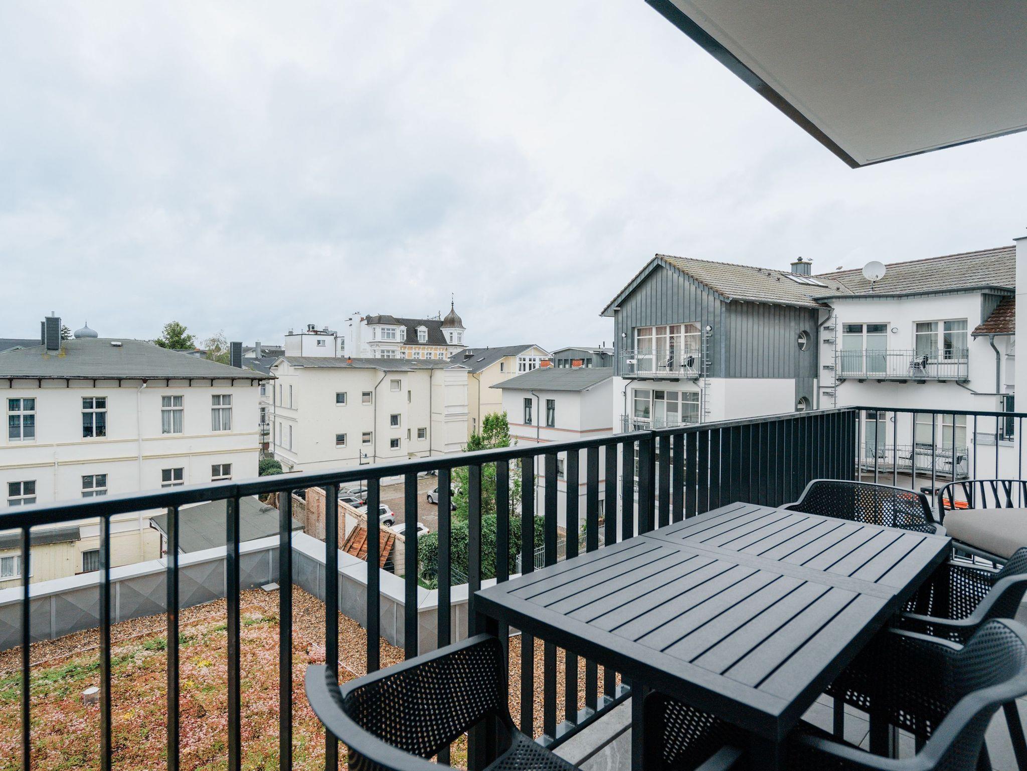 Die 2024 fertig gestellte Strandterrasse liegt direkt an der belebten Strandpromenade und bietet einen einzigartigen Ausblick auf die Grand Dame der historischen Seebrücken sowie die historische Konzertmuschel, einem beliebten Treffpunkt für Kunst und Kultur. Dahinter liegt die Ostsee ? ein Panorama, das zu den schönsten in den Kaiserbädern gehört. Es ist wie das Abtauchen in eine andere Zeit. In eine Zeit, in der man mit Stock, Sonnenschirm und Hut fürs ?Sehen und gesehen werden? über die Promenade schlenderte; aber auch in eine Zeit, in der ? damals wie heute ? Zeit einmal für eine kurze Weile keine Rolle spielt. Weil man angekommen ist im Loslassen, Entspannen und Genießen. Es ist dieser besondere Geruch nach Meeresluft und Freiheit, der in Erinnerung bleibt. Dazu die Bilder, die man mitnimmt. Von langen Strandspaziergängen, vom Lachen in fröhlich schäumenden Ostseewellen, von der Zeit in einem wunderschönen Urlaubsdomizil. Denn genau das ist die Strandterrasse mit ihren 56 modernen und exklusiven Ferienappartements direkt gegenüber der Ahlbecker Seebrücke. Die Ein-, Zwei- oder Dreizimmerwohnungen ? zwischen 40 und 70 Quadratmeter groß ? sind von einer Innenarchitektin gemeinsam mit unserem Erfahrungsschatz an Gästewünschen mit viel Liebe zum Detail und ganz individuell konzipiert worden. Entspannung und Wohlfühlen stehen an erster Stelle. Alles ist aufeinander abgestimmt und sorgt für eine gemütliche Atmosphäre. Wählen Sie zwischen einem Domizil in einem hellen, sandfarbenen Designkonzept oder einem Appartement mit anthrazitfarbenen Farbakzenten. Alle Appartements verfügen gleichermaßen über eine stilvolle und komfortable Einrichtung, die passgenau angefertigt worden ist, sowie über moderne Küchen und Bäder. Jedem Schlafzimmer ist ein eigenes Bad mit Dusche zugeordnet (außer App. B4.5). Die Appartements besitzen fast alle einen Balkon ? viele schauen sogar zur Ostsee hinaus. Die meisten Feriendomizile haben einen Elektrokamin und Infrarotsaunen. Im Erdgeschoss befindet sich ein separater Gemeinschaftsraum für Fahrräder. Außerdem besteht die Möglichkeit, im Gemeinschaftswaschraum 2 Waschmaschinen [&] Trockner zu nutzen. Ergänzt wird das Angebot durch eine Gemeinschaftssauna, die täglich von 11:00 bis 22:00 Uhr nutzbar ist. In der Tiefgarage (Einfahrtshöhe 2,03 Meter) steht für jede Wohnung 1 Pkw-Stellplatz zur Verfügung. Ist alles zur Zufriedenheit untergebracht? Dann kann der Urlaub ja beginnen. Und beim Blick vom Balkon über die Ostsee treffen sich zum Sonnenaufgang das Heute und das Damals. Gelassenheit legt sich beim Gang hinunter an den Strand auf die Seele. Jetzt darf die Zeit stehenbleiben.