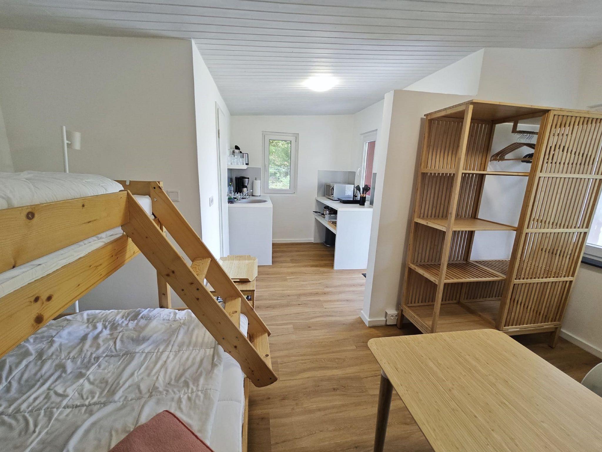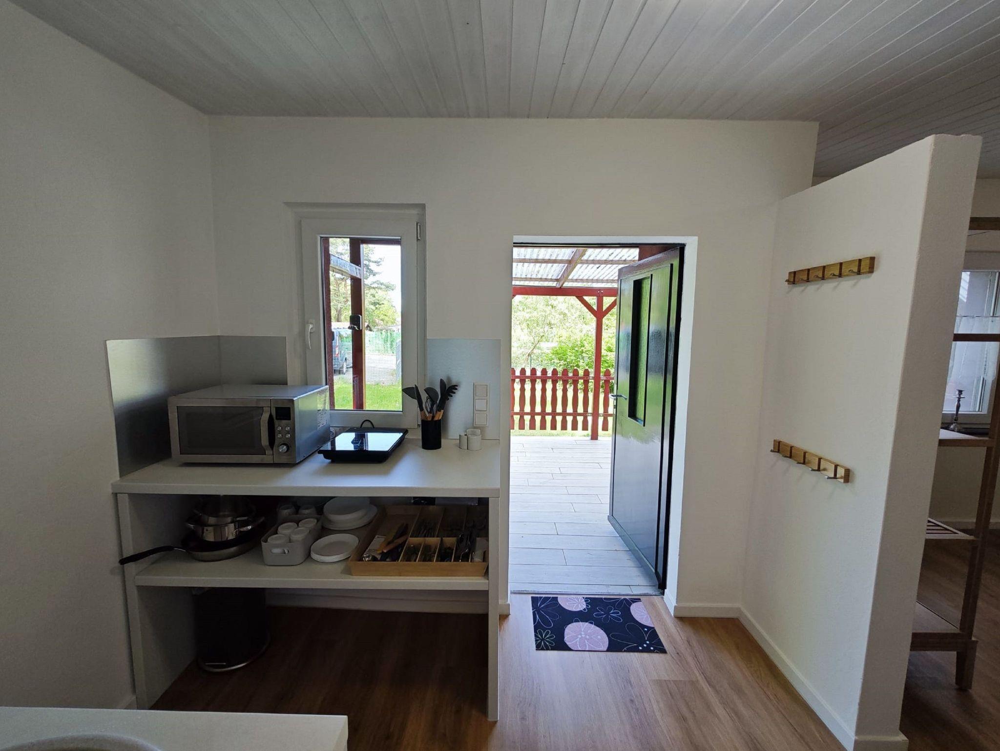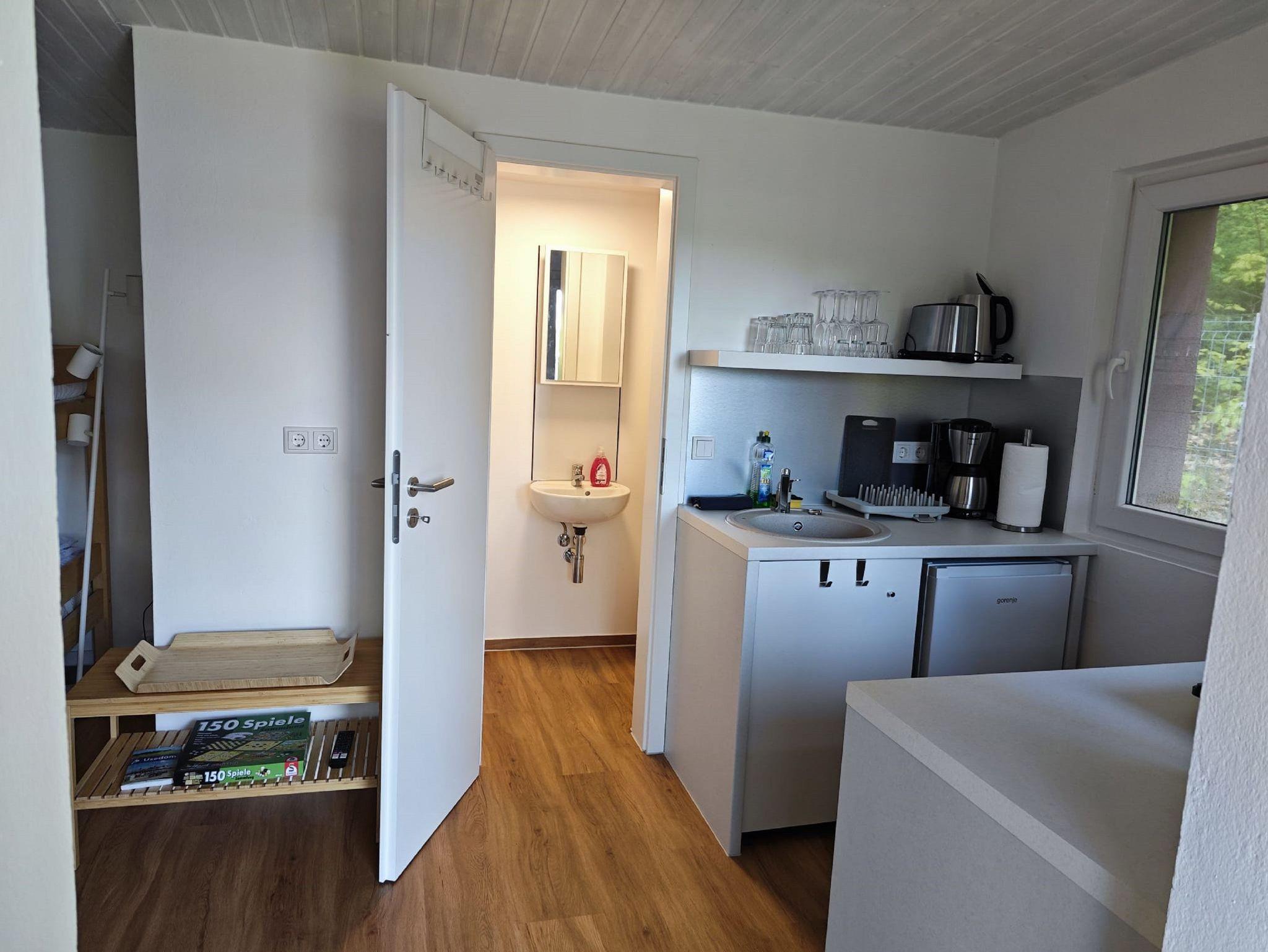 gefallen. Auf dem großen, grünen Grundstück in ruhiger und naturnaher Lage befindet sich das kleine Idyll. Ein einfach ausgestatteter Bungalow mit 24 qm bietet zwar nicht viel Platz, aber doch alles, was Sie zum Erholen brauchen. Starten Sie Ihren Tag doch mit einem frisch gekochten Kaffee auf der Terrasse und genießen Sie die Sonnenstrahlen. Vielleicht können Sie das Meer schon riechen. Nur 15 Minuten Fussweg trennen Sie von der Ostsee. Der kilometerlange Sandstrand der Insel lädt zu einem ausgiebigen Spaziergang entlang der Kaiserbäder ein. Zurück im kleinen Häuschen können sie sich im unteren Bereich vom Etagenbett auf einer 140 cm breiten Matratze entspannen und für einen dritten Gast gibt es im oberen Teil vom Etagenbett auf 90 cm Breite genügend Platz. Für romantische und kältere Stunden lädt ein Kaminofen ein. Eine weitere Heizung ist nicht vorhanden. Das Bad hat ein WC und eine Dusche mit einem kleinen Durchlauferhitzer. Für Naturmenschen gibt es eine Solardusche auf dem Grundstück. Auf wenigen Quadratmetern finden Sie bei uns all das, was Sie brauchen: eine kleine Singel-Küche (ohne Warmwasser) mit Kühlschrank und zwei Herdplatten, Kaffeemaschine, Toaster, Wasserkocher und Küchenausstattung. Es ist ein Fernseher und Internet, sowie ein Stellplatz vorhanden und für unsere sportlichen Gäste haben wir genug Platz, um Fahrräder abzustellen.