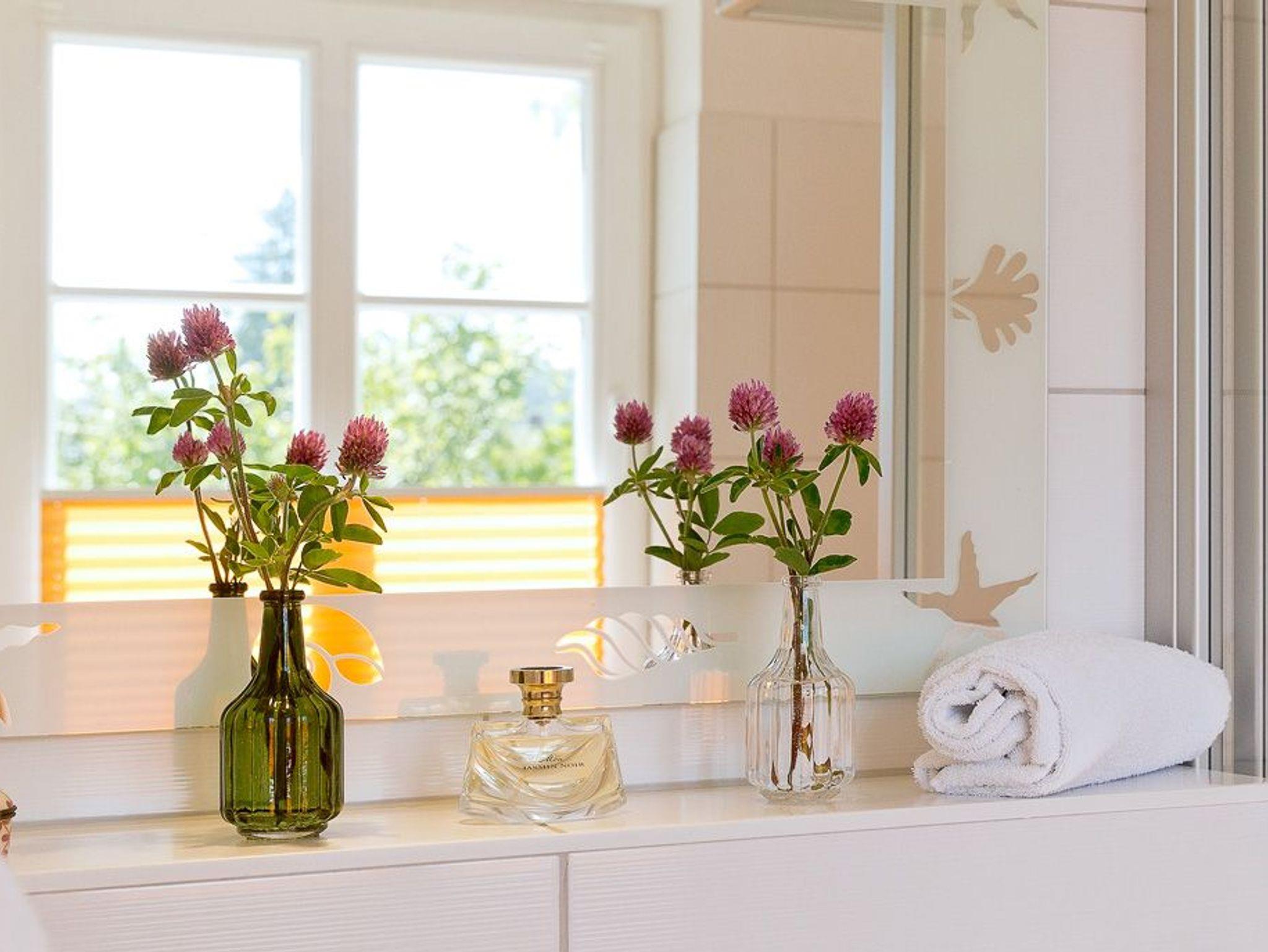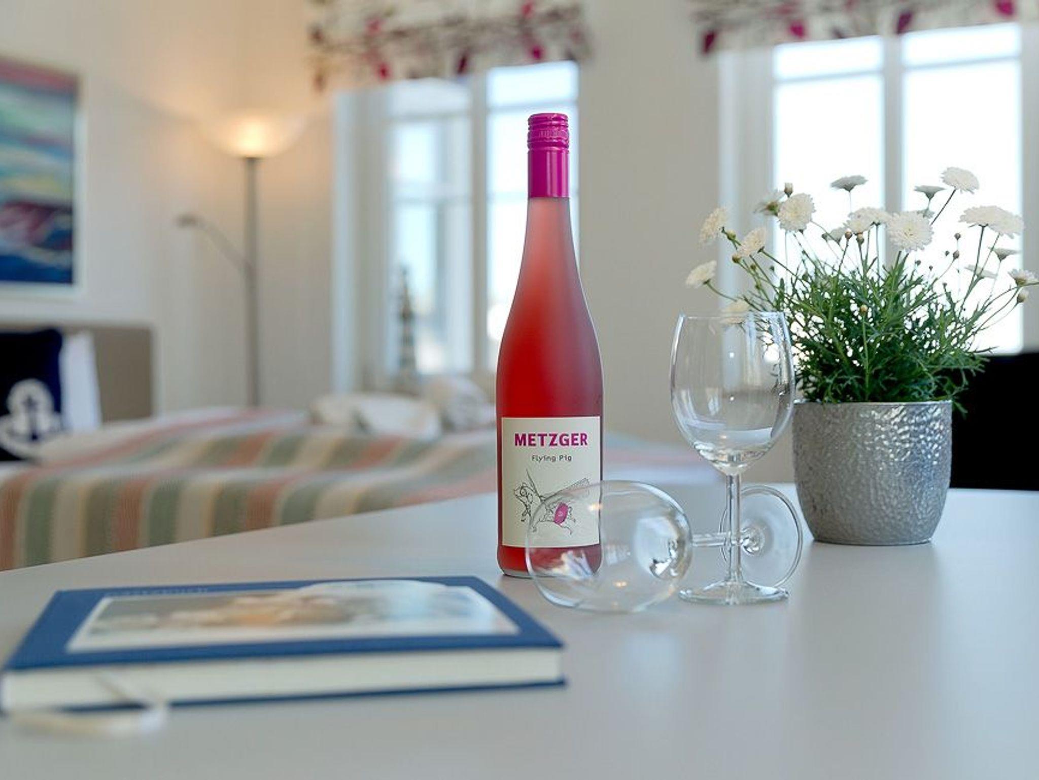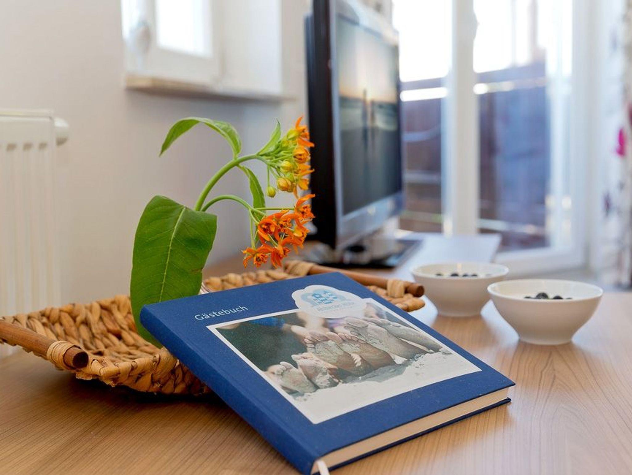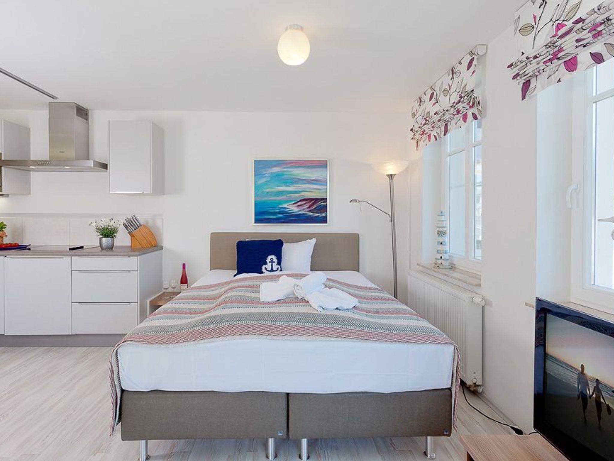 Damit Sie Ihre wohlverdiente Urlaubszeit bereits am Anreisetag in vollen Zügen genießen können, haben wir das Bett für Sie und das für Ihre lieben Mitreisenden bereits bezogen und ein Duschtuch sowie ein kleines Handtuch bereitgelegt. Die im Wohnbereich integrierte komplett ausgestattete Einbauküche verfügt zudem über Kühlschrank, Mikrowelle, Ceran-Kochfeld (4 Platten), Spülmaschine, Wasserkocher, Toaster, Kaffeemaschine (4er Filter), Messerblock. Das Badezimmer ist mit Dusche, WC, Handtuchtrockner und Fußbodenheizung ausgestattet.