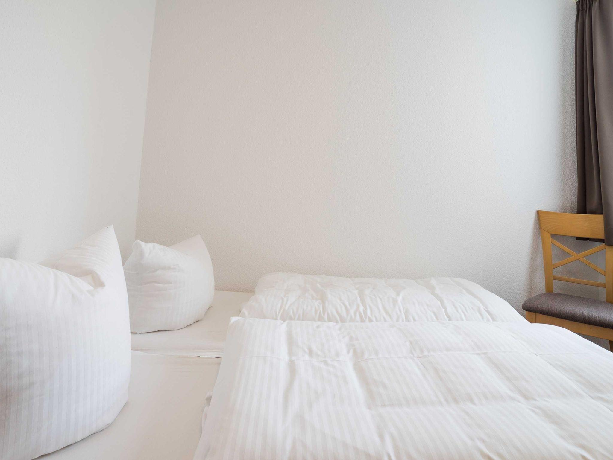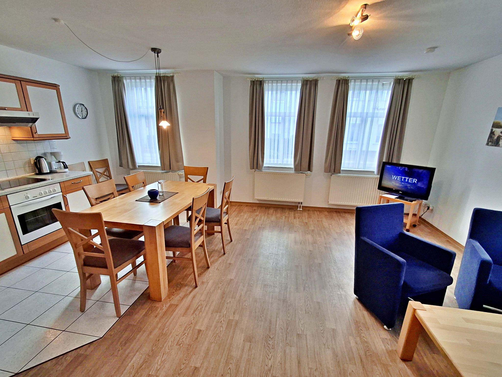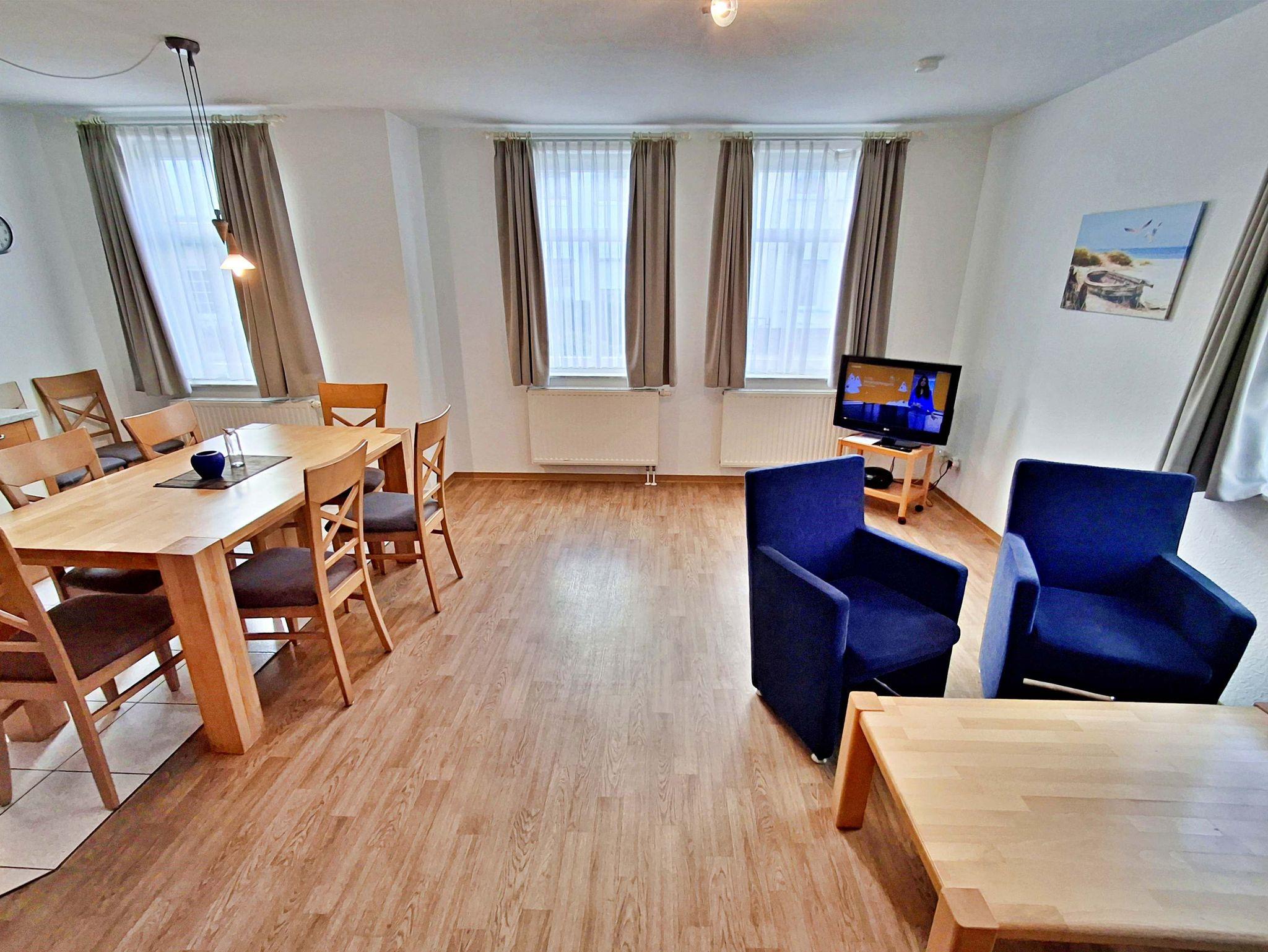 Die freundliche 3-Zimmer-Wohnung Koserow für max. 5 Erwachsene und 1 Kleinkind bis 3 Jahre befindet sich im Erdgeschoss im Haus am Kurpark - nur wenige Schritte von der Promenade und dem Strand entfernt. Im Wohnbereich befinden sich neben der gemütlichen Couch (Aufbettungsmöglichkeit für 2 weitere Personen) auch zwei Sessel sowie ein Esstisch mit 4 Stühlen, der genügend Platz für 6 Personen bietet. Die moderne Küchenzeile mit Ceranherd, Backofen, Geschirrspüler, Mikrowelle, Kaffeemaschine, Wasserkocher und Toaster lässt keine Wünsche offen. Für die Unterhaltung sorgen ein Flachbild-TV, Radio-CD-Player und kostenfreies W-LAN. Das 1. Schlafzimmer verfügt über ein Doppelbett und das zweite Schlafzimmer über 2 Einzelbetten. Das Badezimmer hat Badewanne/WC.