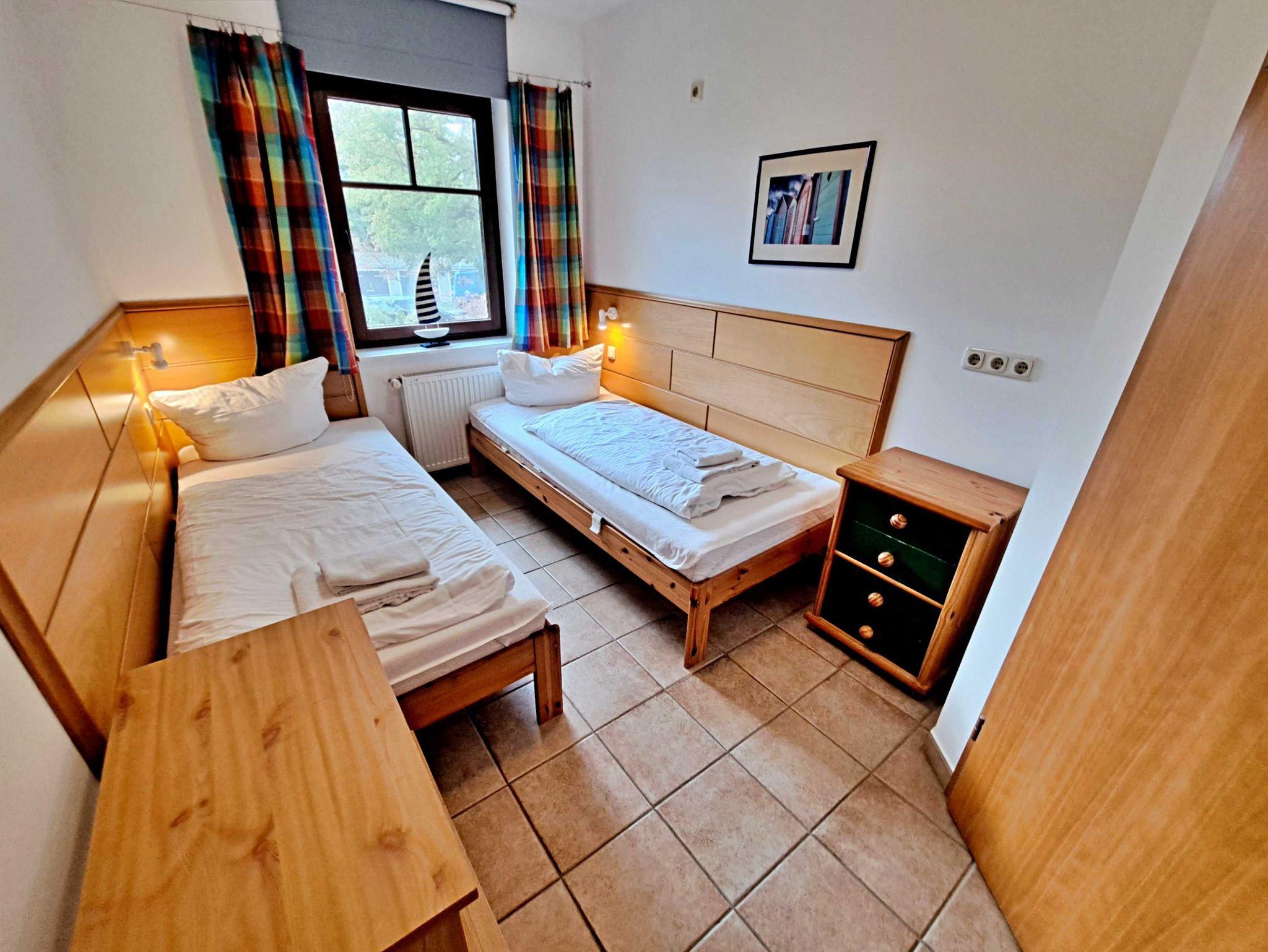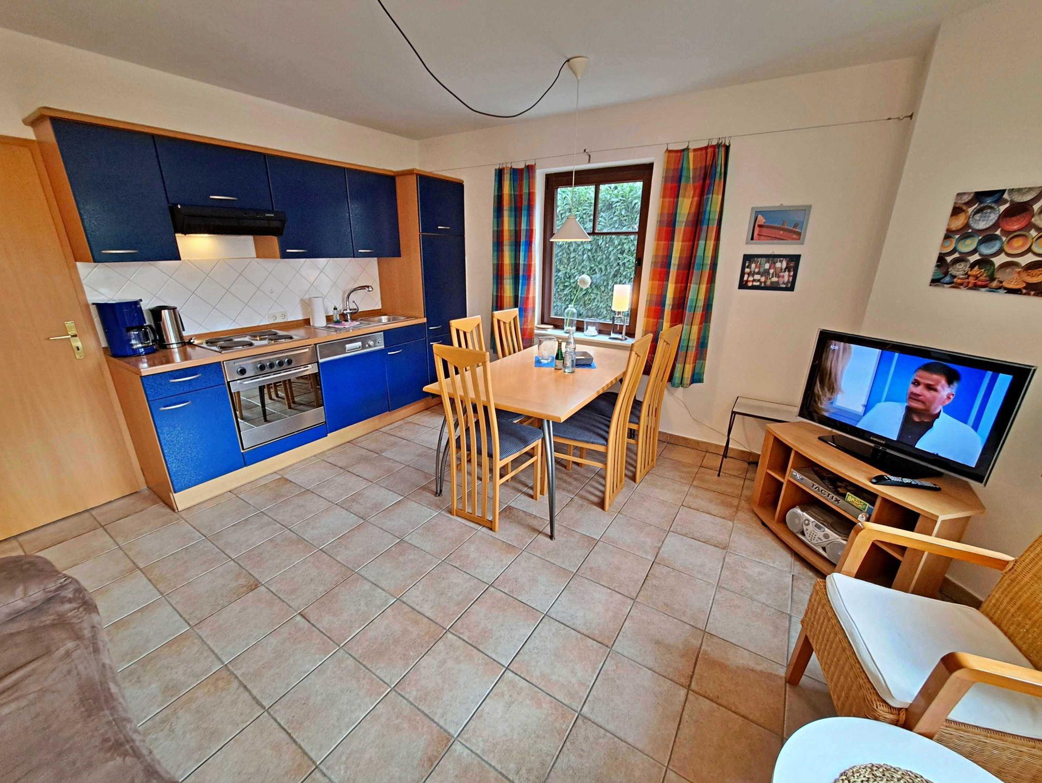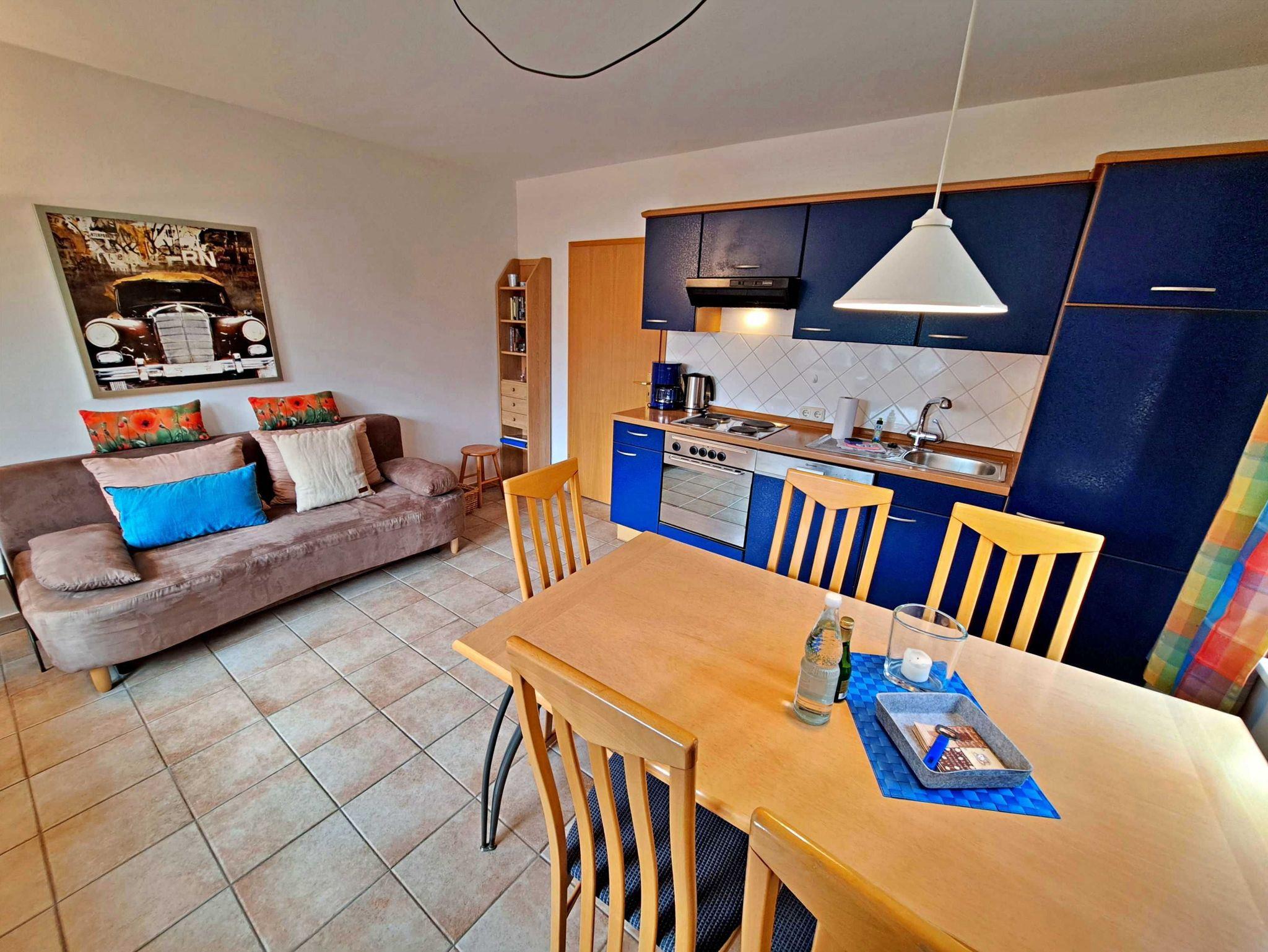 Diese großzügige, 52 qm große Unterkunft im Erdgeschoss besticht durch ihre Helligkeit und Freundlichkeit. Sie erwartet ein komfortables Wohnzimmer, das mit einer gemütlichen Sitzecke und einem einladenden Essplatz ausgestattet ist. Die offene Küche lässt keine Wünsche offen und bietet Ihnen alles, was Sie für einen entspannten Aufenthalt benötigen - von Herd und Backofen über Spülmaschine und Kühlschrank mit Gefrierfach bis hin zu Kaffeemaschine, Wasserkocher und Toaster. Die Wohnung verfügt über zwei behagliche Schlafzimmer: eines mit einem Doppelbett und das andere mit zwei Einzelbetten - ideal für Familien oder Freunde. Das Tageslicht-Bad mit Dusche und WC sorgt für zusätzlichen Komfort und ist vom Hauptschlafzimmer aus zugänglich. Ein weiteres WC sowie ein praktischer Abstellraum, der an das Schlafzimmer mit den Einzelbetten angeschlossen ist, runden das Angebot ab. Genießen Sie zudem die Annehmlichkeiten eines kostenfreien Parkplatzes direkt vor dem Haus sowie den kostenlosen Zugang zum W-LAN.