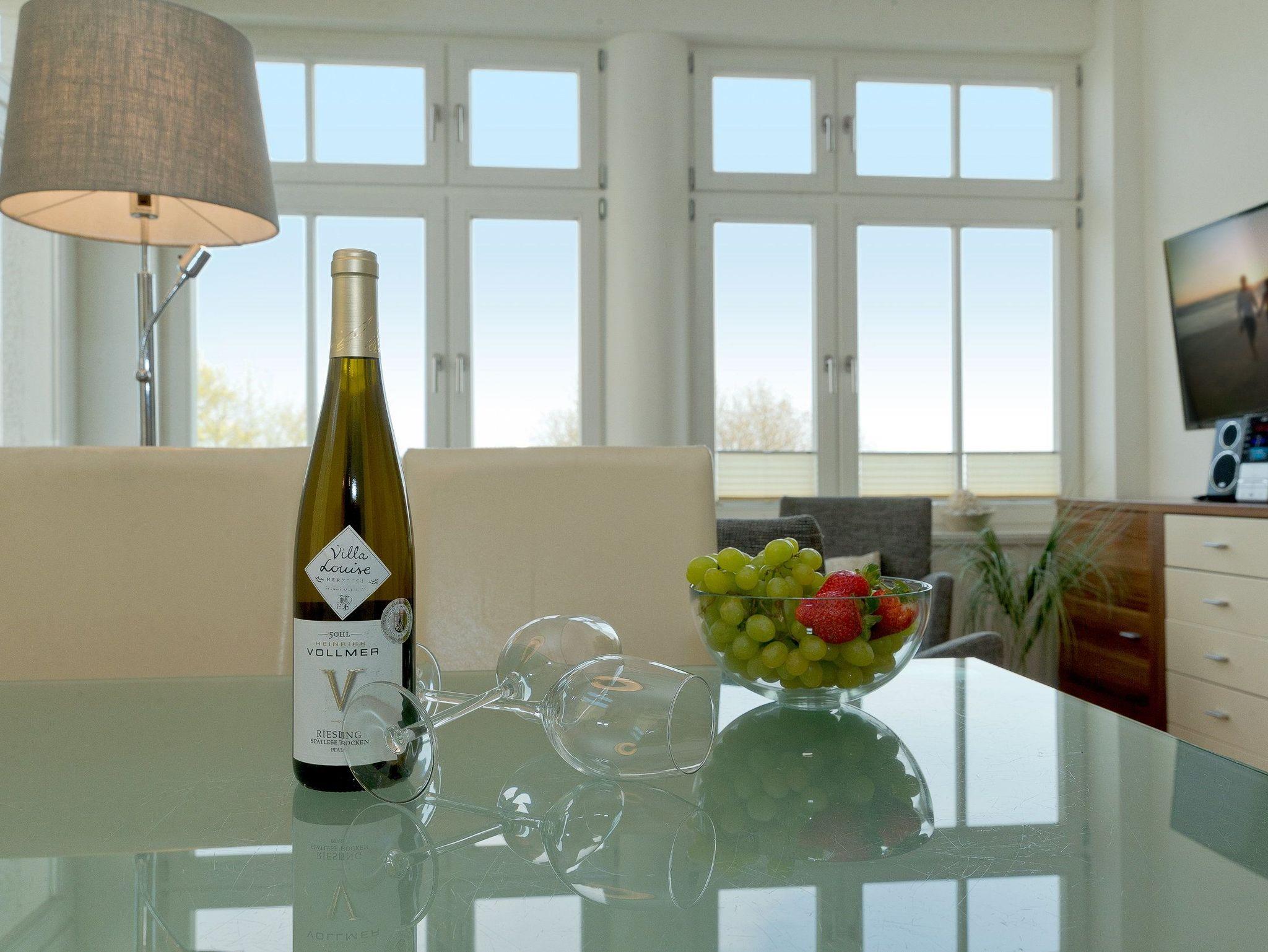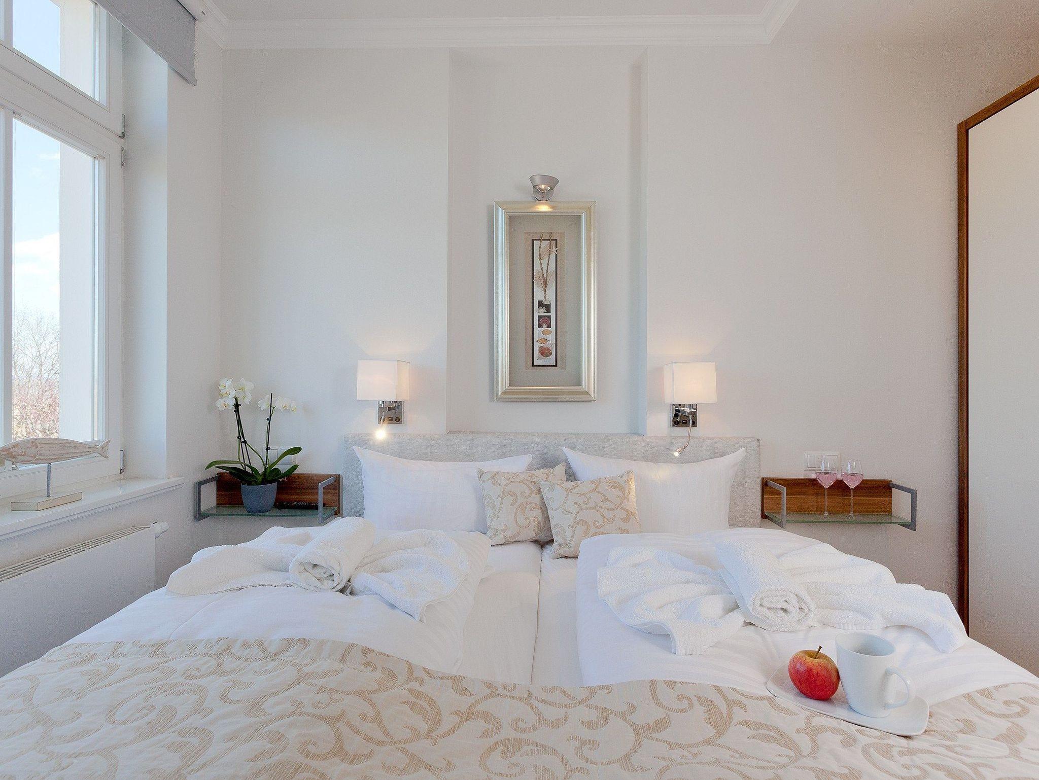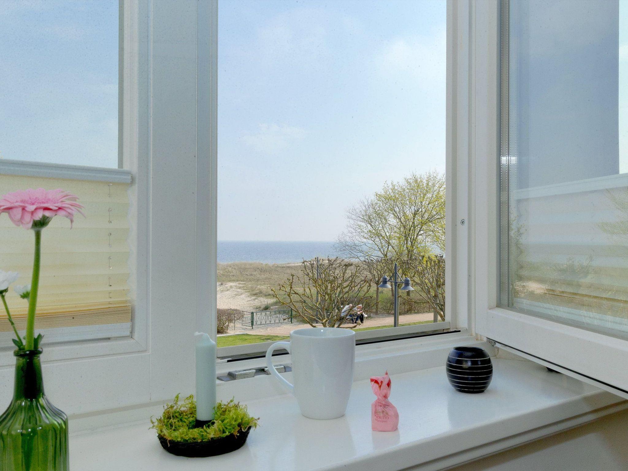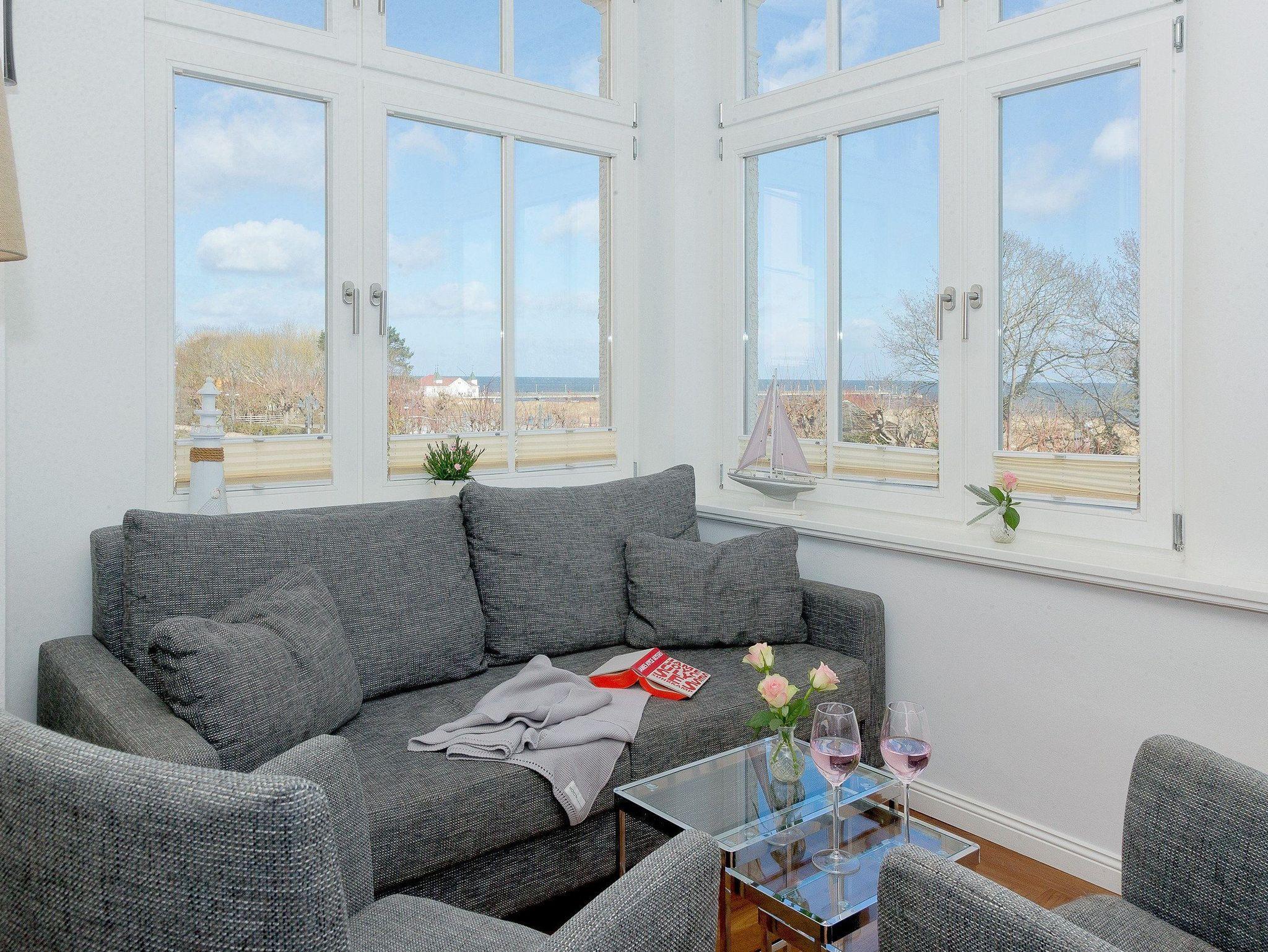 Die Polstersitzecke lädt zum Entspannen ein. Außerdem steht ein Flachbildfernseher mit integriertem Radio für Sie bereit. Und nicht nur das! Vom Sofa aus haben Sie eine fantastische Aussicht auf das Meer, die zum Träumen einlädt. Für die Nachtruhe steht im Schlafzimmer ein bequemes Boxspringbett (180 x 200cm / zwei getrennte Matratzen) mit Flat TV bereit. Auch von hier können Sie den Blick über das glitzernde Meer gleiten lassen. In dem geräumigen Schrank bringen Sie problemlos Ihre Habseligkeiten unter. Ein weiteres Schlafzimmer ist ebenfalls mit einem komfortablen Doppelbett und einem maßangefertigen Kleiderschrank eines usedomer Tischlers ausgestattet. In beiden Schlafräumen sind Plissees angebracht, so dass Sie die Räume bei Bedarf ganz einfach abdunkeln können.