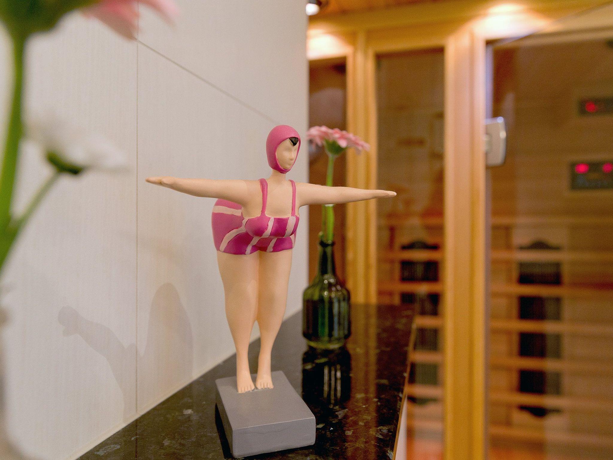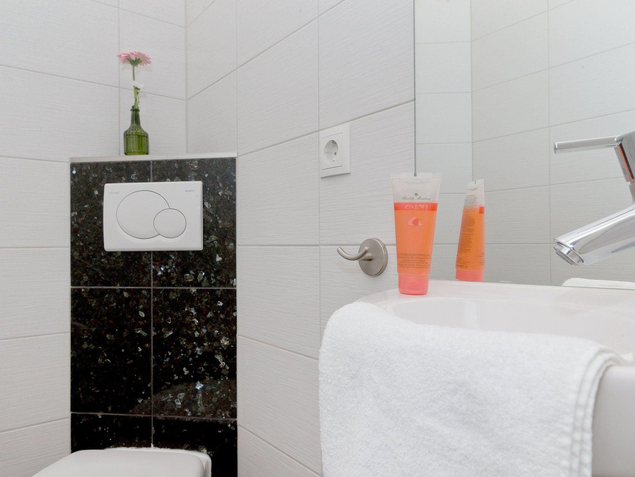 Ein absolutes Highlight ist das komfortable Badezimmer: Es besitzt nicht nur eine Echtglas-Dusche mit bodengleicher Duschtasse. Nach einem ereignisreichen und anstrengenden Tag können Sie in der privaten Infrarotsauna die Seele baumeln lassen. Ein weiteres Bad ist mit einem WC und Waschbecken ausgestattet.