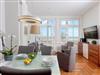Das 3-Zimmer Appartement befindet sich im 1. Obergeschoss und bietet mit seinen 55 Quadratmetern ausreichend Platz für bis zu vier Personen. Das Interieur ist in hellem beige gehalten, wodurch eine gemütliche und gleichzeitig edle Atmosphäre entsteht. Der kombinierte Wohn- und Kochbereich ist mit einer hochwertigen Küchenzeile ausgestattet, die Dank Geschirrspüler, Kaffeemaschine, Wasserkocher, Toaster, Kühlschrank mit Gefrierfach und einer Mikrowelle mit Backfunktion keine Wünsche offen lässt.