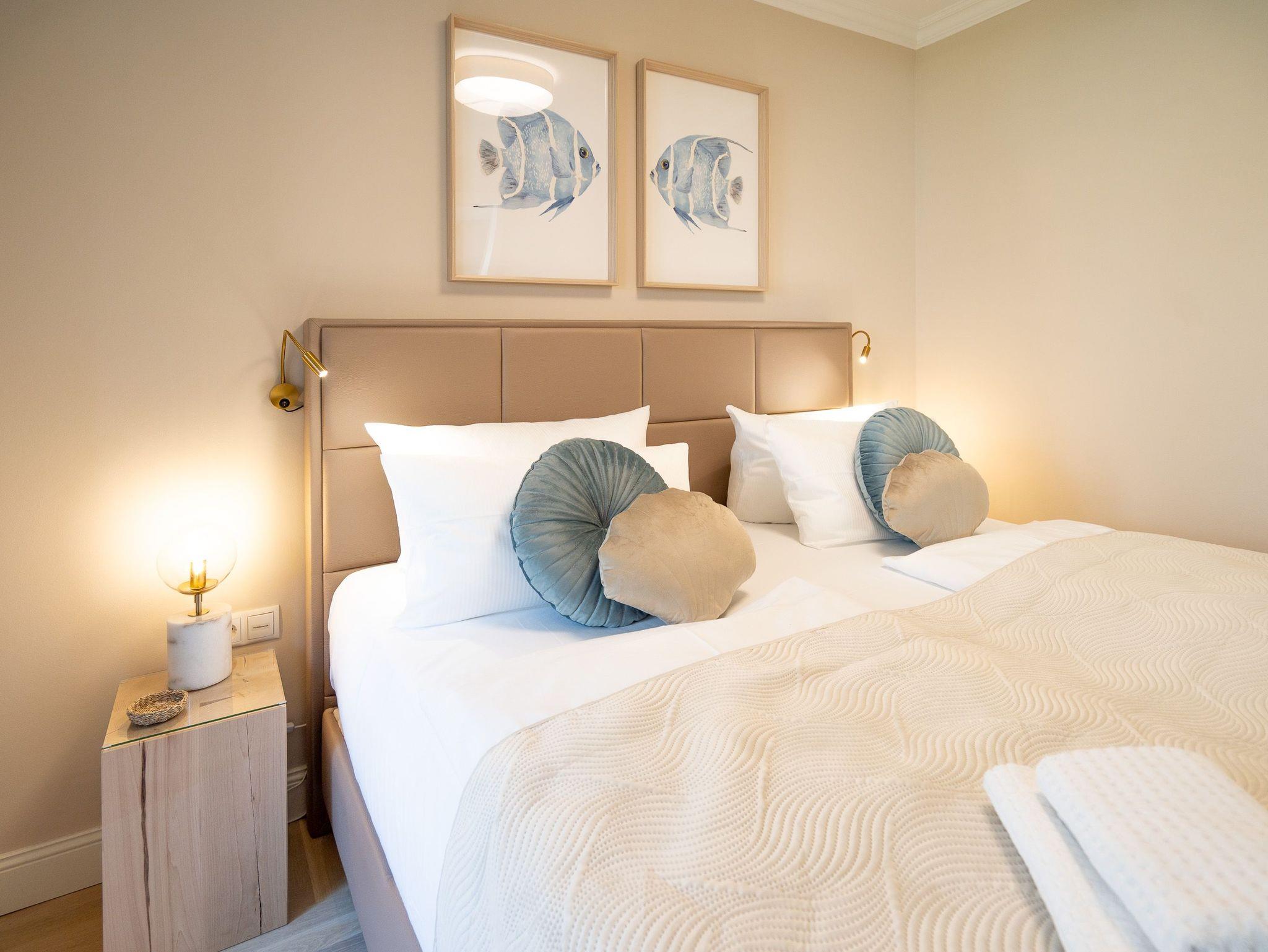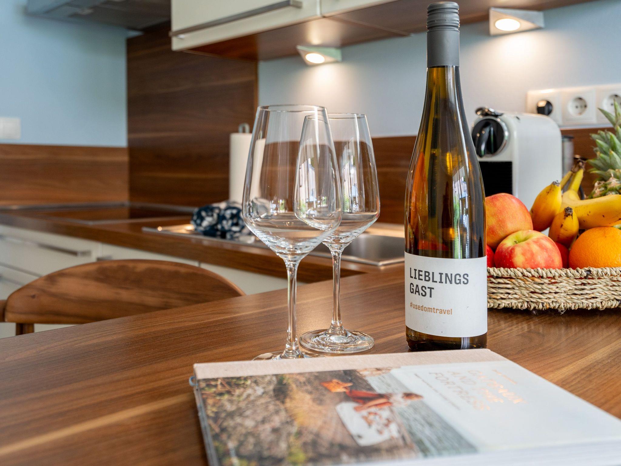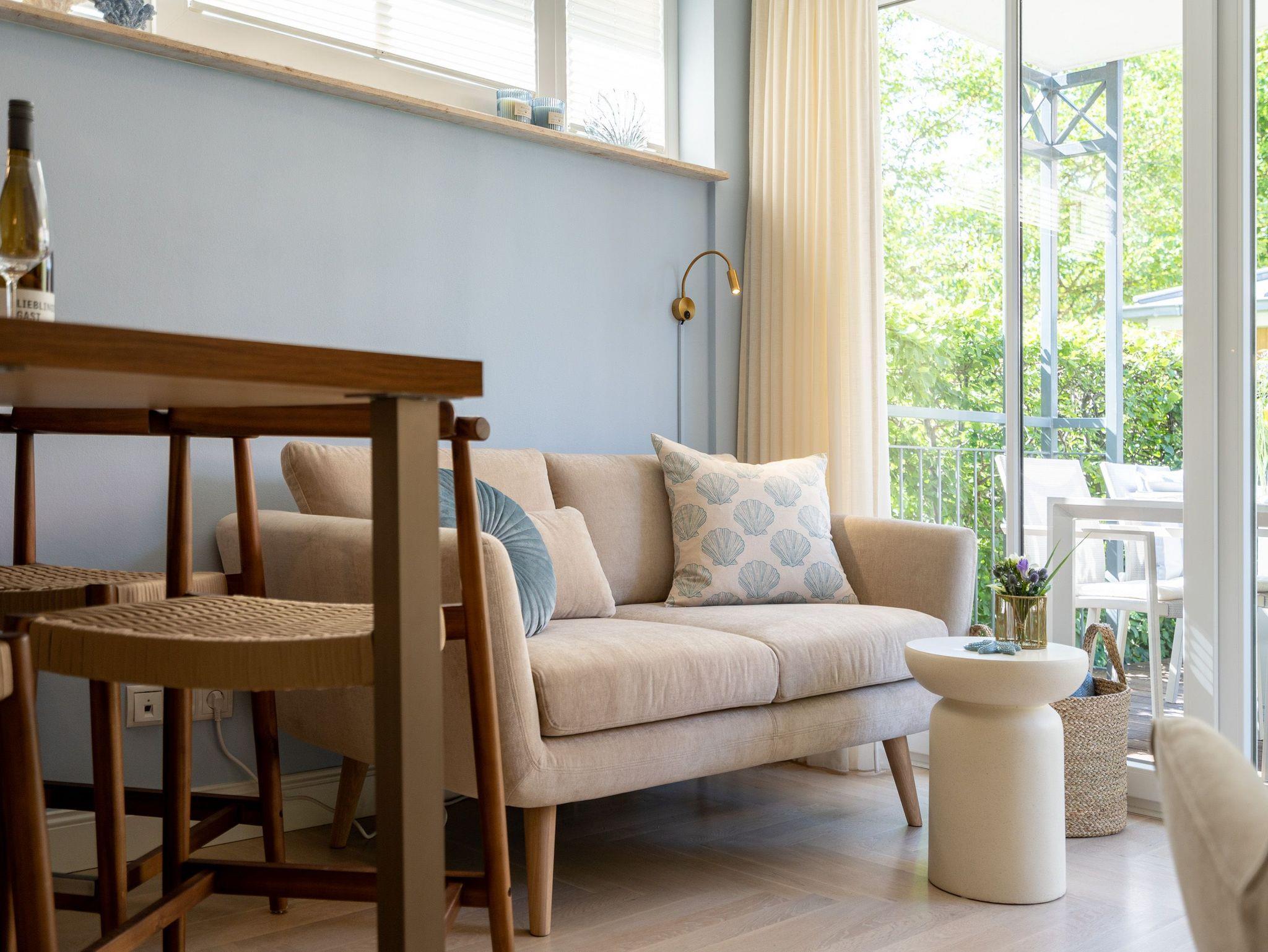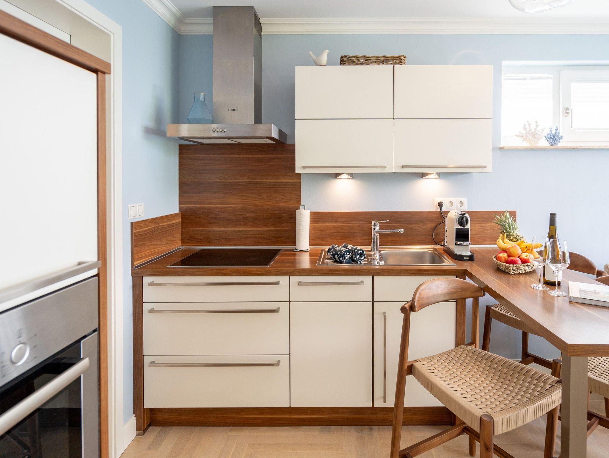 Klein aber fein! Die liebevoll eingerichtete 2-Raum-Ferienwohnung befindet sich im Erdgeschoss und ist 40 qm groß. Detailversessen wurde an alles gedacht, ein Wohnbereich mit Sitzgruppe und Flat-TV lädt zum Verweilen ein. Ergänzt wird es durch eine komplett ausgestattete Küchenzeile mit angrenzendem Essplatz. Ein Schlafzimmer mit Doppelbett (1,80m x 2m) und TV und elektrischen Jalousien sorgt für eine angenehme Nachtruhe. Für Ihren Komfort sind die Betten bei der Anreise bezogen und Handtücher liegen bereit (Erstausstattung). Sonnige Stunden verspricht die nach Süden ausgerichtete Terrasse mit Möblierung. Ein weiteres Highlight ist das exklusive Badezimmer mit integrierter Fußbodenheizung und Echtglas-Dusche. Perfekt für einen Urlaub zu zweit. Für Ihren PKW ist der Stellplatz Nr. 4 in der Tiefgarage reserviert.