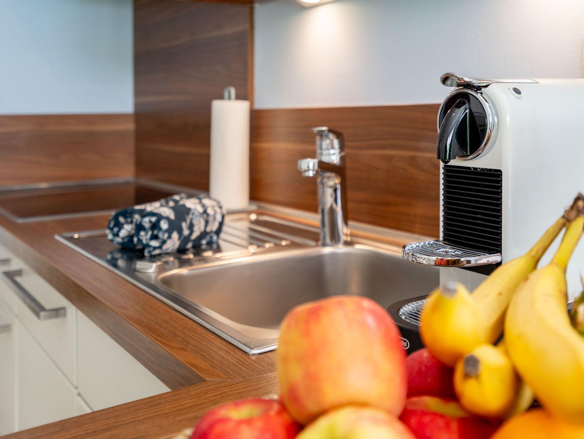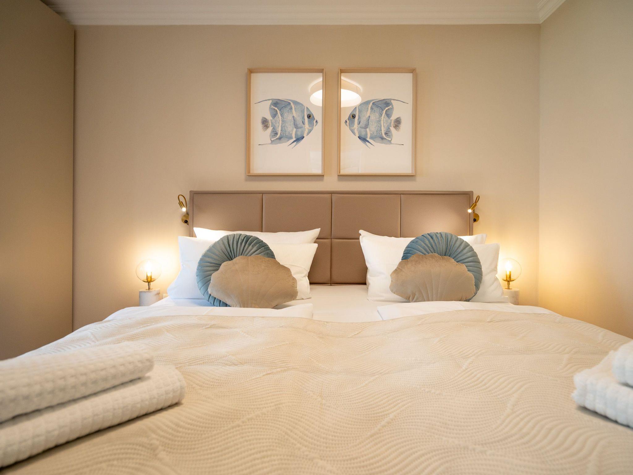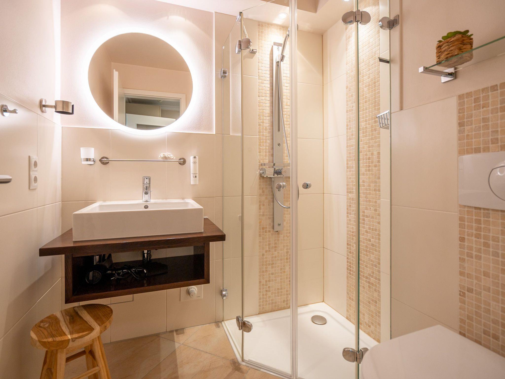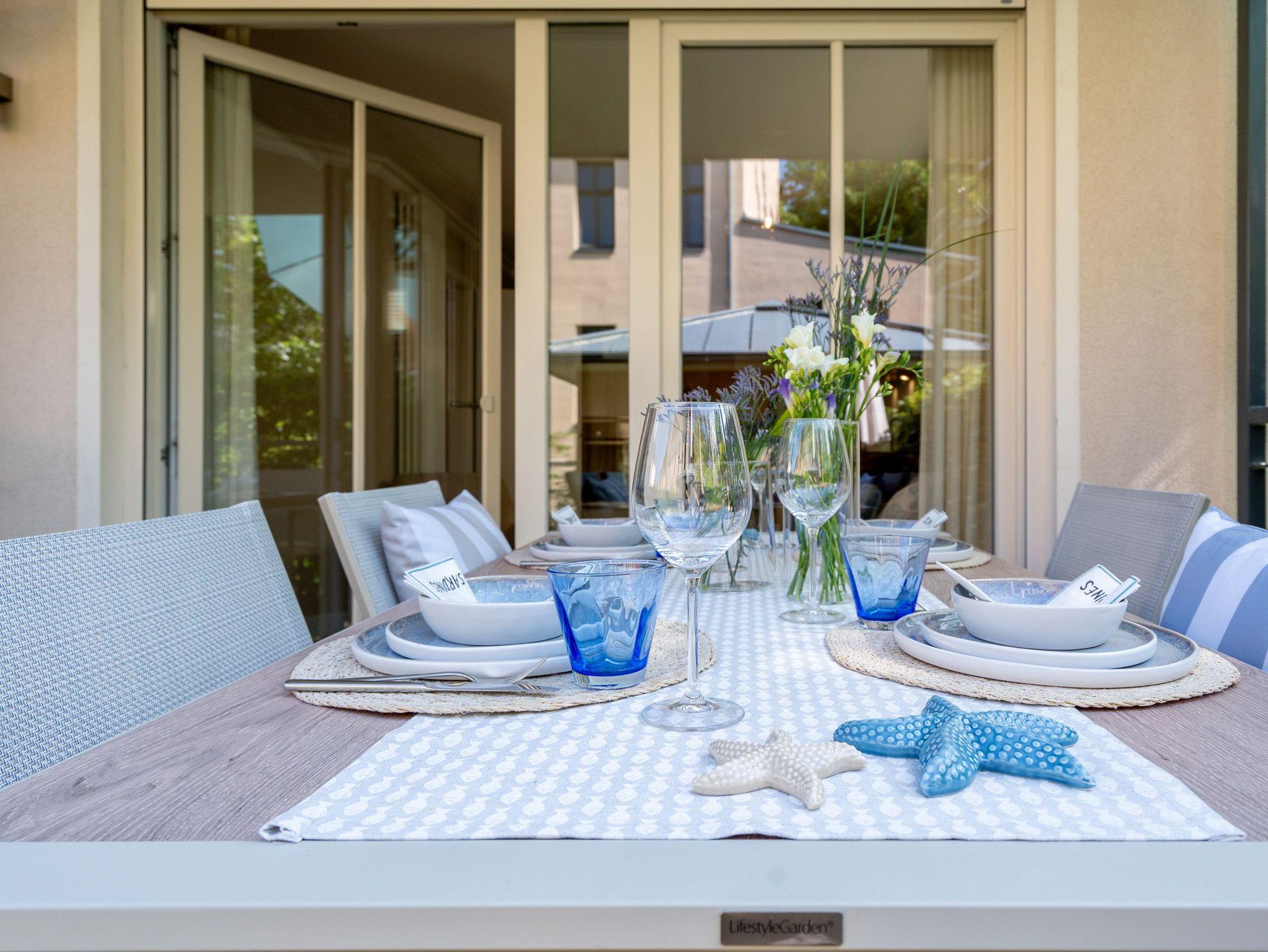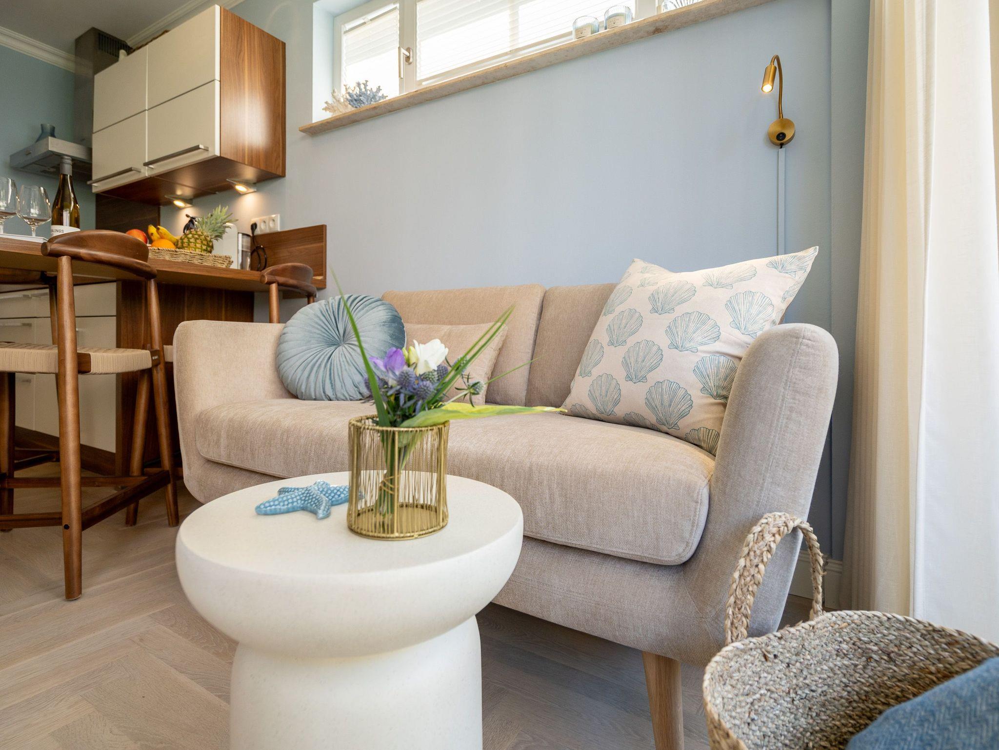 Klein aber fein! Die liebevoll eingerichtete 2-Raum-Ferienwohnung befindet sich im Erdgeschoss und ist 40 qm groß. Detailversessen wurde an alles gedacht, ein Wohnbereich mit Sitzgruppe und Flat-TV lädt zum Verweilen ein. Ergänzt wird es durch eine komplett ausgestattete Küchenzeile mit angrenzendem Essplatz. Ein Schlafzimmer mit Doppelbett (1,80m x 2m) und TV und elektrischen Jalousien sorgt für eine angenehme Nachtruhe. Für Ihren Komfort sind die Betten bei der Anreise bezogen und Handtücher liegen bereit (Erstausstattung). Sonnige Stunden verspricht die nach Süden ausgerichtete Terrasse mit Möblierung. Ein weiteres Highlight ist das exklusive Badezimmer mit integrierter Fußbodenheizung und Echtglas-Dusche. Perfekt für einen Urlaub zu zweit. Für Ihren PKW ist der Stellplatz Nr. 4 in der Tiefgarage reserviert.
