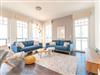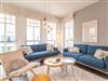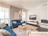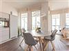 • Ein heller Wohn-Essbereich mit offener, voll ausgestatteter Küche, die mit Marken-Einbaugeräten und einer Nespresso-Kaffeemaschine ausgestattet ist. Der Essbereich verfügt über einen großen runden Tisch und vier Stühle.