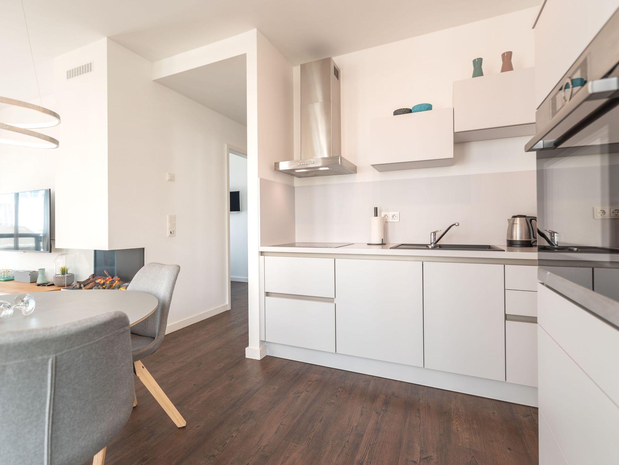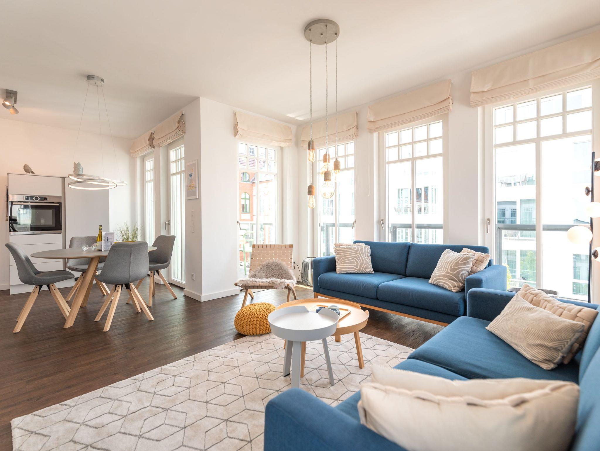 Das Quartier Schneespecht im 2. Obergeschoss ist ein exklusives 3-Raum-Appartement, das für bis zu 4 Personen konzipiert wurde und von jeder Ecke aus seitlichen Meerblick bietet. Es wurde mit viel Liebe zum Detail von einer Berliner Designerin im skandinavischen Stil eingerichtet, was eine warme und einladende Atmosphäre schafft.