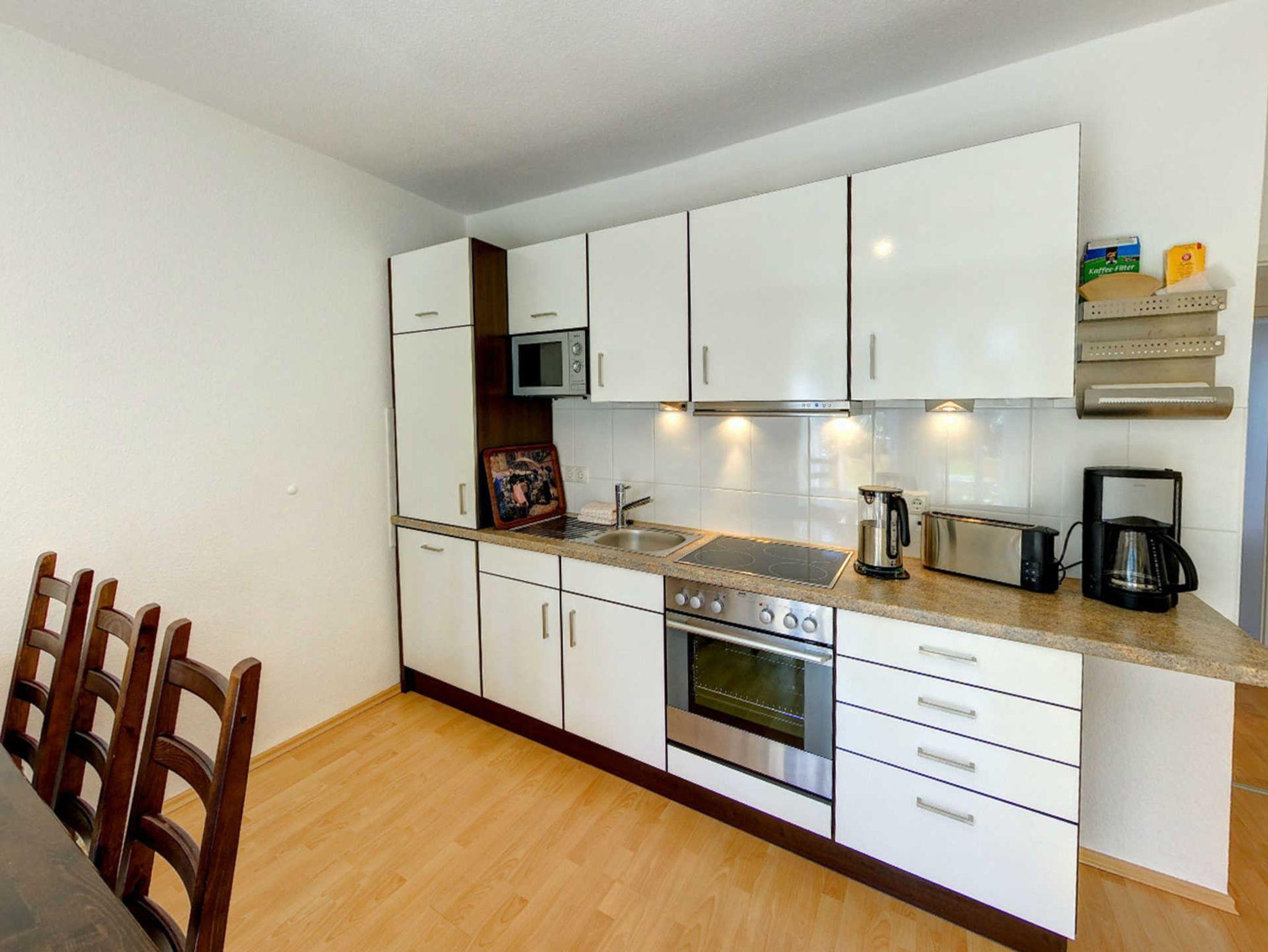 Die Wohnung mit einem separaten Eingang verfügt über zwei separate Schlafzimmer mit je einem Doppelbett sowie Fernseher sowie einem Wohnraum mit gemütlicher Sitzecke und einer ausziehbaren Couch, auf der eine Aufbettung für die 5. Person vorgenommen werden kann (Breite 1,40m). Highlight im Wohnbereich ist der dänische Eisen-Kaminofen für warme Stunden gerade in der kalten Jahreszeit sowie der möblierte Balkon zur Seeseite. In der separaten, voll ausgestatteten Küche mit Kaffeemaschine, Wasserkocher, Toaster, Mikrowelle, Backofen und Geschirrspüler befindet sich ein großer Essbereich mit ausreichend Platz. Zwei Bäder, eines mit Wanne und Dusche, eines mit Dusche bieten auch mit 5 Personen höchsten Wohnkomfort. Auf der möblierten Südterrasse können Sie bis Abends die Sonne genießen. Ein Garagenstellplatz steht Ihnen kostenfrei auf dem Grundstück zur Verfügung. Fahrräder können auf dem Grundstück abgestellt werden.