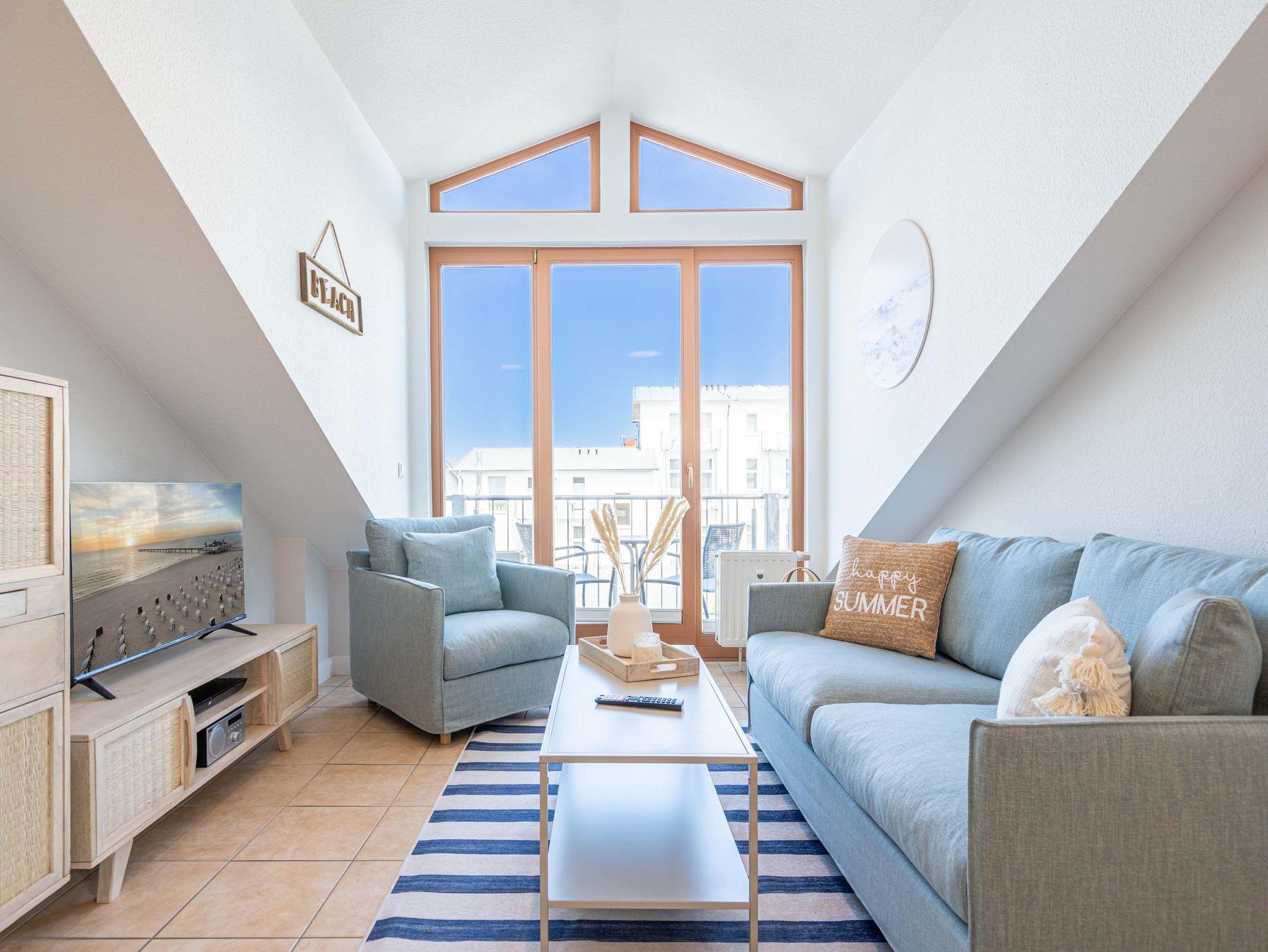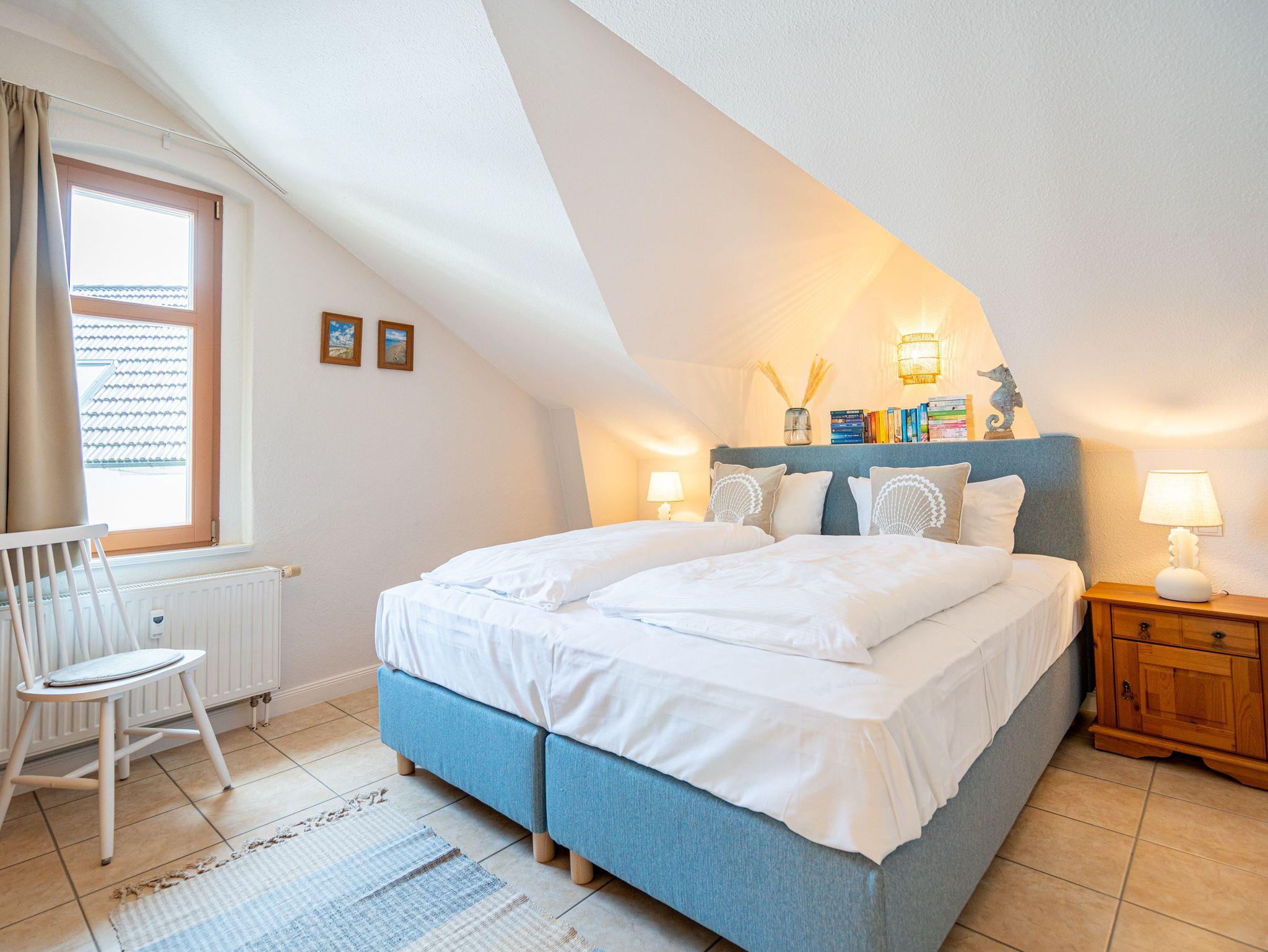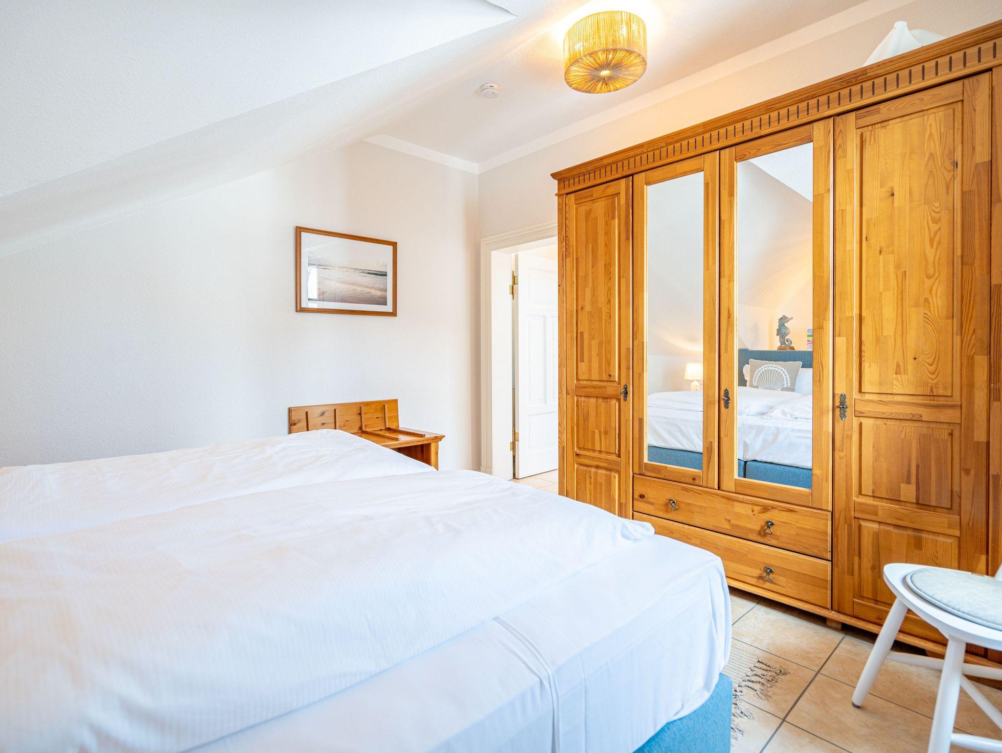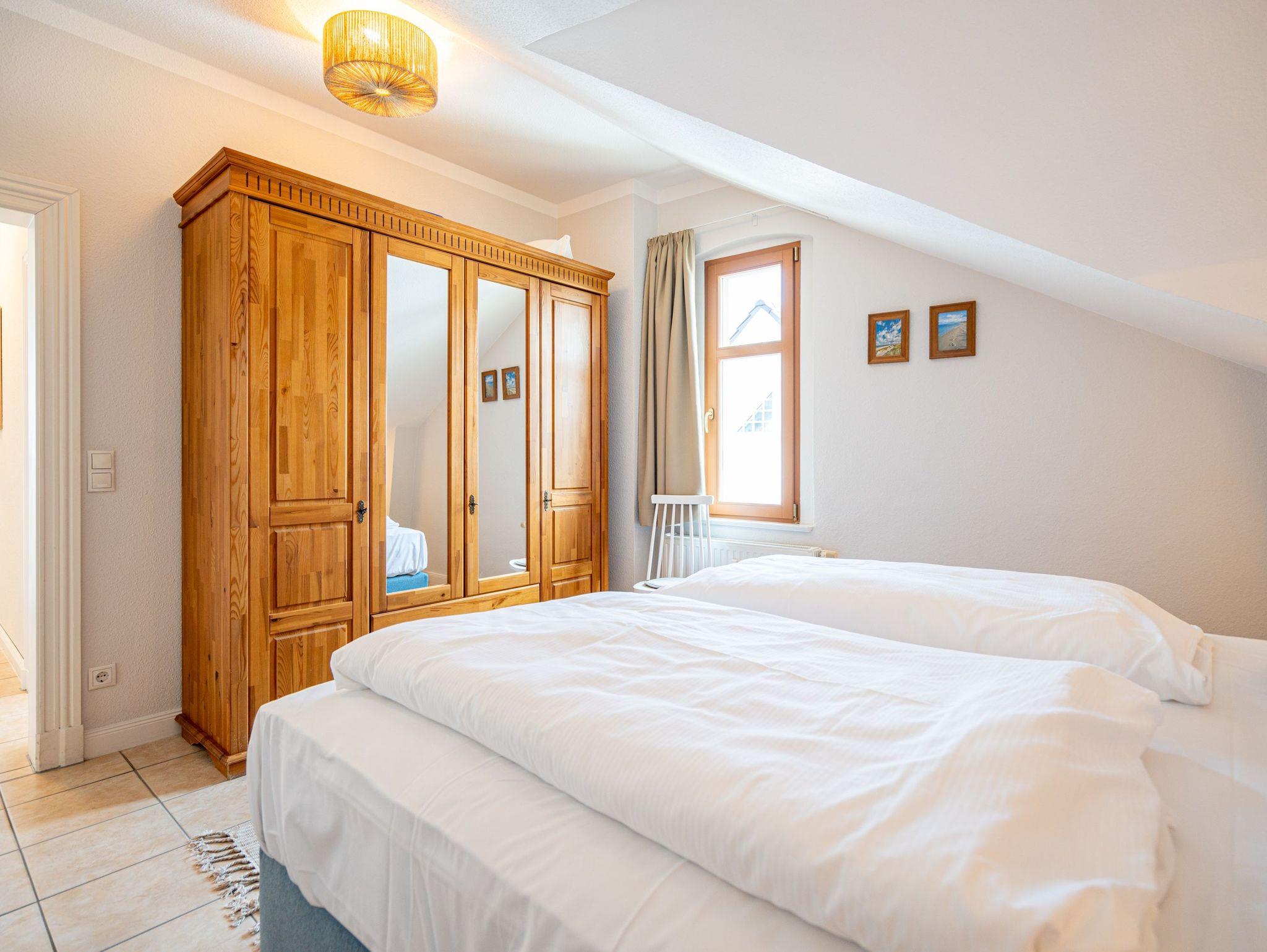 Die sehr gemütlich eingerichtete Ferienwohnung im Dachgeschoß der Villa Linquenda gestaltet Ihren Urlaub vom Moment Ihrer Ankunft an komfortabel und erholsam zugleich. Es verfügt über einen Wohnbereich, eine Küchenzeile mit 2-Platten-Herd, Mikrowelle [&] Spülmaschine; ein Schlafzimmer mit Doppelbett und ein Bad mit Dusche und WC. Das Appartement bietet auf 40 qm Platz für 2 Personen und ein Kleinkind. Auf dem Balkon beginnen Sie Ihren Urlaubstag mit einem gemütlichen Frühstück in der Morgensonne. Auf Wunsch stellen wir für unsere kleinen Gäste ein Kinderreisebett (ohne zusätzliche Matratze [&] Bettzeug) und einen Kinderhochstuhl ( gegen einen Aufpreis) zur Verfügung. Für Ihren Komfort sind die Betten bei der Anreise bezogen und Handtücher liegen bereit (Erstausstattung). Der wohnungseigene Kellerraum steht Ihnen für Fahrräder zur Verfügung.
