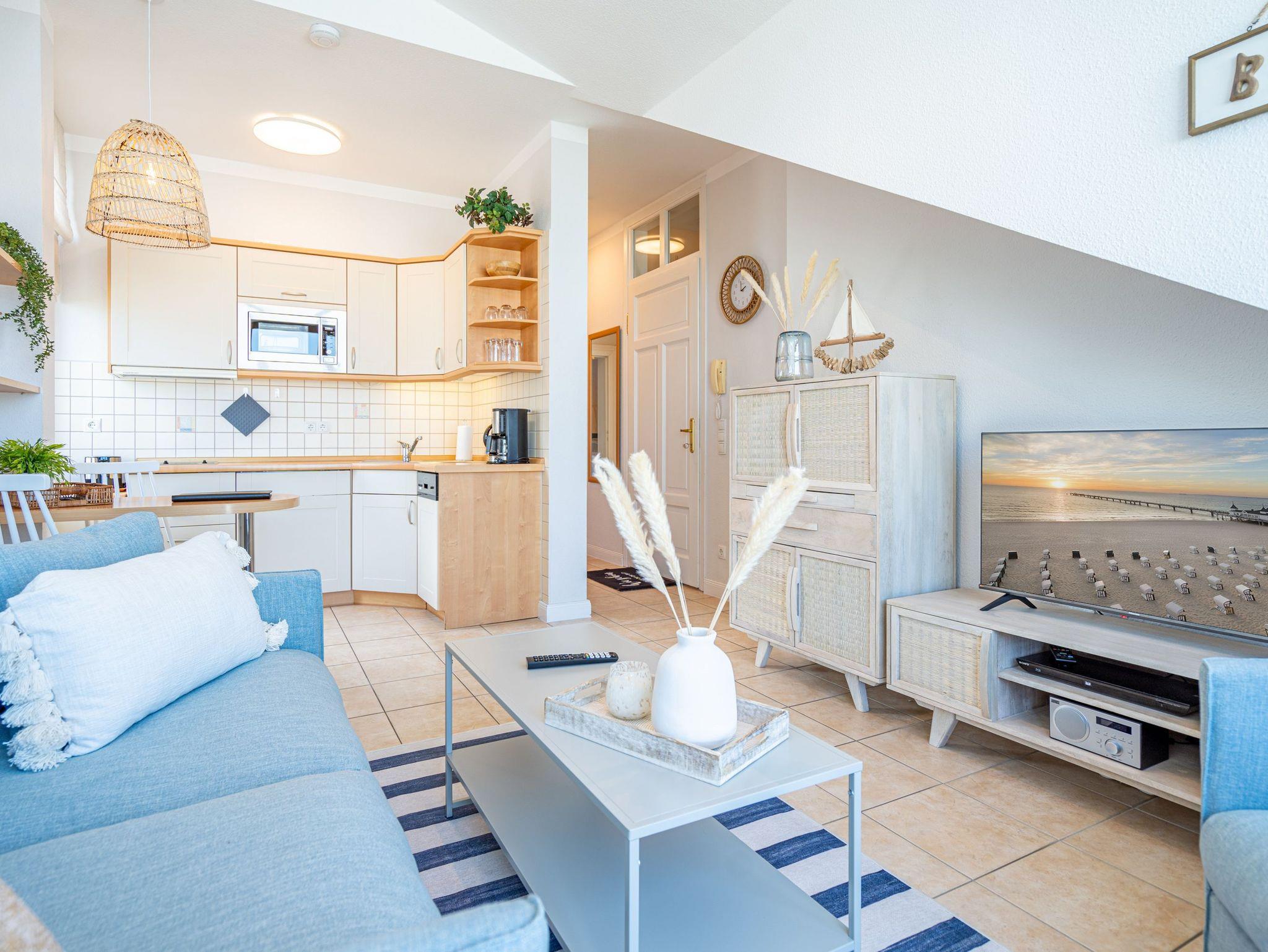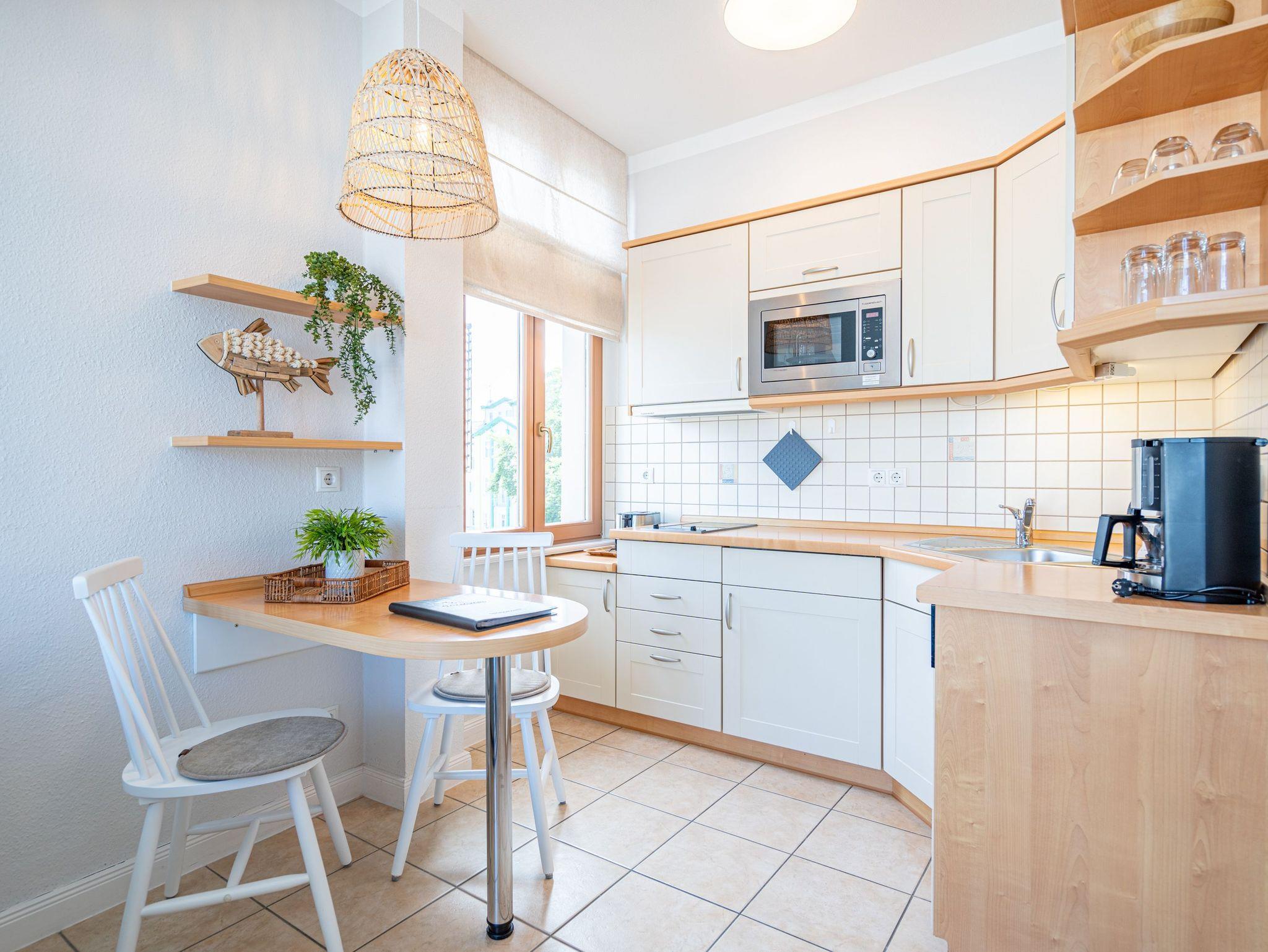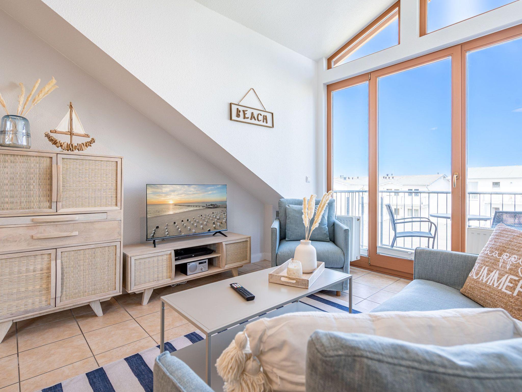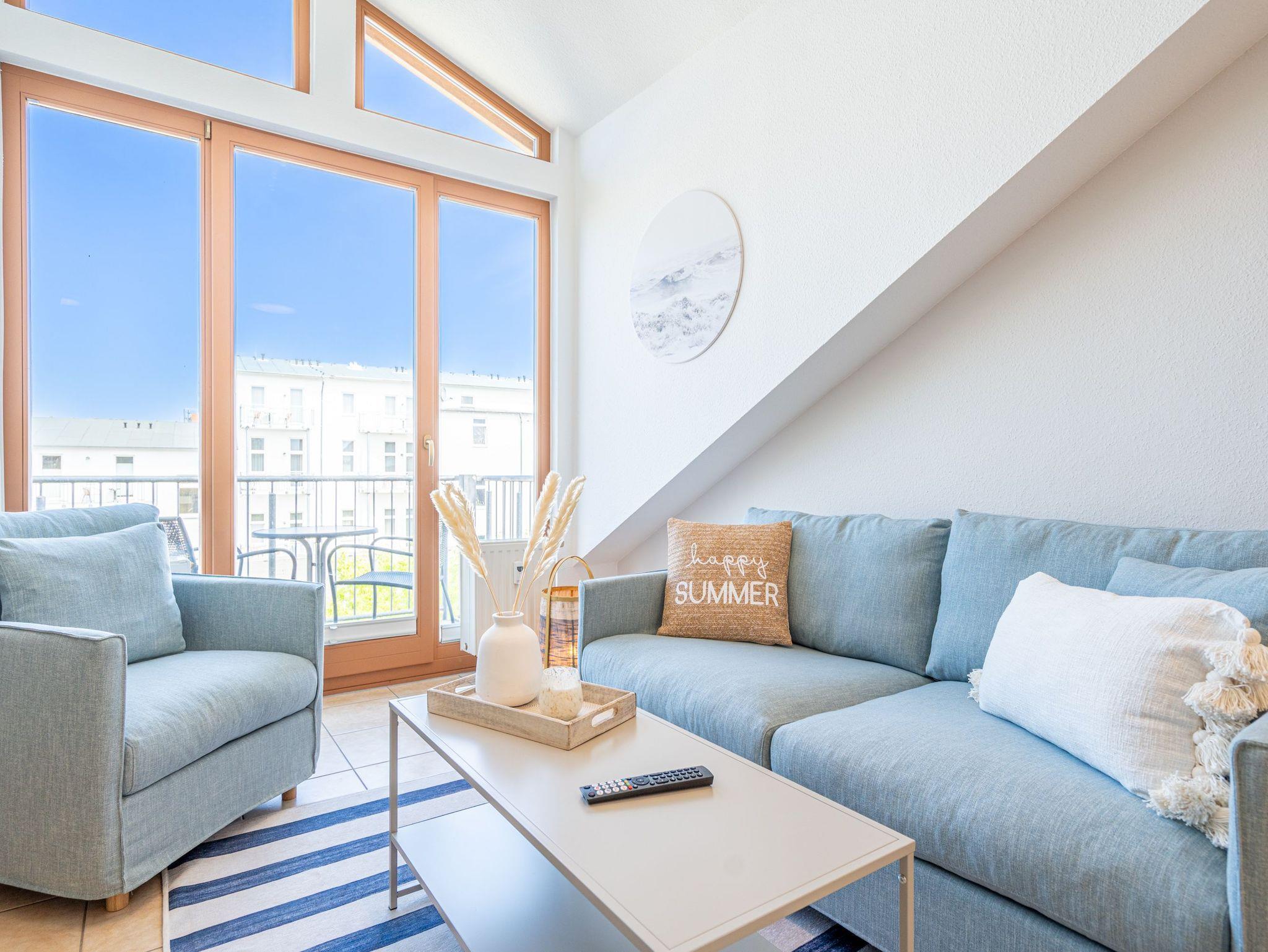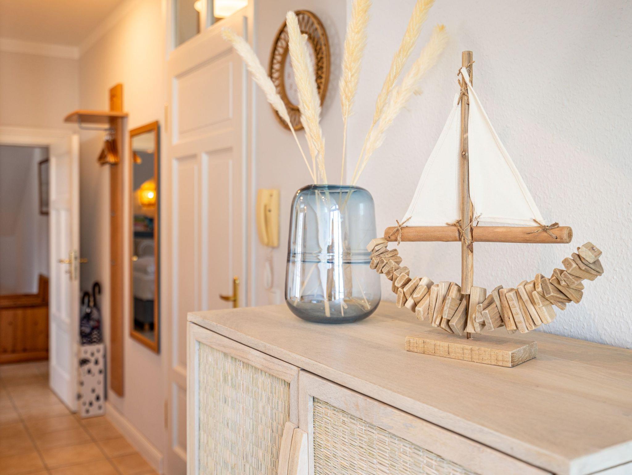 Die sehr gemütlich eingerichtete Ferienwohnung im Dachgeschoß der Villa Linquenda gestaltet Ihren Urlaub vom Moment Ihrer Ankunft an komfortabel und erholsam zugleich. Es verfügt über einen Wohnbereich, eine Küchenzeile mit 2-Platten-Herd, Mikrowelle [&] Spülmaschine; ein Schlafzimmer mit Doppelbett und ein Bad mit Dusche und WC. Das Appartement bietet auf 40 qm Platz für 2 Personen und ein Kleinkind. Auf dem Balkon beginnen Sie Ihren Urlaubstag mit einem gemütlichen Frühstück in der Morgensonne. Auf Wunsch stellen wir für unsere kleinen Gäste ein Kinderreisebett (ohne zusätzliche Matratze [&] Bettzeug) und einen Kinderhochstuhl ( gegen einen Aufpreis) zur Verfügung. Für Ihren Komfort sind die Betten bei der Anreise bezogen und Handtücher liegen bereit (Erstausstattung). Der wohnungseigene Kellerraum steht Ihnen für Fahrräder zur Verfügung.