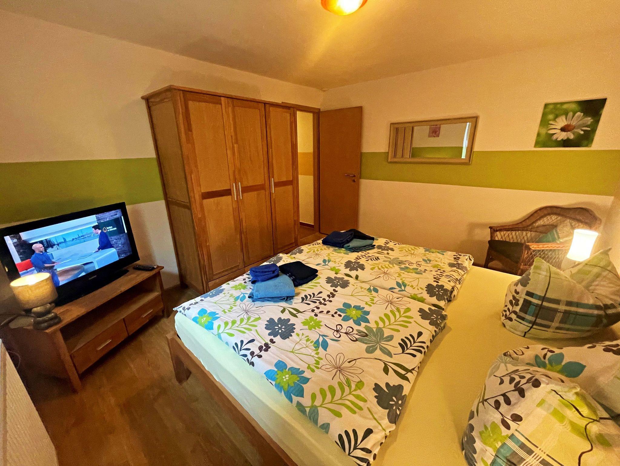 ? im Schlafzimmer im Erdgeschoss befindet sich ein Doppelbett (ca. 180 x 200cm), ein Flachbildfernseher, ein Kleiderschrank und eine Anrichte,