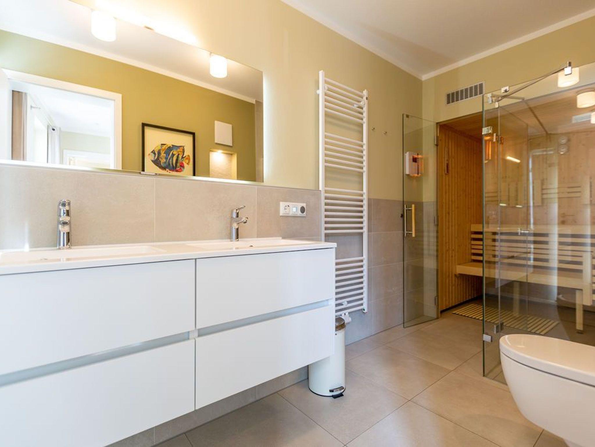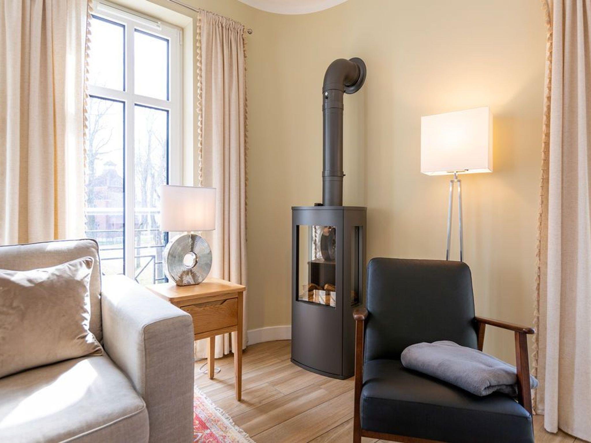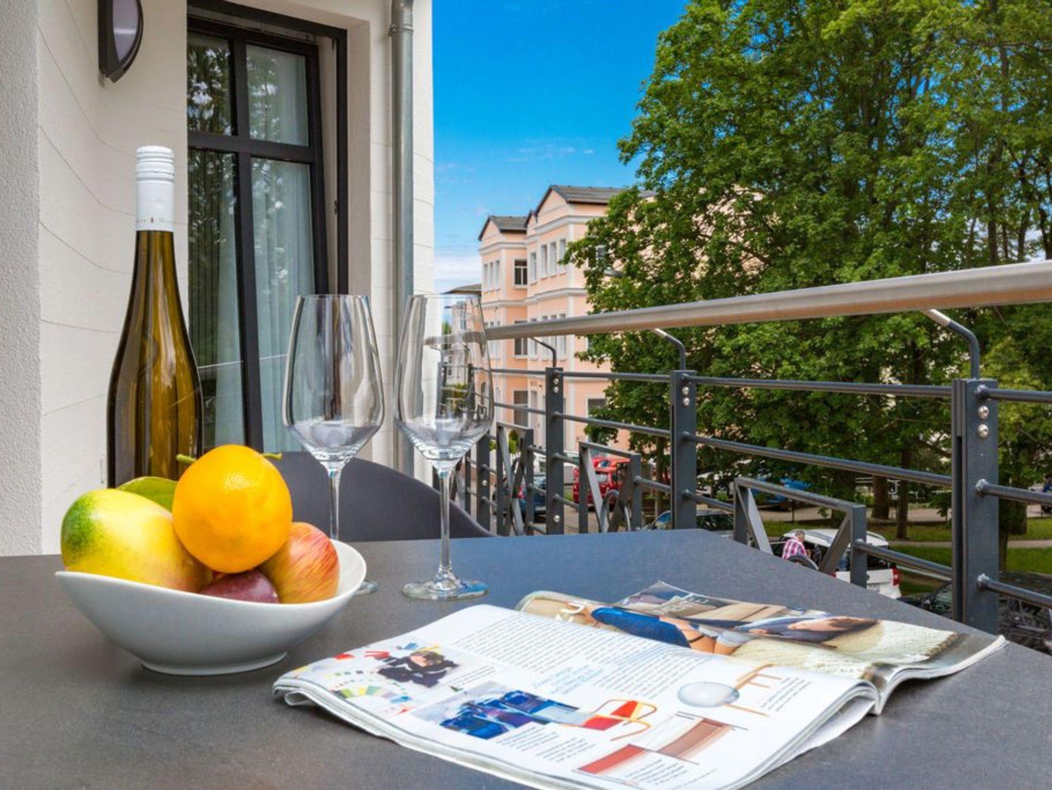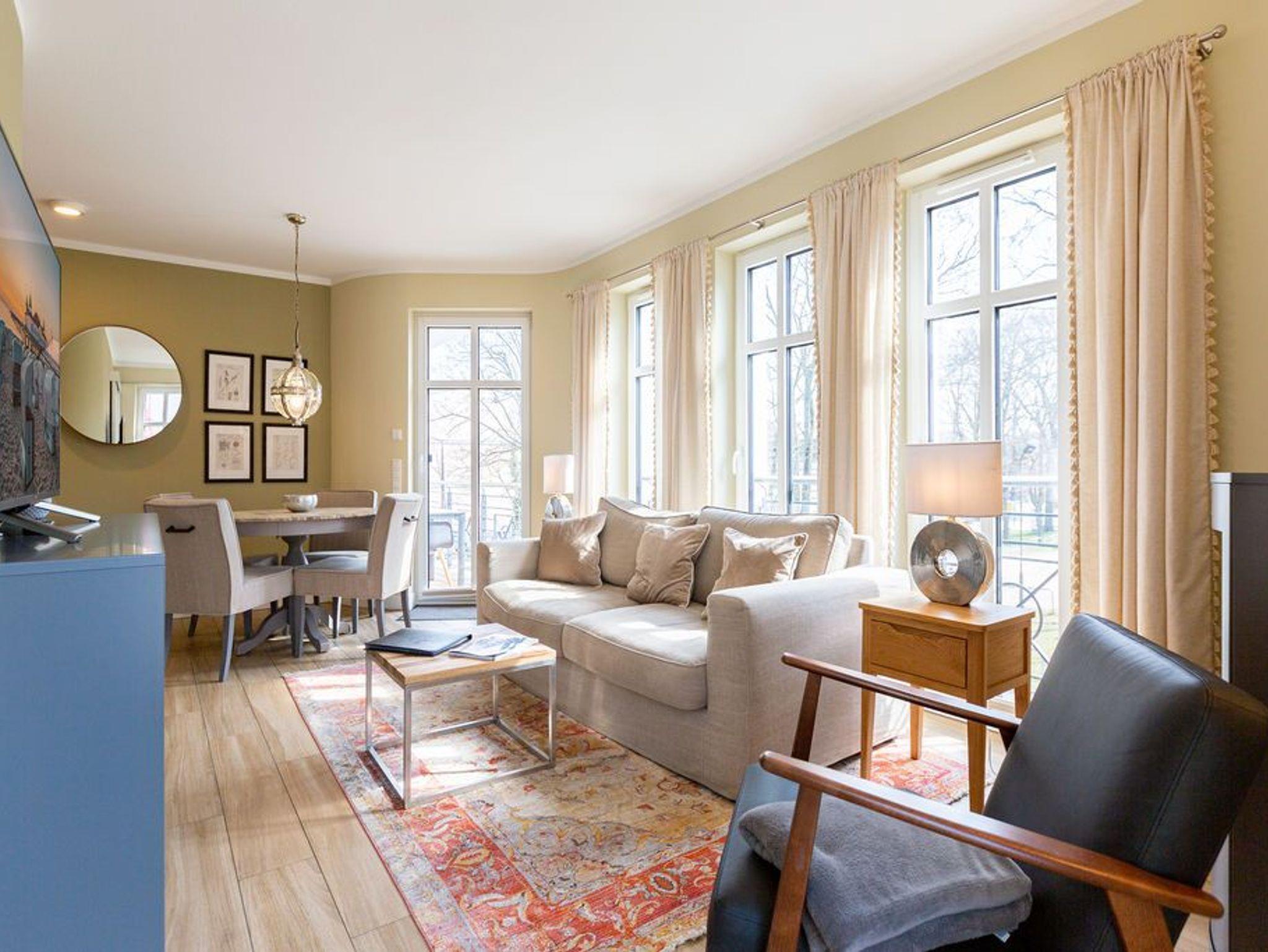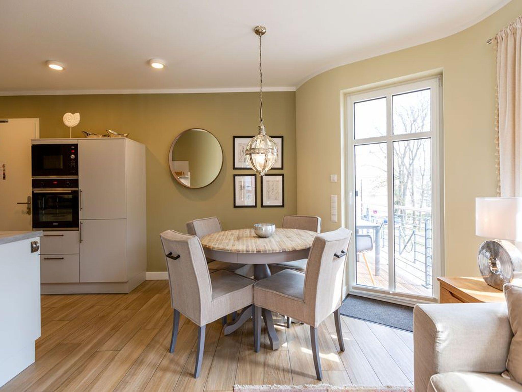 Ein außergewöhnliches, kleines Urlaubsreich erwartet Sie in den 57 Quadratmetern dieser Ferienwohnung im ersten Obergeschoss. Ein Wohlfühlreich für zwei Personen der Extraklasse. Ein Kleinkind bis zwei Jahre kann im Kinderreisebett ebenfalls hier untergebracht werden. Die zwei Zimmer des Appartements sind stilvoll und modern eingerichtet. Hier passt vom Raumkonzept bis zum Accessoires alles harmonisch zusammen. Kommen Sie an und lassen Sie die Sorgen des Alltags einfach hinter sich. Ein schönes und großzügiges Wohn-Esszimmer empfängt Sie mit viel Charme und Flair. Gemütlich können Sie es sich auf den nordischen Design-Klassikern wie dem Sofa oder dem Sessel machen. Von hier aus haben Sie den großen Flat-TV und den Gas-Kamin gut im Blick. Der Urlaubsentspannung steht also nichts mehr im Weg. Ein schöner, runder Esstisch lädt zum Essen ein. Zubereiten können Sie die aufgetischten Köstlichkeiten direkt in der offenen Küche. Sie ist mit allen nötigen Geräten und mit edlem Geschirr voll ausgestattet. Sie finden dort unter anderem eine Mikrowelle, eine Spülmaschine, Backofen und Herd sowie einen Kühlschrank mit Gefrierfach. Vom Wohnzimmer aus können Sie auf den kleinen Balkon hinaustreten. Sonnenüberflutet bietet er mit Blick auf das Grün des Kurparks und den Kirchturm der Ahlbecker Kirche ein schönes Plätzchen zum Verweilen. Ein breites und vor allem bequemes Boxspringdoppelbett (1,80 m x 2,00 m) schenkt Ihnen im Schlafzimmer Schlafvergnügen und erholsame Träume. Kuscheln ist hier ausdrücklich erlaubt. Ablageflächen finden Sie im Kleiderschrank und im Board unter dem Flat-TV. Das Badezimmer ist mit einer ebenerdigen Dusche, Doppel-Waschtisch und WC ausgestattet. Außerdem können Sie sich an kühlen Tagen in der Finnischen Sauna so richtig durchwärmen. Handtücher liegen für Sie bereit. Und auch die Betten sind bei Ihrer Anreise bezogen. In der Tiefgarage ist für Ihr Auto ein Stellplatz vorgesehen.