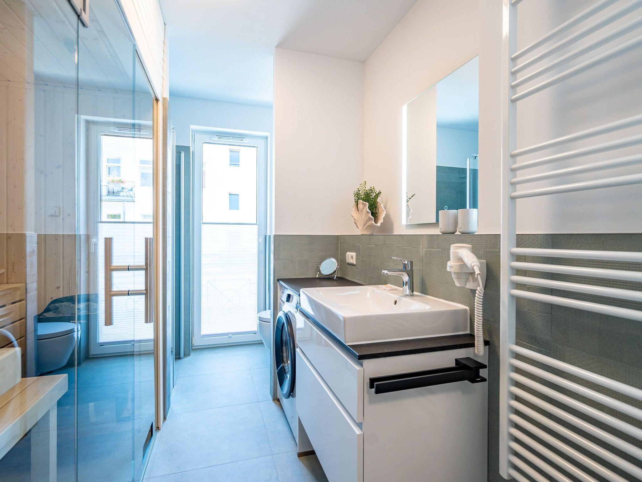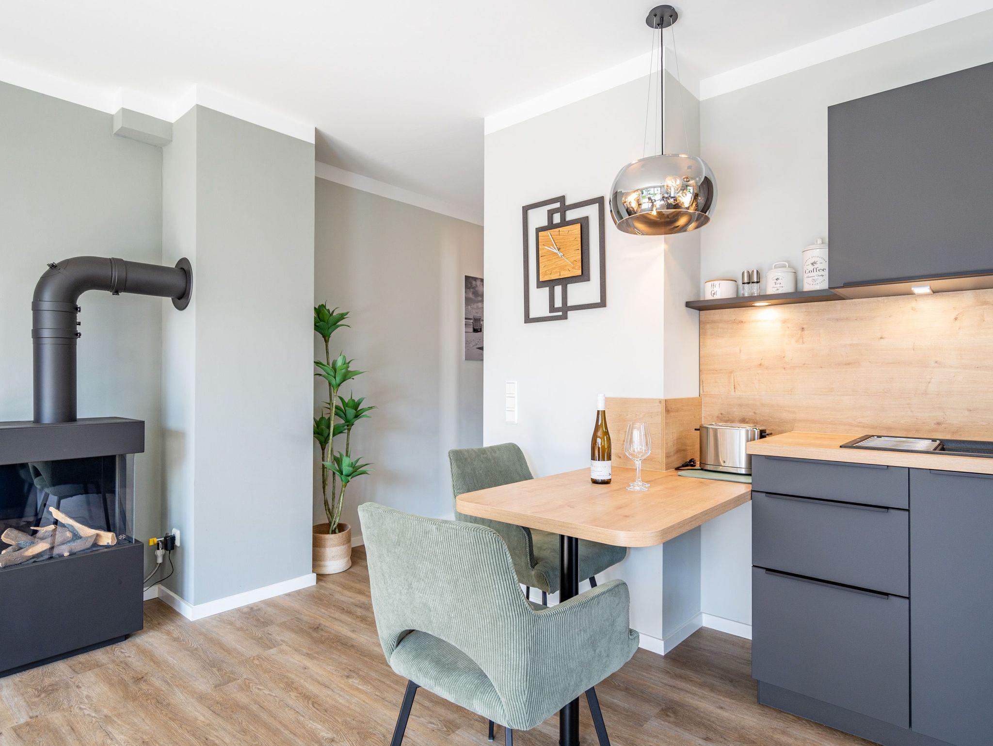 Willkommen in unserem charmanten 2-Raum-Appartement N° 3 im Erdgeschoss des Quartier 6! Auf 57 Quadratmetern finden hier bis zu 2 Personen Platz. Der offene Wohnbereich besticht durch eine voll ausgestattete Küchenzeile, einen Essplatz für 2 Personen und eine gemütliche Sitzgruppe. Ein Flat-TV mit 50 Zoll und ein Gas-Kamin mit Fernbedienung laden zu entspannten Abenden ein. Von hier aus gelangen Sie auf die Ost-Terrasse, die mit Gartenmöbeln ausgestattet ist. Das Schlafzimmer bietet ein komfortables Boxspringdoppelbett (1,80 m x 2,00 m), einen Kleiderschrank und einen weiteren Flat-TV. Das moderne Duschbad verfügt über einen Waschtisch und ein WC sowie eine Finnische Sauna, die Ihnen erholsame Stunden nach einem erlebnisreichen Tag verspricht. Auch eine Waschmaschine steht Ihnen hier zur Verfügung. Ihr Fahrzeug parken Sie bequem auf dem zugehörigen PKW-Stellplatz in der Tiefgarage. Ihre Fahrräder finden in der Tiefgarage im eigenen Abstellraum Platz. Natürlich bieten wir Ihnen kostenfreies WLAN, damit Sie auch im Urlaub stets verbunden bleiben. Wir freuen uns darauf, Sie in unserem gemütlichen Appartement willkommen zu heißen!