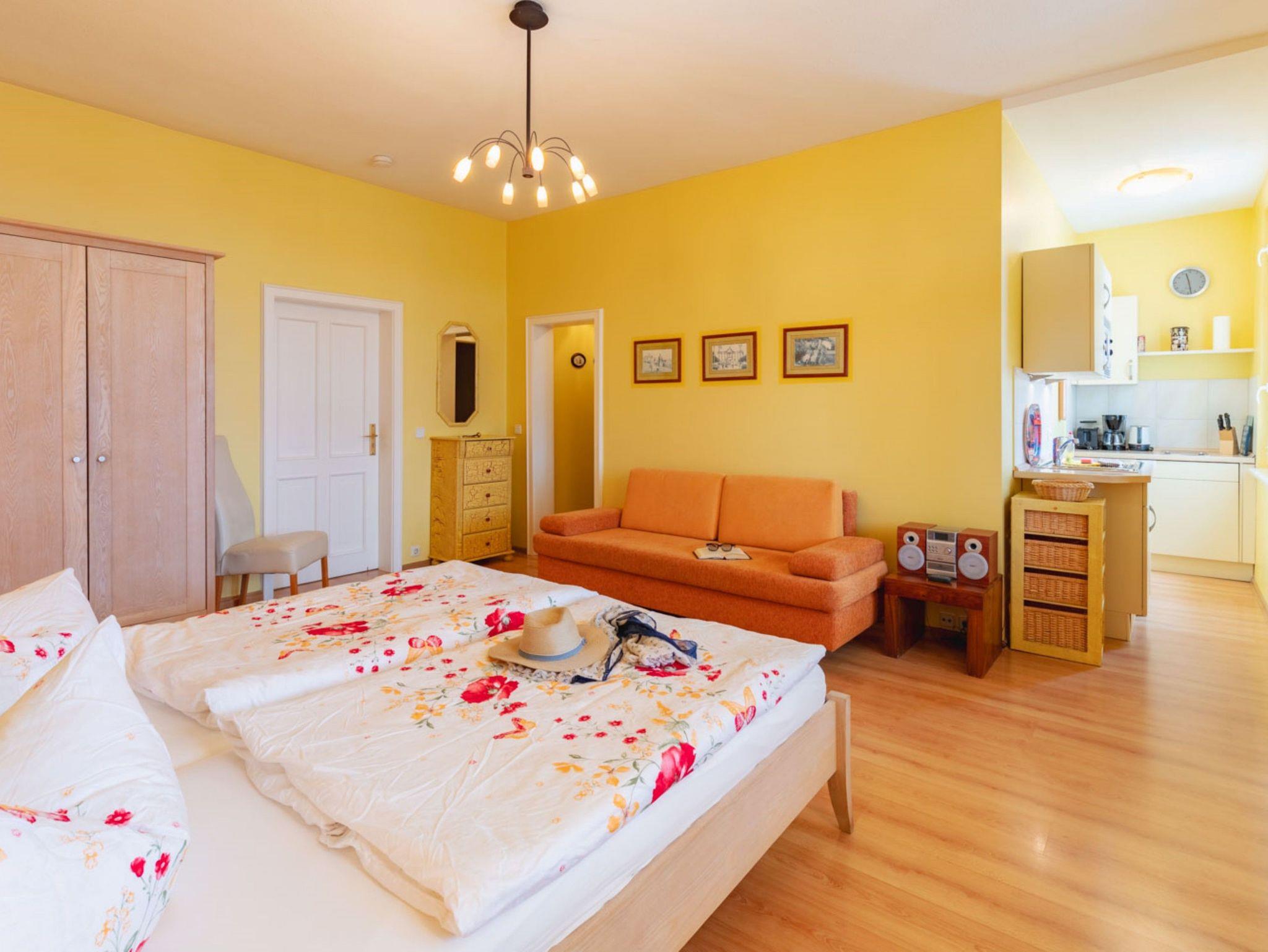 Die 36 qm große komfortable 2-Raum-Ferienwohnung befindet sich in der zweiten Etage. Sie verfügt über einen herrlichen Seeblick.
