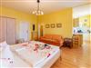 Zur Wohnung gehören eine Veranda als Wohnraum und ein kombinierter Wohn-/Schlafraum mit Schlafcouch und Doppelbett, Sat-TV, Radiowecker, Telefon sowie ein Schranksafe. Die Küchenzeile ist mit zwei Herdplatten, Spüle, Mikrowelle, Kaffeemaschine etc. ausgestattet. Bad mit Dusche und WC.