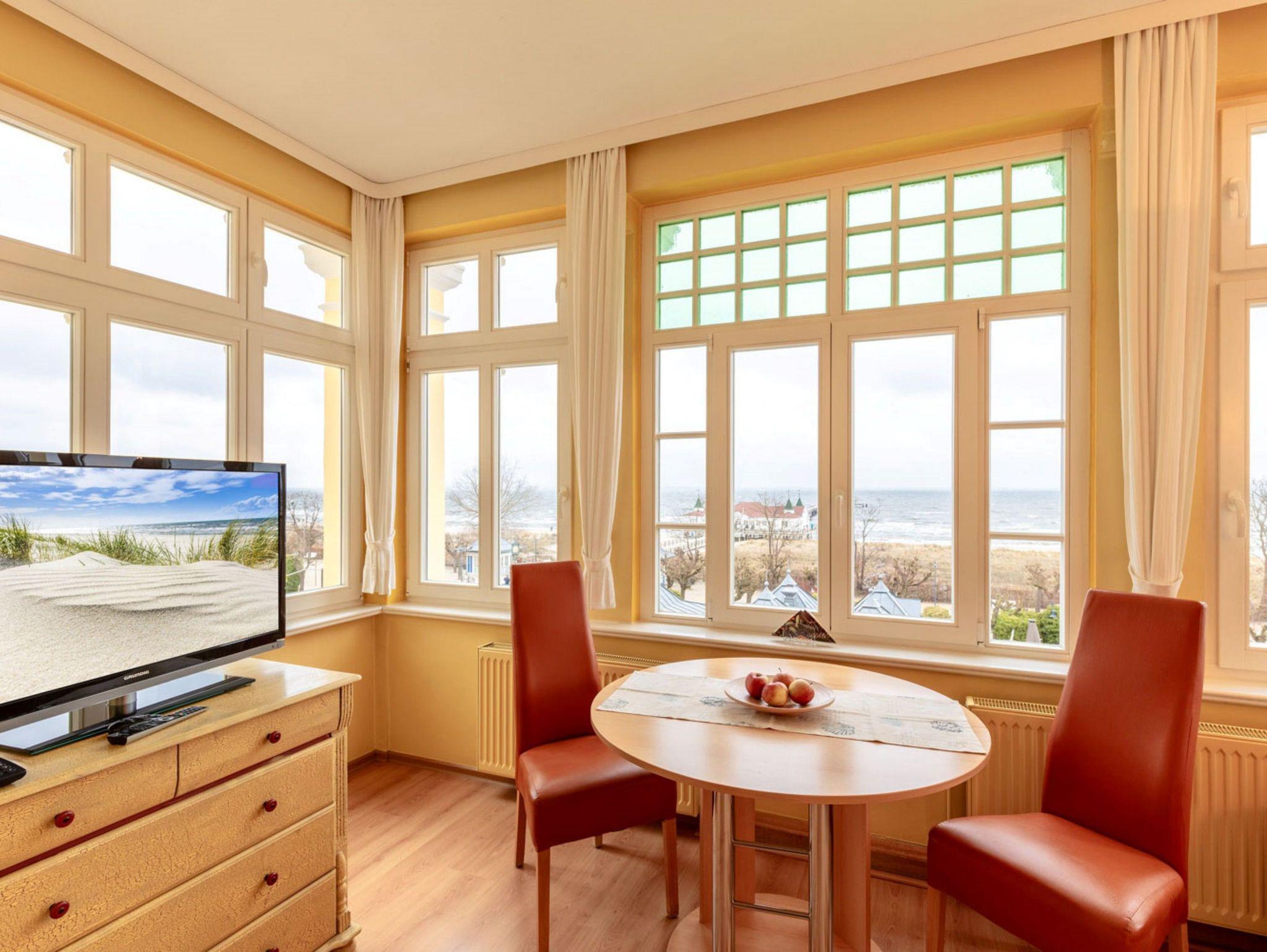 Das Haus Am Meer besteht aus der 1992 liebevoll restaurierten Villa (Haupthaus) und der 1998 angebauten Dependance (Nebengebäude/Anbau). Bei uns sind Sie in der ersten Reihe, direkt an der historischen Seebrücke und nur wenige Schritte vom Ostseestrand entfernt.