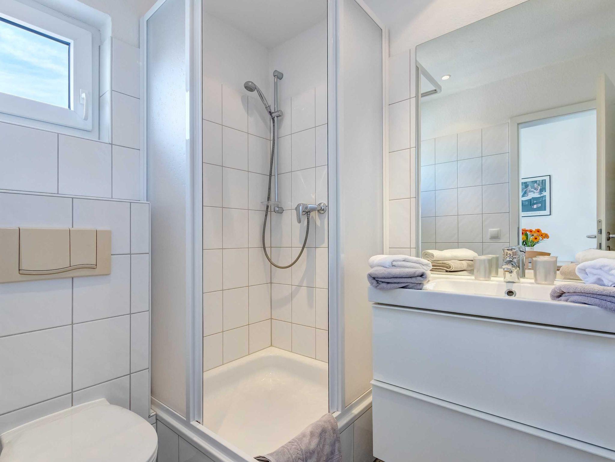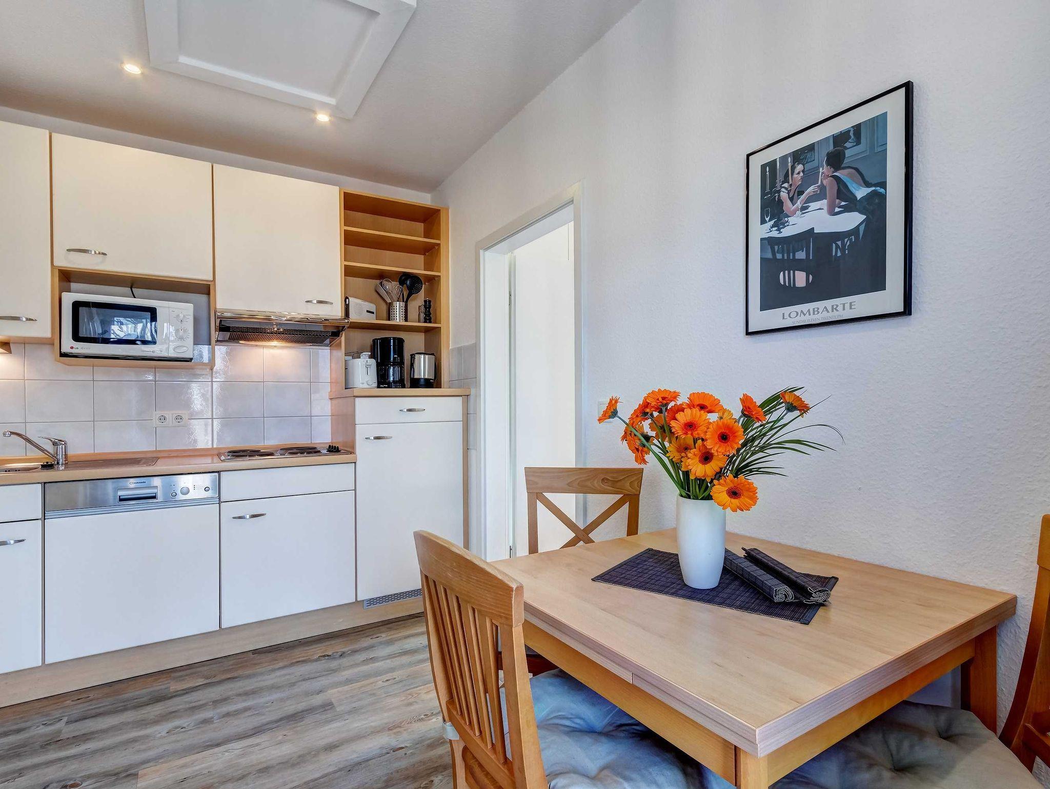 Hübsches 1-Zimmer-Appartement mit moderner guter Ausstattung. Kombinierter Wohn-/Schlafraum, separate Küche mit Essplatz, Duschbad, Dachterrasse nach Süden mit Sonne bis abends. Die Wohnung verfügt über einen Pkw-Stellplatz. Von der Villa Aquamarina sind es zum Ortszentrum und der Seebrücke ca. 3 Minuten zu Fuß. Zum Strand sind es 50 m. Die Wohnungen der Villa Aquamarina verfügen alle über passwortgeschütztes WLAN (gerätegebunden, Euro 1,50 pro Tag und pro Gerät).
