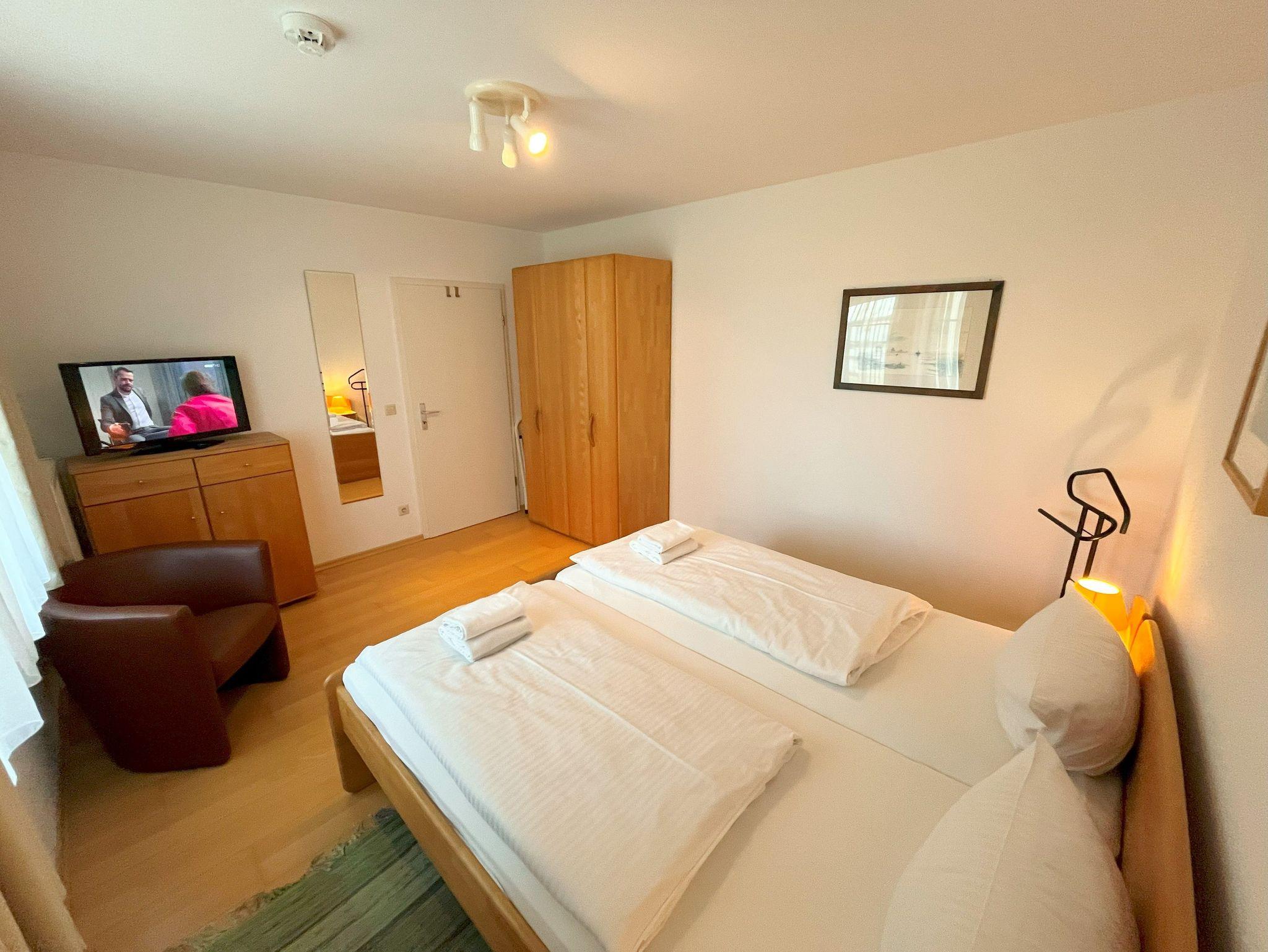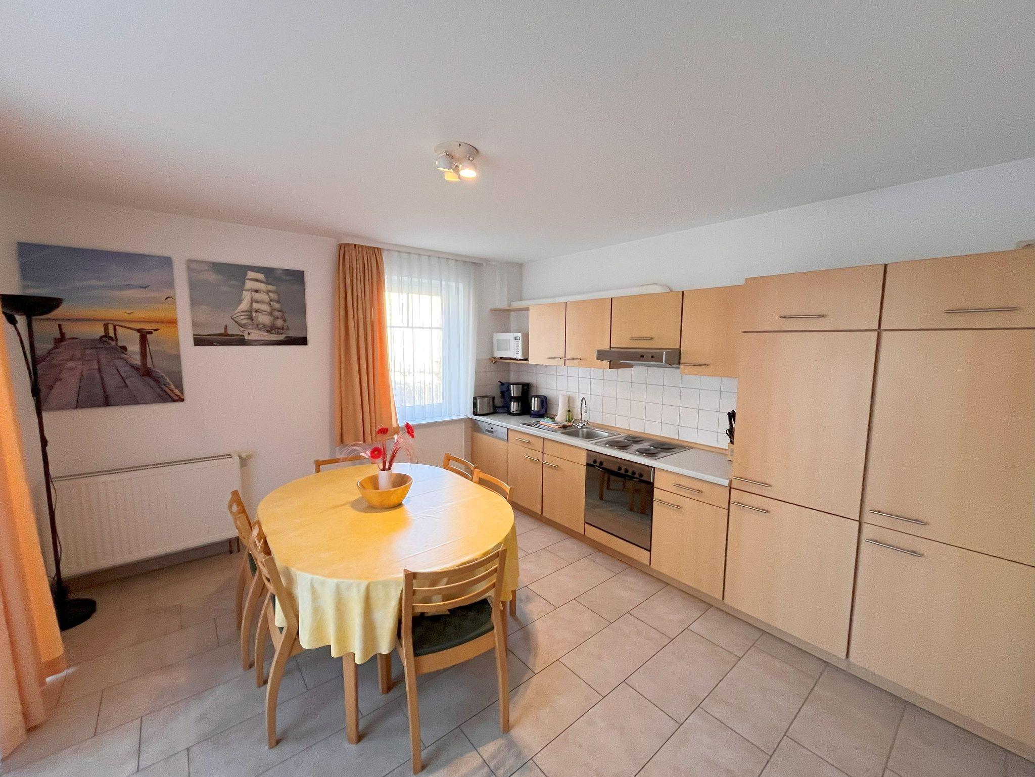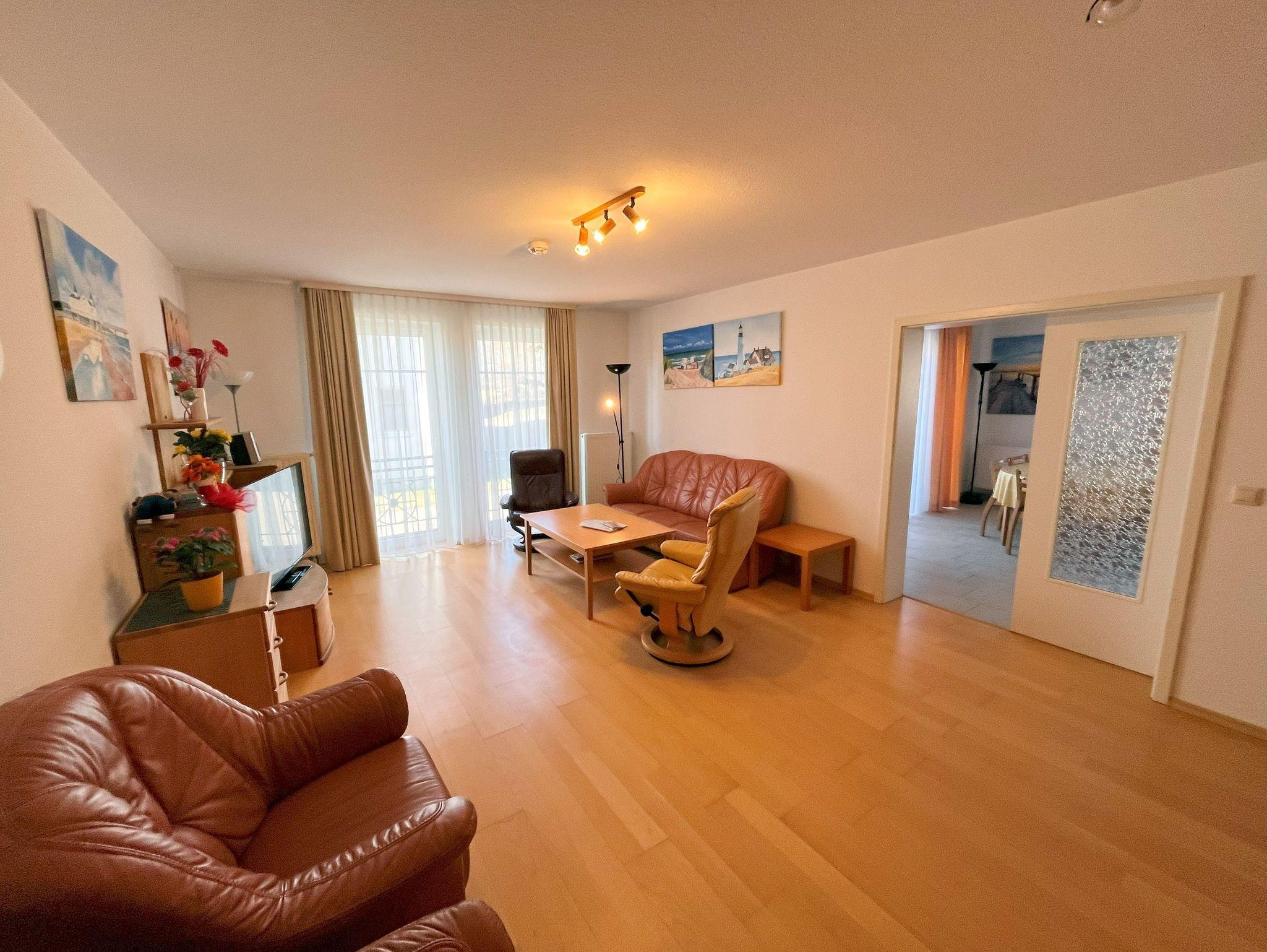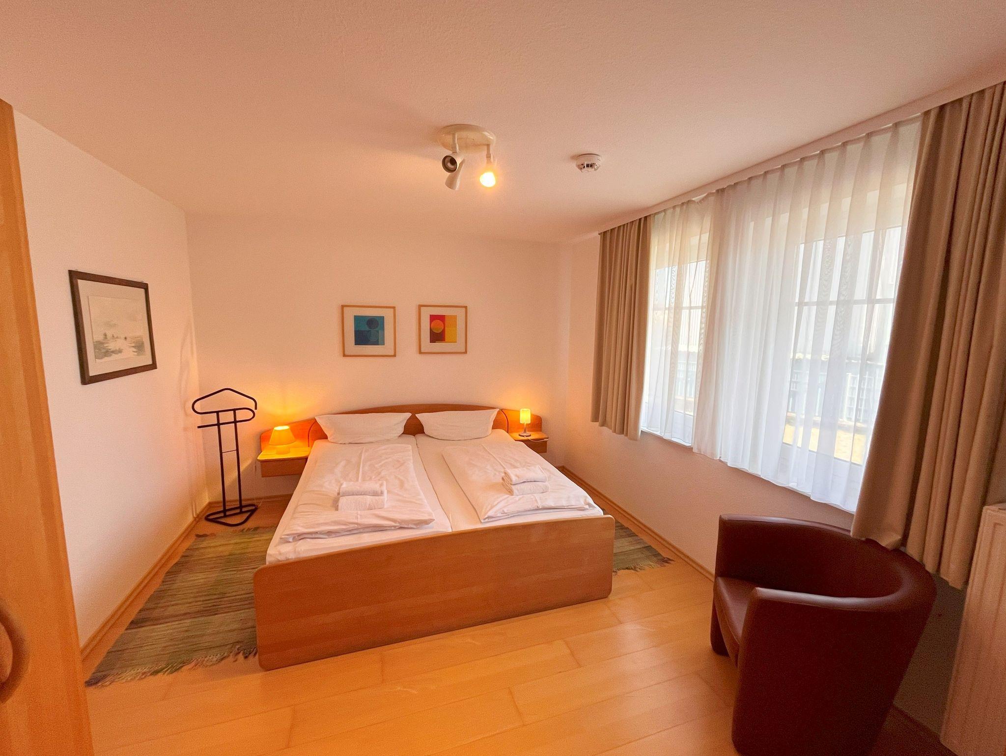 Herzlich willkommen in dieser charmanten Nichtraucher-Wohnung! Mit einer großzügigen Fläche von 66 qm bietet sie Ihnen ein helles und freundliches Ambiente, ideal für entspannte Tage. Im gemütlichen Wohnzimmer finden Sie ein praktisches Schrankbett, eine einladende Couchecke und einen Flachbild-TV, perfekt für gesellige Abende. Die separate Küche ist bestens ausgestattet mit einem Herd, Backofen, Spülmaschine, Mikrowelle, Kaffeemaschine, Wasserkocher und Toaster - hier wird das Kochen zum Vergnügen! Der große Esstisch mit Stühlen lädt zu gemeinsamen Mahlzeiten ein. Im Schlafzimmer erwartet Sie ein komfortables Doppelbett, Kleiderschrank und ein weiterer TV für entspannte Nächte. Das Tageslicht-Bad verfügt über eine ebenerdige Dusche und ein WC, sodass Sie sich rundum wohlfühlen können. Zusätzlich steht Ihnen ein separater Abstellraum zur Verfügung und die möblierte Terrasse zur Süd-Südwestseite, die von der Küche aus begehbar ist, lädt zum Verweilen im Freien ein. Ihr Auto können Sie kostenfrei direkt vor dem Haus parken und auch Ihre Fahrräder finden in einem separaten Abstellraum Platz. Und das Beste: Ihr kleiner Vierbeiner (bis 30 cm Schulterhöhe) ist herzlich willkommen! Eine kleine Gebühr fällt hierfür an. Selbstverständlich steht Ihnen das W-LAN Netz kostenfrei zur Verfügung.