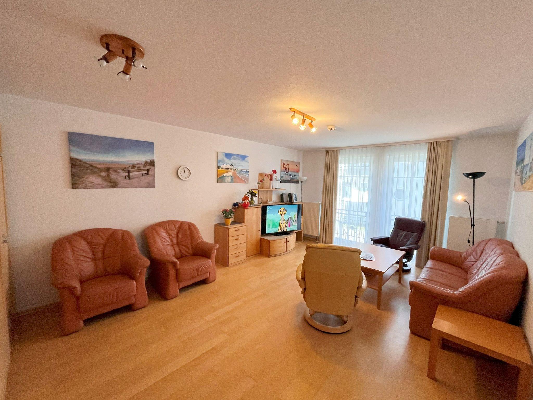 Diese gemütlich eingerichtete Ferienwohnung befindet sich im Erdgeschoss einer charmanten Appartement-Anlage und bietet Ihnen eine kleine, möblierte Terrasse, auf der Sie entspannen können. In nur etwa 3 Minuten Fußweg erreichen Sie die wunderschöne Strandpromenade des Seebades Ahlbeck sowie den feinen Sandstrand - ideal für entspannte Tage am Meer. Das Ortszentrum mit seinen zahlreichen Geschäften und Restaurants ist ebenfalls nur ca. 500 m entfernt, sodass Sie alles Wichtige bequem zu Fuß erreichen können. Für Ihren Komfort steht Ihnen ein kostenfreier Stellplatz direkt vor dem Haus zur Verfügung. Wenn Sie mit dem Fahrrad unterwegs sind, können Sie Ihre Räder in einem separaten Abstellraum unterbringen oder die kostenfrei zur Verfügung gestellten Fahrräder nutzen. Diese finden Sie im Wohnungskeller (zweite Tür links). Bitte beachten Sie, dass der Vermieter keine Haftung für Schäden oder Verlust der Räder übernimmt. Bei eventuellen Schäden bitten wir Sie, die Räder bei den ansässigen Unternehmen instand setzen zu lassen. Und das Beste: Ihr kleiner Vierbeiner (bis 30 cm Schulterhöhe) ist herzlich willkommen! Eine kleine Gebühr fällt hierfür an. Zudem steht Ihnen ein kostenfreies W-LAN-Netz zur Verfügung, damit Sie immer verbunden bleiben können.