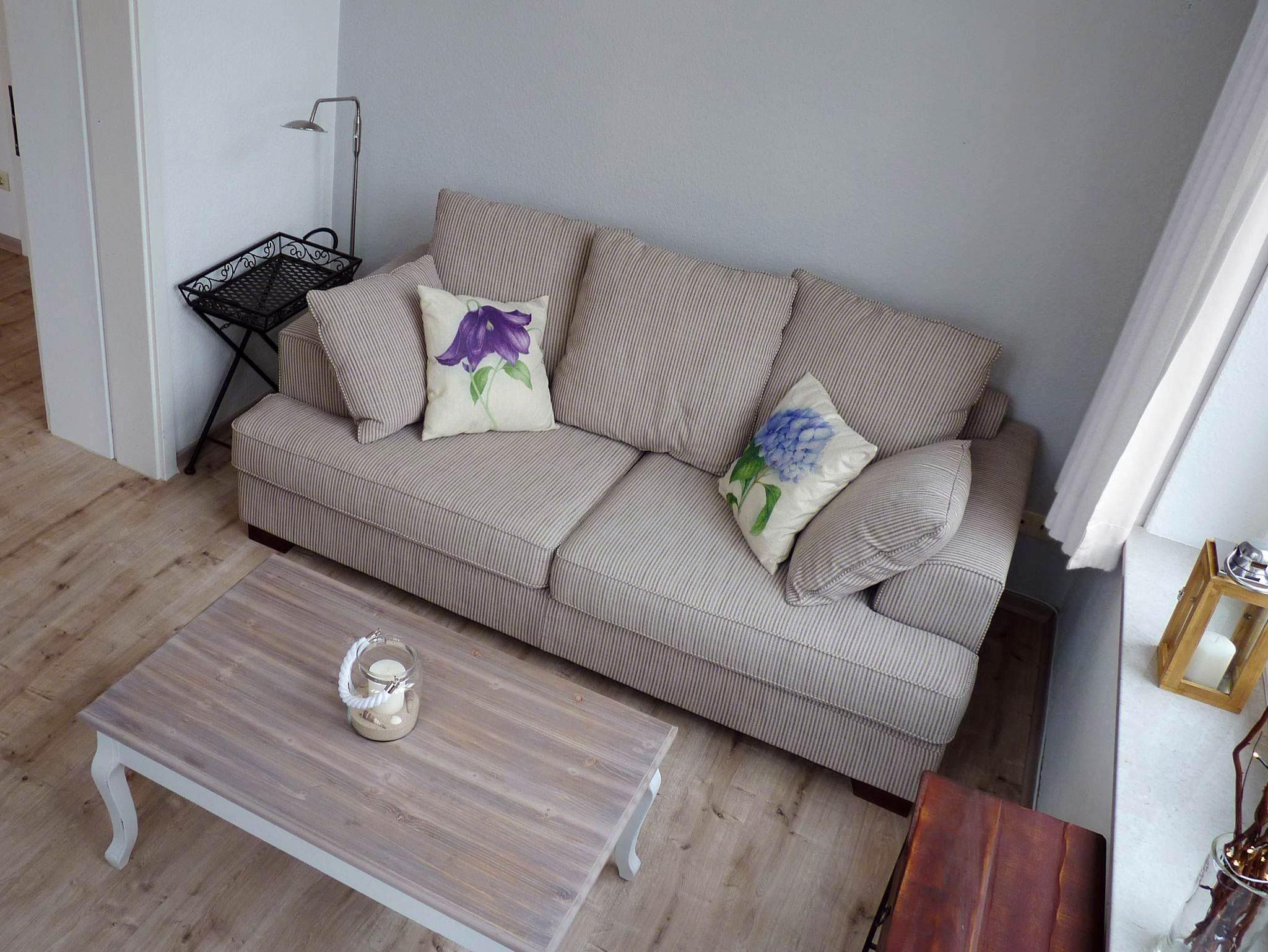 Im Erker-Wohnzimmer gibt es eine gemütliche Sitzecke und einen 80 cm Flachbild-TV Schirm mit Internet. Für Musik sorgt im Wohnbereich eine hochwertige Stereoanlage mit UKW/Internet-Radio, CD-Player, USB und Bluetooth.