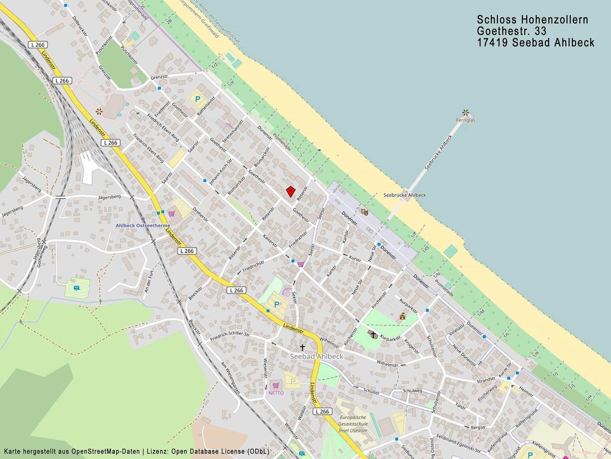 Die in Ahlbeck gelegene Villa Schloss Hohenzollern befindet sich direkt in zweiter Reihe, nur 100 m entfernt vom feinen Sandstrand und der Promenade.