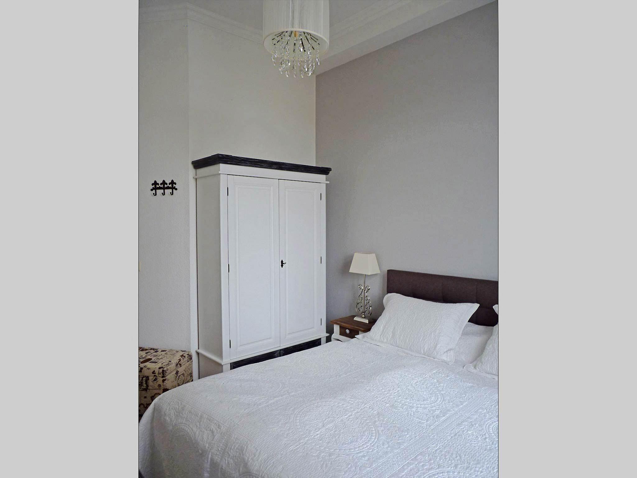 Das geräumige Apartment 11 liegt im Hochparterre der historischen Villa Schloss Hohenzollern und hat einen eigenen Eingang. Das Treppenpodest vor dem Wohnungseingang kann als Balkon genutzt werden, wo den ganzen Vormittag das Sonnenlicht ist. Der kostenlose Privatparkplatz befindet sich vor dem Haus. Der Stellplatz ist durch einen Baum etwas beengt und nur für Klein- und Kompaktwagen geeignet. Kostenloses WLAN ist in der ganzen Unterkunft verfügbar.