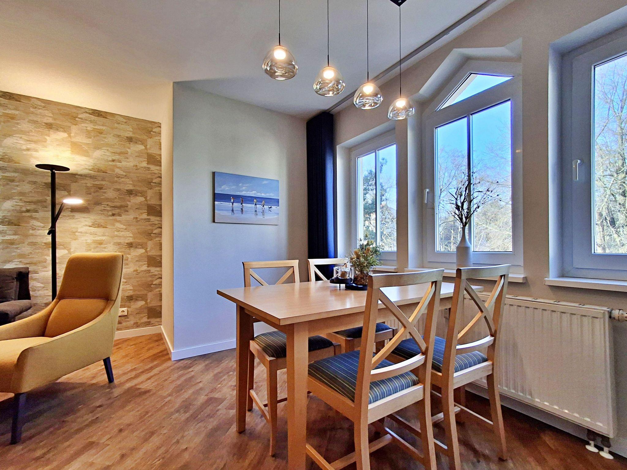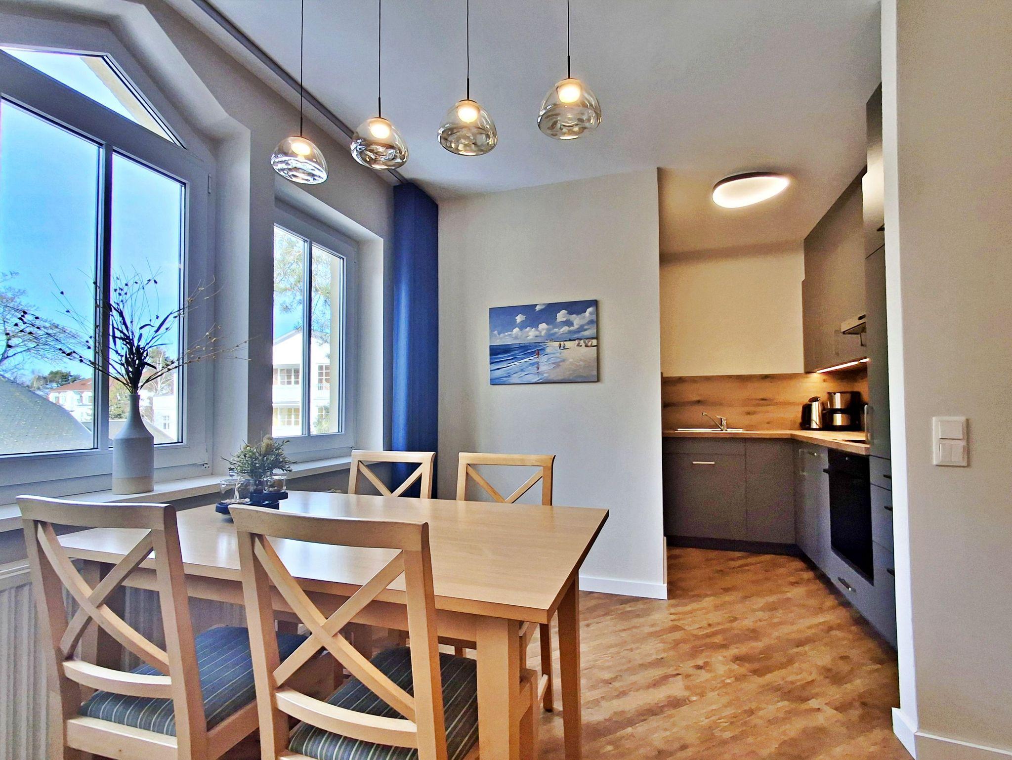 Gemütlich eingerichtete Ferienwohnung, nur 100 m von der Strandpromenade im Seebad Ahlbeck entfernt. Ruhig und doch absolut zentral gelegen, auf halber Entfernung zwischen den Seebrücken von Ahlbeck und Heringsdorf. Eine Gehminute bis zum Strand (ca. 100 m) und ca. 2 Gehminuten bis zur Ostseetherme (ca. 200 m). Zum nächsten Supermarkt sind es 5 Minuten zu Fuß, zum Stadtzentrum Ahlbeck 10 Minuten, nach Heringsdorf 15 Minuten zu Fuß. Ganz in der Nähe befinden sich mehrere gemütliche Restaurants und Cafés.