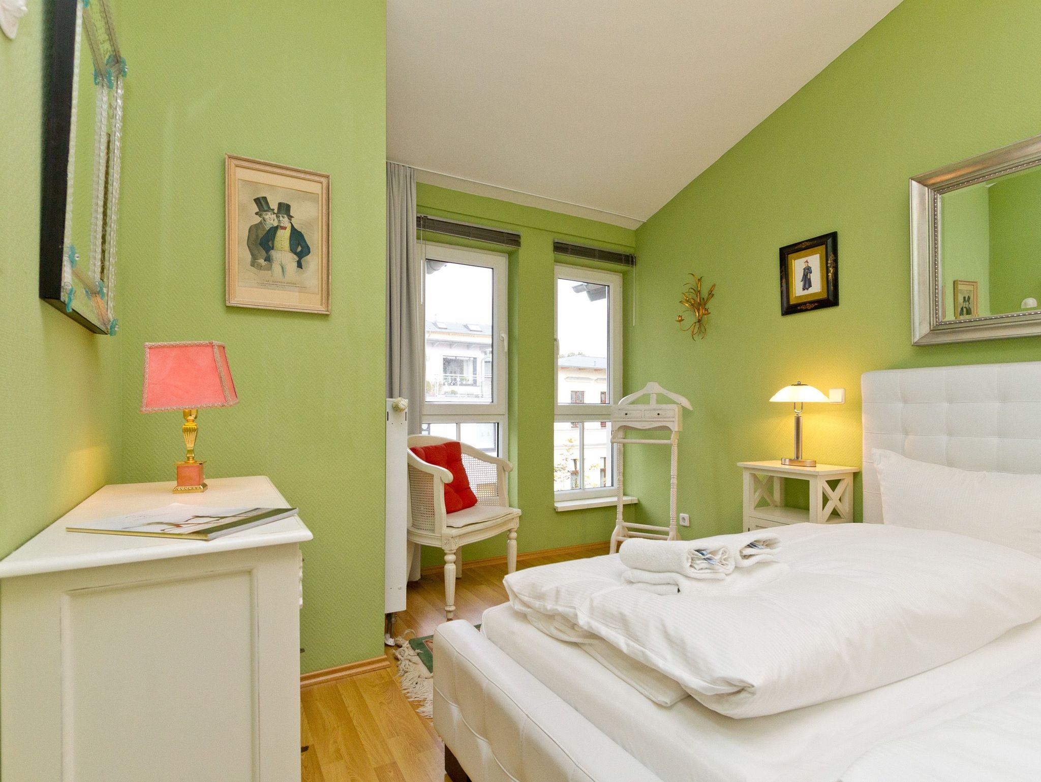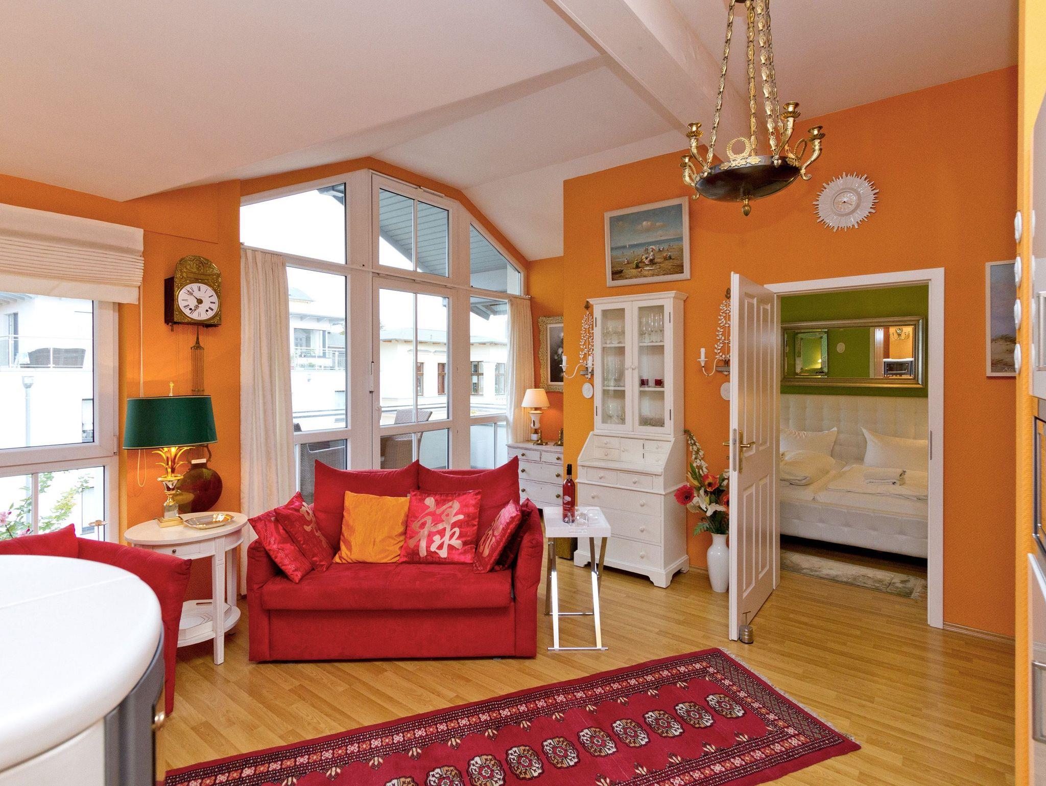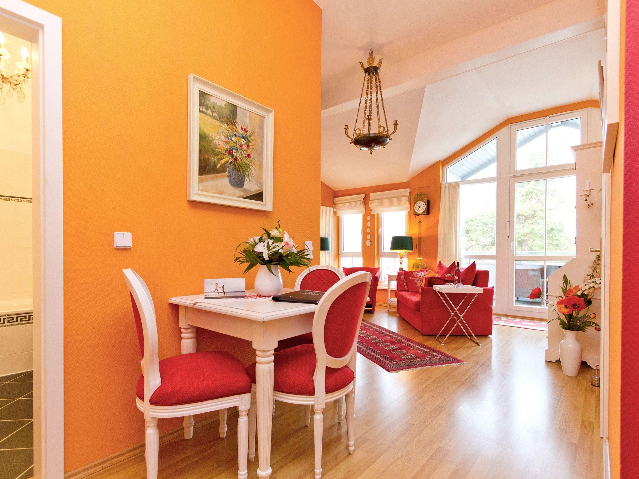 Die Ferienwohnung 13 in der Residenz Bismarck empfängt Sie in der obersten Etage des Hauses. Hier erfahren Sie einen besonderen Wohnstil. Ausgesuchte Stilmöbel kombiniert mit harmonierenden Farben und Stoffen werden Sie begeistern. Ihr Wohnbereich ist mit einer komplett ausgestatteten Küchenzeile, einem separaten Essplatz und Kamin eingerichtet. Vom Wohnbereich gelangen Sie auf den Balkon, auf dem Sie die Nachmittags- und Abendsonne genießen. Für Ihren Komfort ist die Erstausstattung Bettwäsche bezogen und die Handtücher liegen bereit.