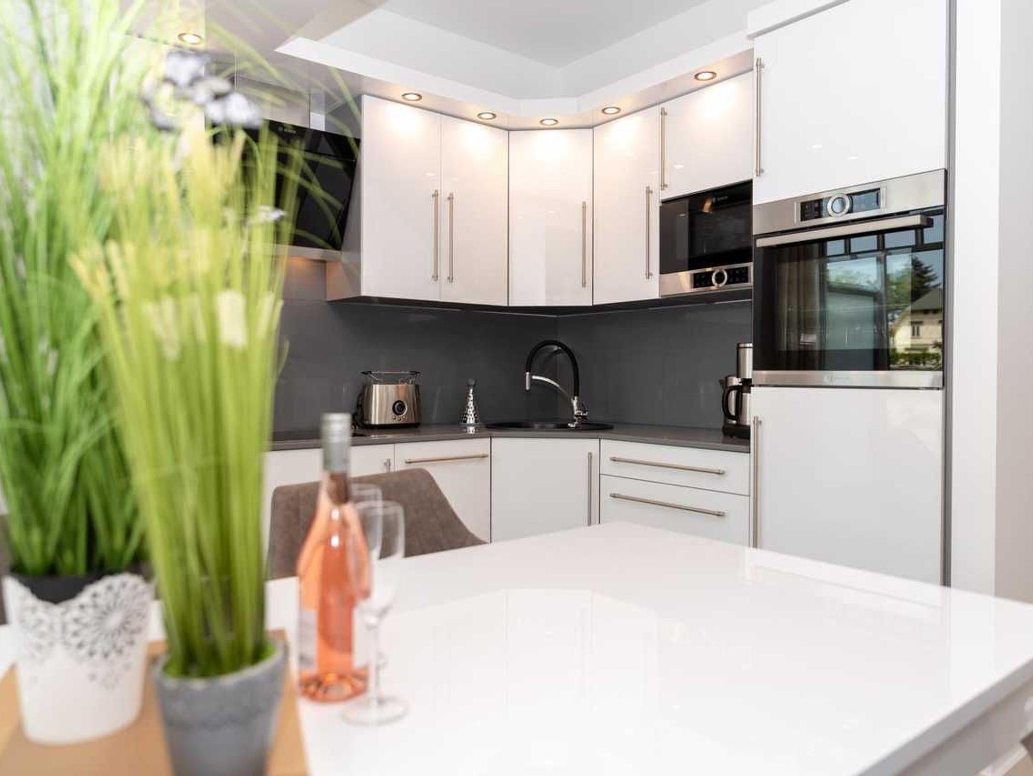 Die Küche ist voll ausgestattet und eine Waschmaschine mit Trockener gibt es.
