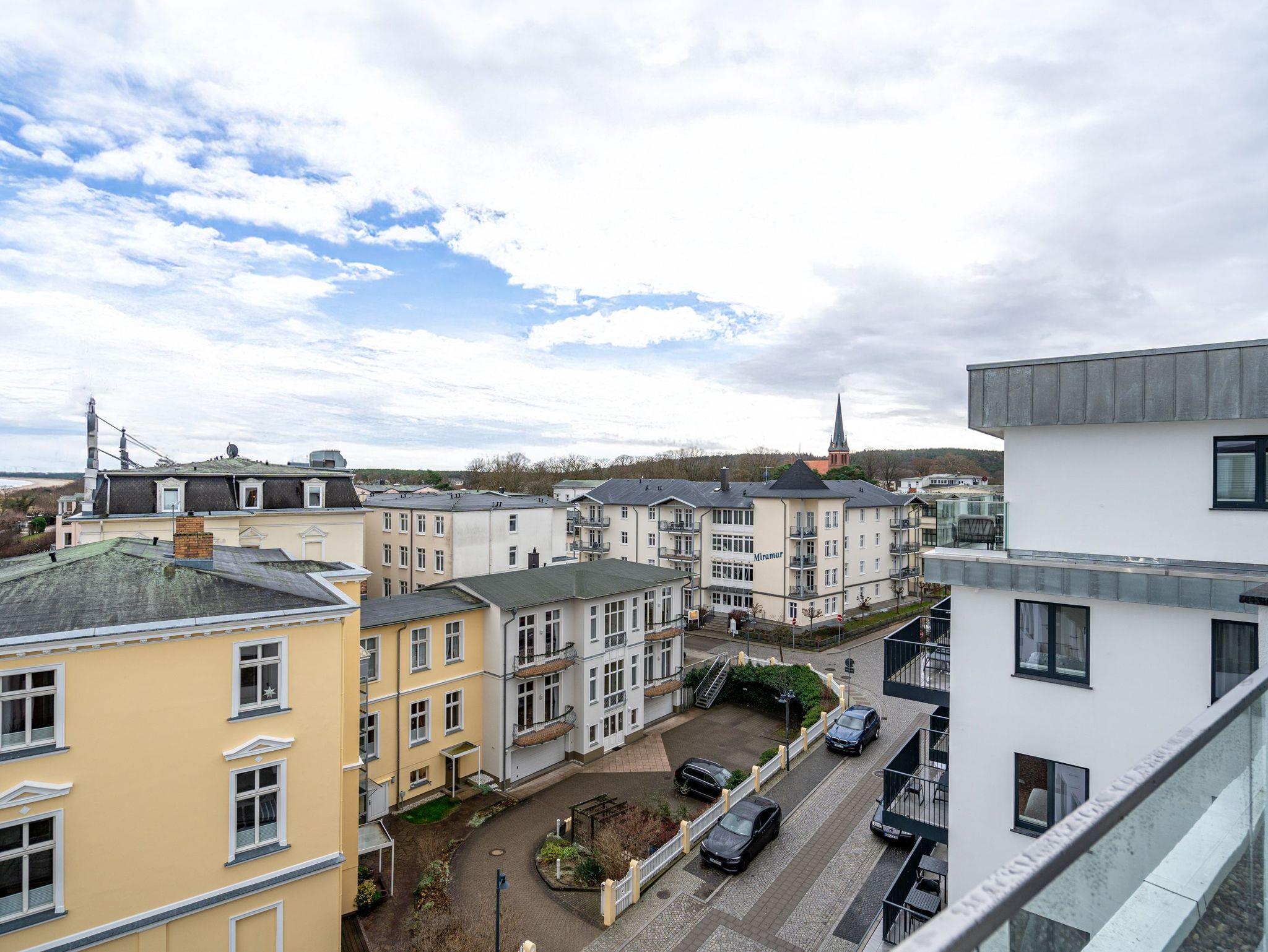 Die 2024 fertig gestellte Strandterrasse liegt direkt an der belebten Strandpromenade und bietet einen einzigartigen Ausblick auf die Grand Dame der historischen Seebrücken sowie die historische Konzertmuschel, einem beliebten Treffpunkt für Kunst und Kultur. Dahinter liegt die Ostsee ? ein Panorama, das zu den schönsten in den Kaiserbädern gehört. Es ist wie das Abtauchen in eine andere Zeit. In eine Zeit, in der man mit Stock, Sonnenschirm und Hut fürs ?Sehen und gesehen werden? über die Promenade schlenderte; aber auch in eine Zeit, in der ? damals wie heute ? Zeit einmal für eine kurze Weile keine Rolle spielt. Weil man angekommen ist im Loslassen, Entspannen und Genießen. Es ist dieser besondere Geruch nach Meeresluft und Freiheit, der in Erinnerung bleibt. Dazu die Bilder, die man mitnimmt. Von langen Strandspaziergängen, vom Lachen in fröhlich schäumenden Ostseewellen, von der Zeit in einem wunderschönen Urlaubsdomizil. Denn genau das ist die Strandterrasse mit ihren 56 modernen und exklusiven Ferienappartements direkt gegenüber der Ahlbecker Seebrücke. Die Ein-, Zwei- oder Dreizimmerwohnungen ? zwischen 40 und 70 Quadratmeter groß ? sind von einer Innenarchitektin gemeinsam mit unserem Erfahrungsschatz an Gästewünschen mit viel Liebe zum Detail und ganz individuell konzipiert worden. Entspannung und Wohlfühlen stehen an erster Stelle. Alles ist aufeinander abgestimmt und sorgt für eine gemütliche Atmosphäre. Wählen Sie zwischen einem Domizil in einem hellen, sandfarbenen Designkonzept oder einem Appartement mit anthrazitfarbenen Farbakzenten. Alle Appartements verfügen gleichermaßen über eine stilvolle und komfortable Einrichtung, die passgenau angefertigt worden ist, sowie über moderne Küchen und Bäder. Jedem Schlafzimmer ist ein eigenes Bad mit Dusche zugeordnet (außer App. B4.5). Die Appartements besitzen fast alle einen Balkon ? viele schauen sogar zur Ostsee hinaus. Die meisten Feriendomizile haben einen Elektrokamin und Infrarotsaunen. Im Erdgeschoss befindet sich ein separater Gemeinschaftsraum für Fahrräder. Außerdem besteht die Möglichkeit, im Gemeinschaftswaschraum 2 Waschmaschinen [&] Trockner zu nutzen. Ergänzt wird das Angebot durch eine Gemeinschaftssauna, die täglich von 11:00 bis 22:00 Uhr nutzbar ist. In der Tiefgarage (Einfahrtshöhe 2,03 Meter) steht für jede Wohnung 1 Pkw-Stellplatz zur Verfügung. Ist alles zur Zufriedenheit untergebracht? Dann kann der Urlaub ja beginnen. Und beim Blick vom Balkon über die Ostsee treffen sich zum Sonnenaufgang das Heute und das Damals. Gelassenheit legt sich beim Gang hinunter an den Strand auf die Seele. Jetzt darf die Zeit stehenbleiben.