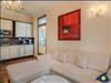 Die Wohnung verfügt über einen großzügigen Wohn-/Essbereich mit bodentiefen Fenstern. Die Aufbettung der 3. Person findet auf der Schlafcouch Platz.