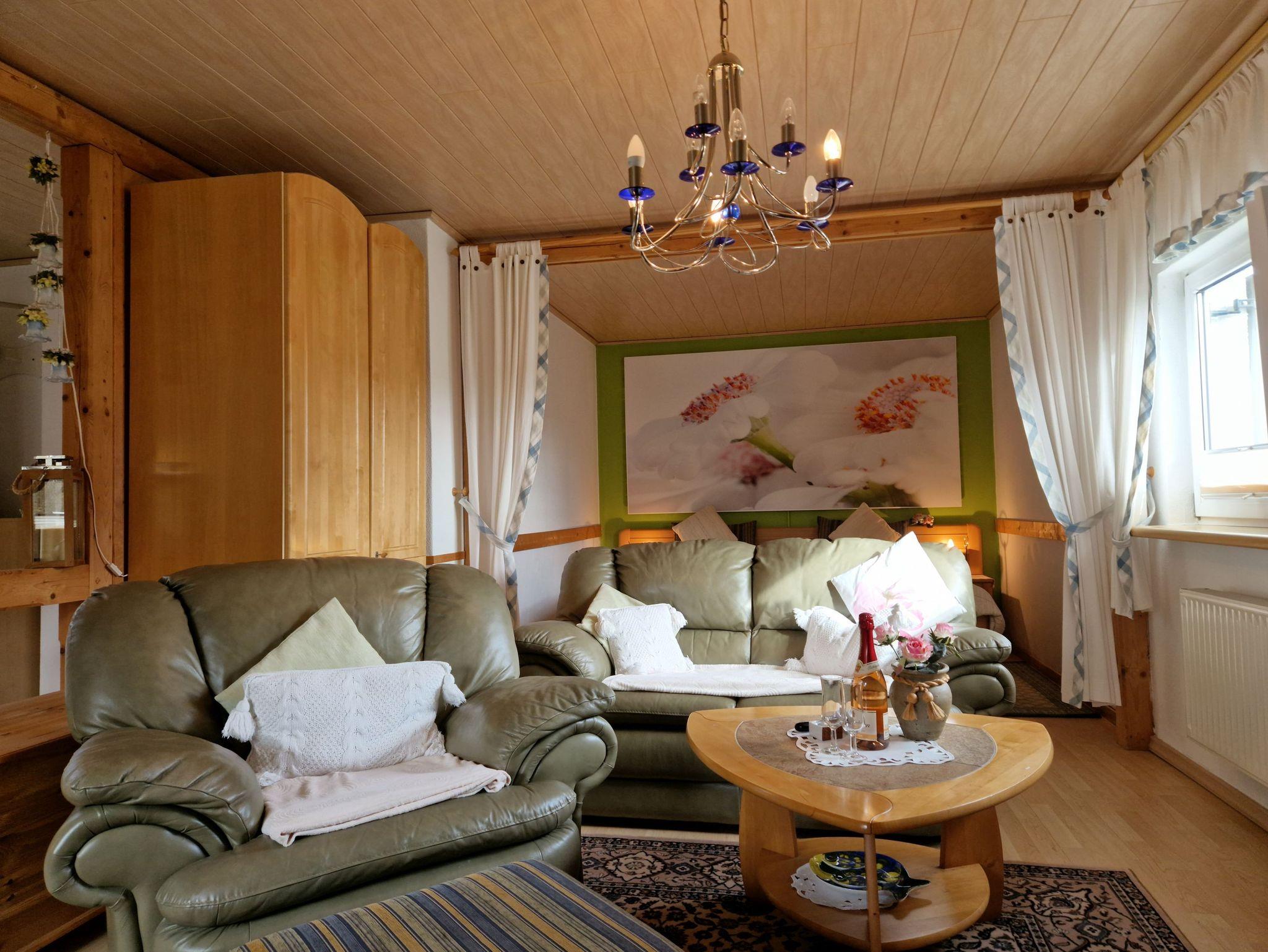 Die Ferienwohnung Veilchen, für 2 Erw. und 2 Kinder, hat eine Größe von 60 qm und verfügt über zwei separate Schlafzimmer, eine gut ausgestattete Küche, ein geräumiges Bad wie auch ein gemütlich eingerichtetes Wohnzimmer. Die Ferienwohnung befindet sich im Souterrain des Haupthauses und ist dadurch angenehm während der heißen Monate des Jahres. Sie ist über eine Treppe auf der Rückseite des Haupthauses zu erreichen.