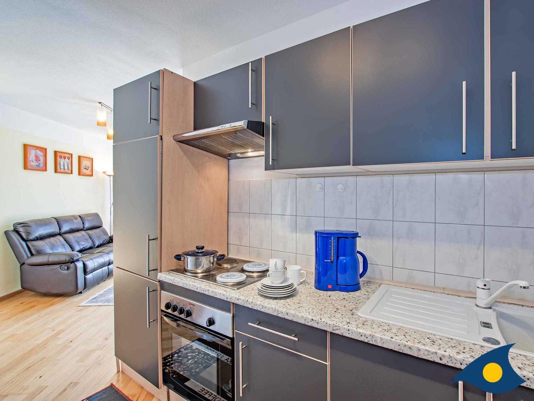 Die gemütliche, kleine Wohnung befindet sich in der ersten Etage des Hauses. Zum Wohnzimmer gehört eine komplett ausgestattete Küchenzeile. Die Couch (nicht ausziehbar) kann als Aufbettung für eine dritte Person genutzt werden. Schlafzimmer und Duschbad wurden liebevoll eingerichtet. In dem modernen Ambiente und in unmittelbarer Nähe zu Strand und Promenade können Sie erlebnisreiche, unvergessliche Urlaubstage verbringen.