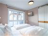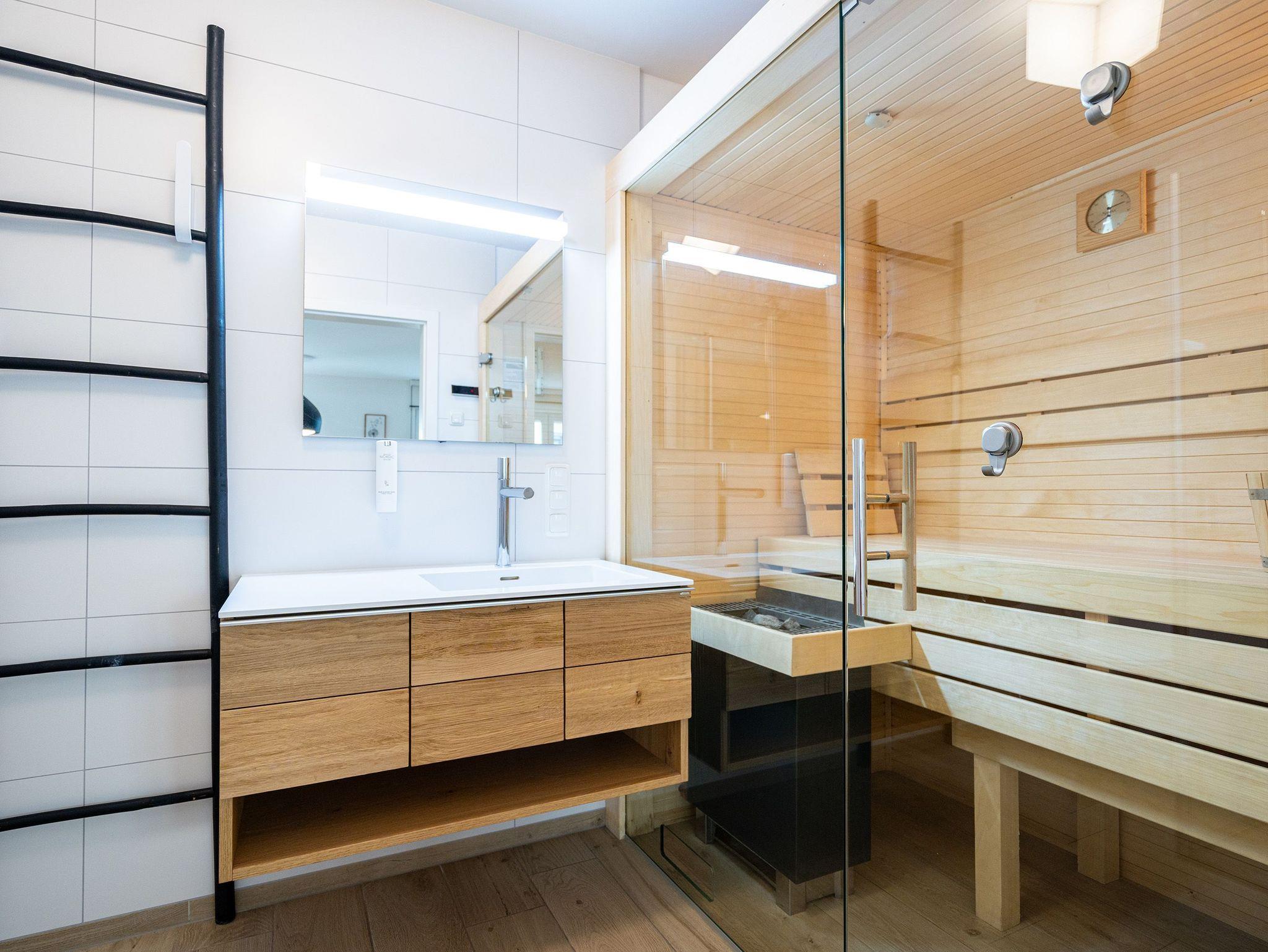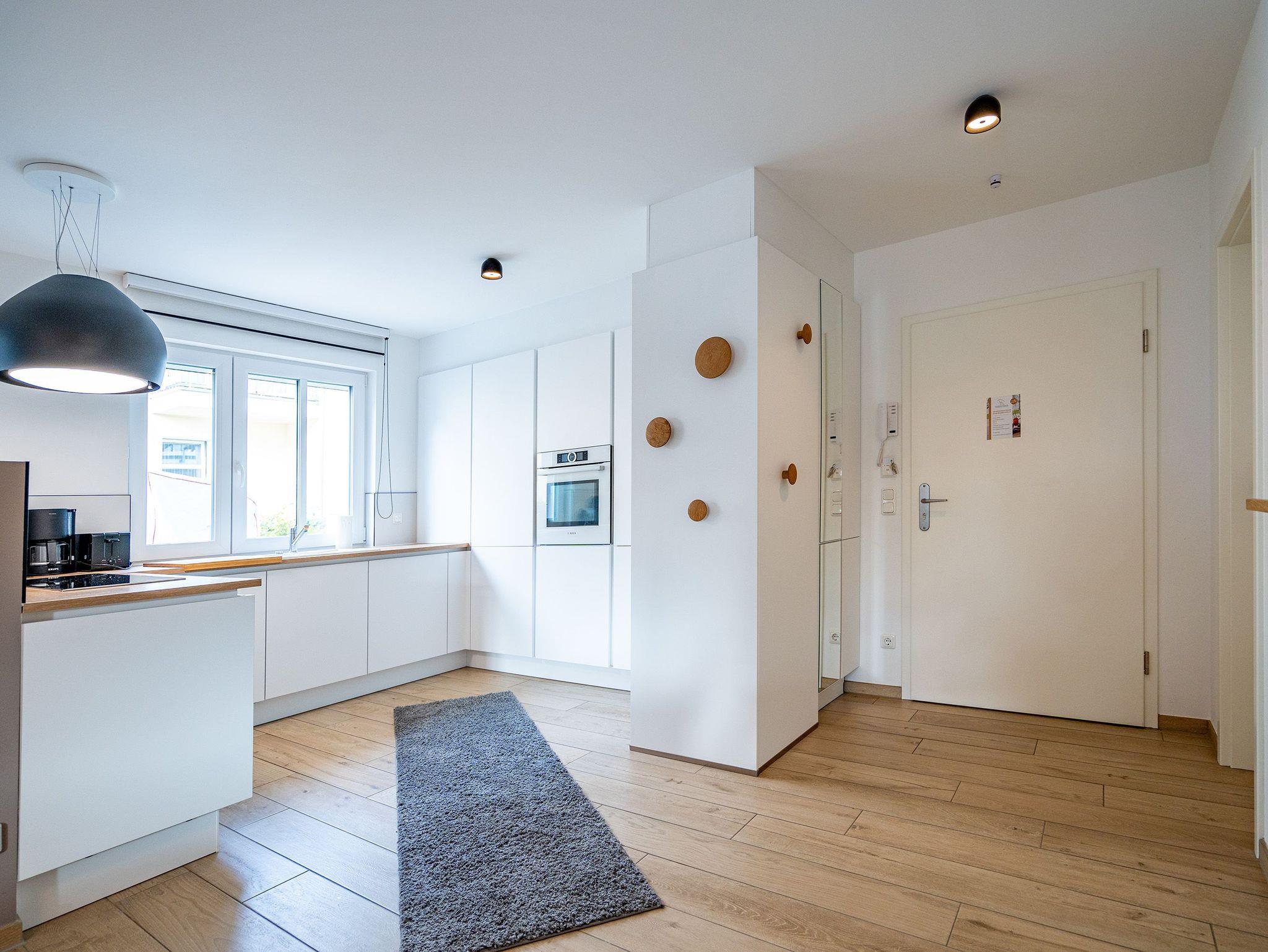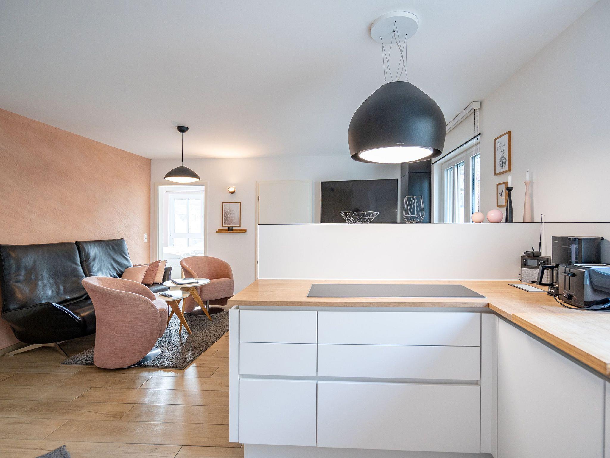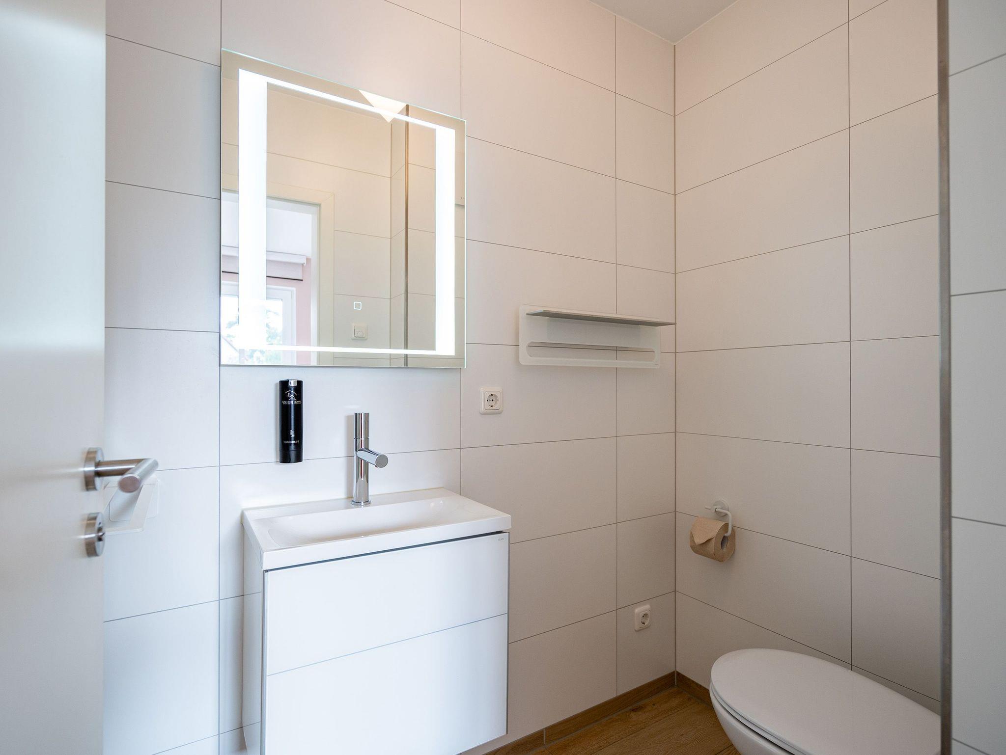 Die große Terrasse (25 Quadratmeter) ist sonnenüberflutet. Leise rauscht die Ostsee im Hintergrund. Der Nordwind trägt das Geräusch der nahen Wellen bis hierher in Ihr Urlaubsparadies. Die bequemen Gartenmöbel laden zum Relaxen und Ausspannen ein. Was will man mehr! Drinnen wartet auf 63 Quadratmeter ein stilvolles Interieur nur darauf, die Auszeit an der Ostsee so angenehm wie möglich zu machen. Vom gemütlichen Ledersofa aus haben Sie einen freien Blick auf den urigen Gas-Kamin, einen großen Flat-TV und auf das viele Grün, das das Domizil Berg 8 umgibt. Modern und trendy ist der schöne Ess-Tresen mit den hohen Schalenhockern. In den Tresen ist auf einer Seite eine freie Kochinsel eingelassen. Dahinter öffnet sich der Raum zu einer vollausgestatteten Küche mit hochwertigen Markengeräten und edlem Geschirr. Auch der Schlaf kommt in diesem wunderschönen Appartement natürlich nicht zu kurz. Zwei eigens dafür konzipierte Räume können bis zu vier Personen nicht nur schnöde beherbergen, sondern ihnen dank der beiden bequemen Doppelbetten (1,80 m x 2,00 m) eine wunderbar angenehme Entspannungszone bieten. Beide Zimmer haben einen Flat-TV. Und eines der beiden Schlafzimmer verfügt sogar über einen eigenen, kleinen Balkon (4 Quadratmeter). Auch das Badezimmer ist ein Ort zum Wohlfühlen und Runterkommen. Eine Panoramasauna sorgt für kuschelige Wärme an kühlen und tristen Tagen. Eine Dusche, ein Waschtisch und ein WC sind hier ebenfalls vorhanden. Außerdem gibt es ein Gäste-WC. Das WLAN ist in der Wohnung kostenfrei. Hier fängt der Urlaub bereits an der Haustür an. Denn alles ist für Sie vorbereitet. So sind die Betten bereits bezogen, wenn Sie anreisen und Handtücher liegen bereit. Ein wohnungseigener Pkw-Stellplatz befindet sich am Haus. Zudem besitzt die Wohnung Nummer 3 einen Abstellraum für Fahrräder. Auch Ihr kleiner Vierbeiner ( bis 7 kg) ist willkommen (gegen eine Haustierendreinigung).
