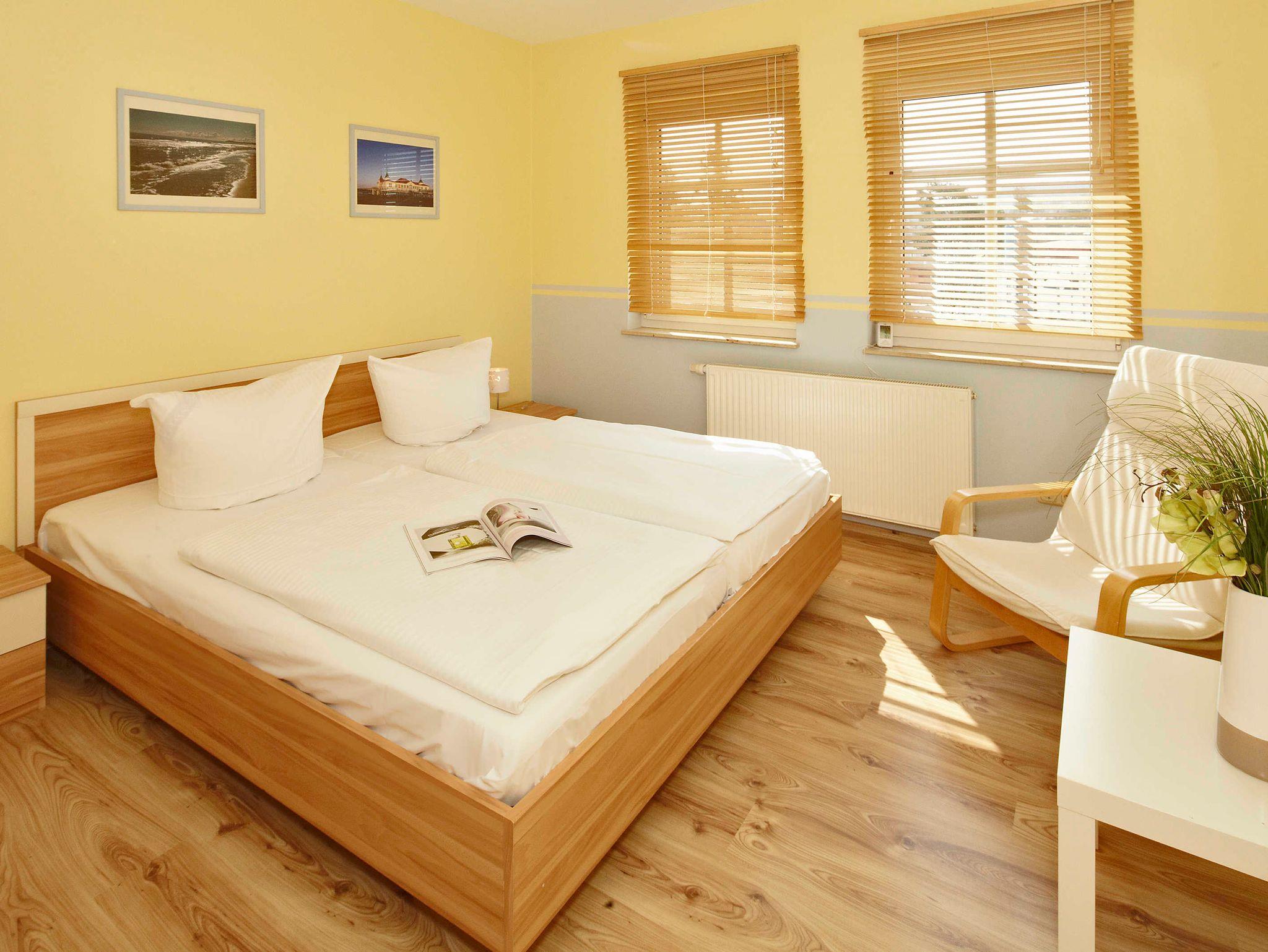 Der großzügige Garten bietet eine Grillecke sowie Sitz- und Sonnenmöglichkeiten und kann von allen Feriengästen genutzt werden. Ein Auto-Stellplatz für jede Wohnung auf dem Grundstück ist im Preis inbegriffen. Fahrräder können im abschließbaren Schuppen untergestellt werden. Handtuchpakete, Kinderreisebetten, und Hochstühle können kostenpflichtig ausgeliehen werden. Die in den Kaiserbädern fällige Kurtaxe ist bar vor Ort bei Anreise zu zahlen.
