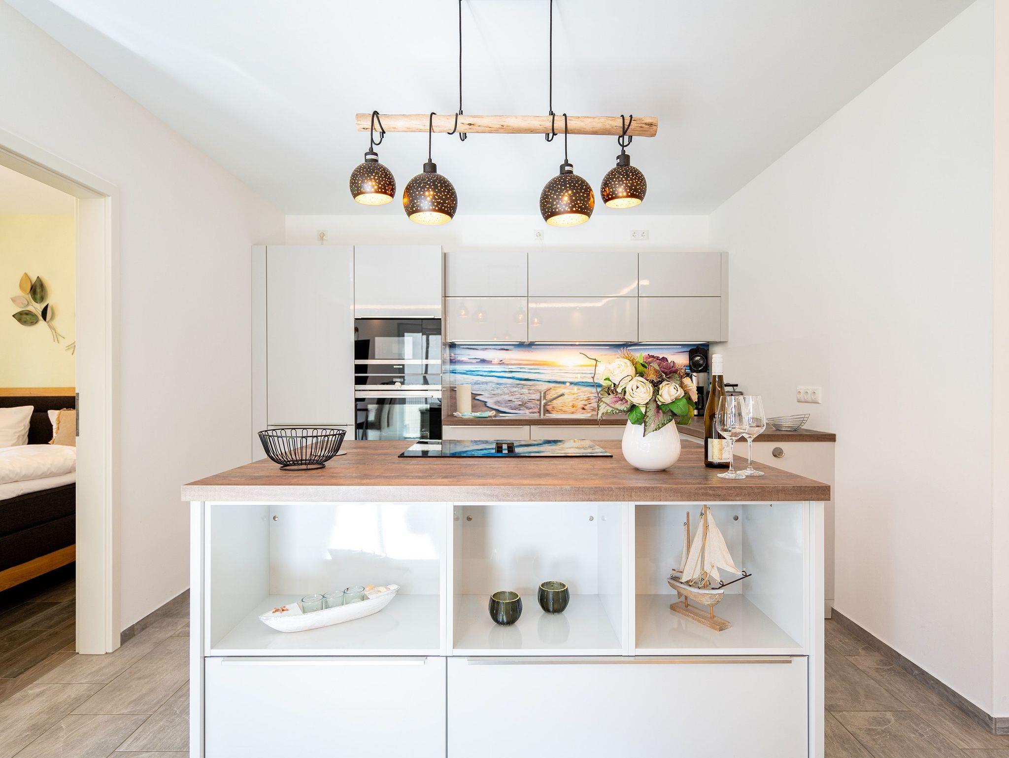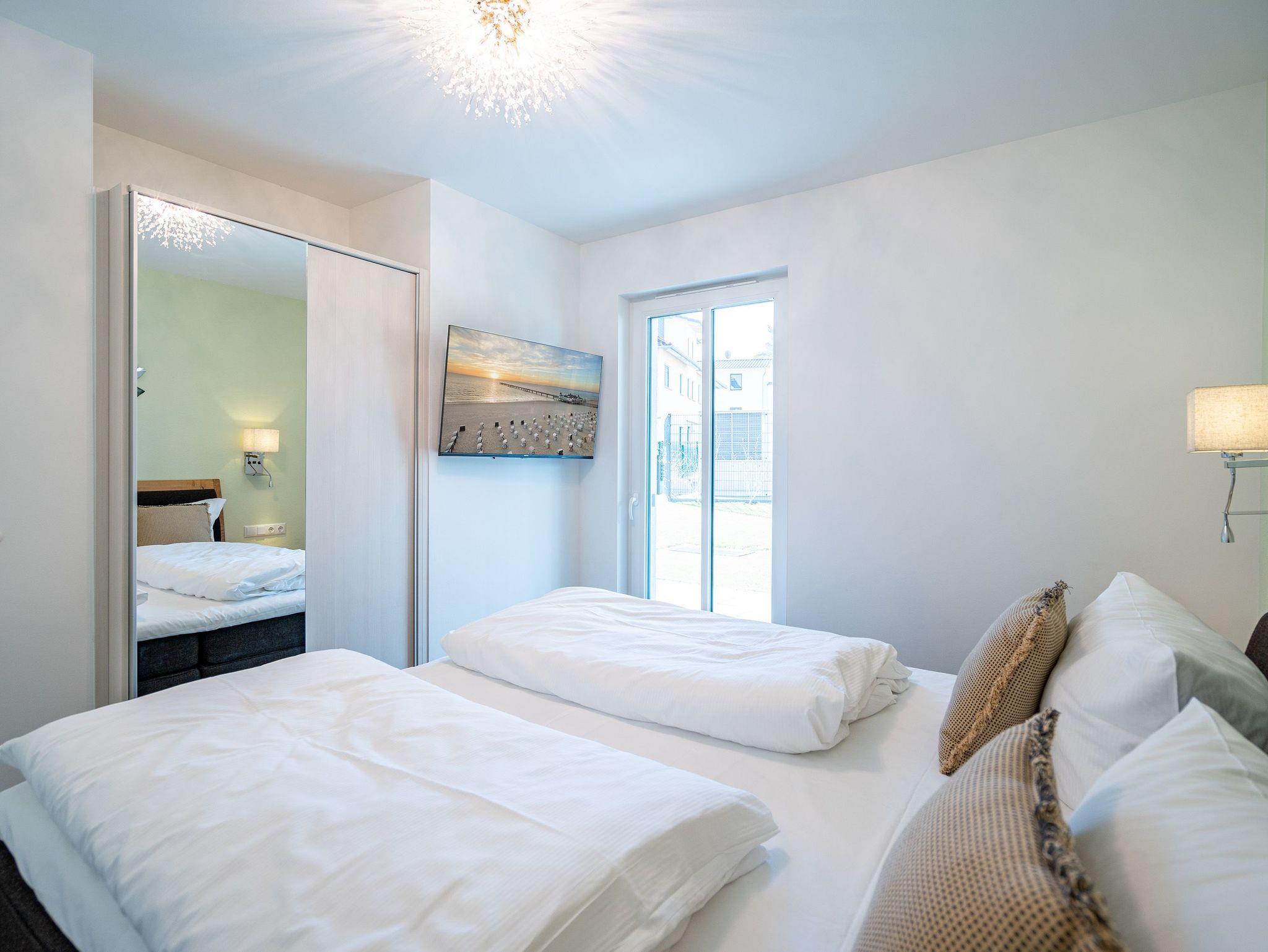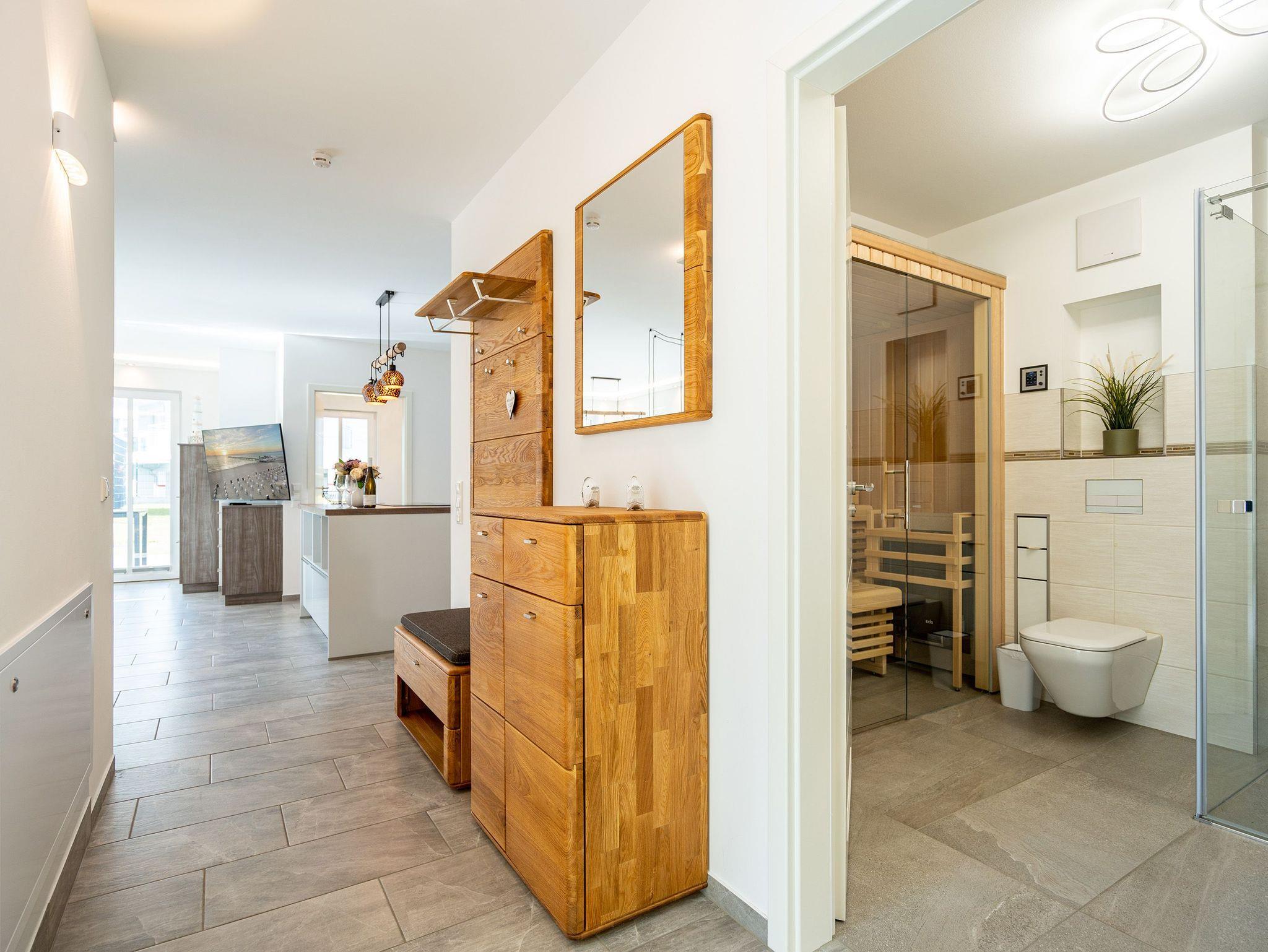 In diesen 2021 errichteten Häusern trifft Helligkeit auf Moderne und bietet Ihnen in seinen stilvoll eingerichteten Zwei- bis Drei-Zimmer Appartements Komfort auf höchster Ebene. Die offen gestalteten Wohn-Ess-Bereiche überzeugen durch ein stylisches Ambiente und ihr großzügiges Raumkonzept. Die teilweise mit Kochinseln ausgestatteten Küchen integrieren sich perfekt in den ebenso schlichten wie modernen Wohnraum. Alle Appartements verfügen über zwei Bäder oder ein Bad und ein zusätzliches Gäste-WC. Um Ihre Auszeit am Meer zusätzlich zu verschönern, wurden alle Appartements mit Gaskamin und Finnischer Sauna ausgestattet. Genießen Sie von den großzügigen Balkonen und Terrassen den Ausblick auf die parkähnliche Grünanlage oder verbringen Sie Ihren Abend auf dem frei zur Verfügung stehenden Grillplatz mit Sitzecke und Grill. Ein kostenloser PKW-Stellplatz in der Tiefgarage (Einfahrtshöhe 1,95m, Anfahrt über die Straße ?Kieferngrund? Höhe Hausnummer 17) gehört ebenso zum Komfort dieser Appartement-Häuser wie kostenfreies W-Lan. Für E-Autos steht am Objekt eine E-Ladesäule mit 2 Ladeplätzen (gesamt 22 kW) auf dem Grundstück kostenpflichtig zur Verfügung. Eine Waschmaschine und ein Trockner können Sie gegen Gebühr über die kostenlose App WeWash nutzen.