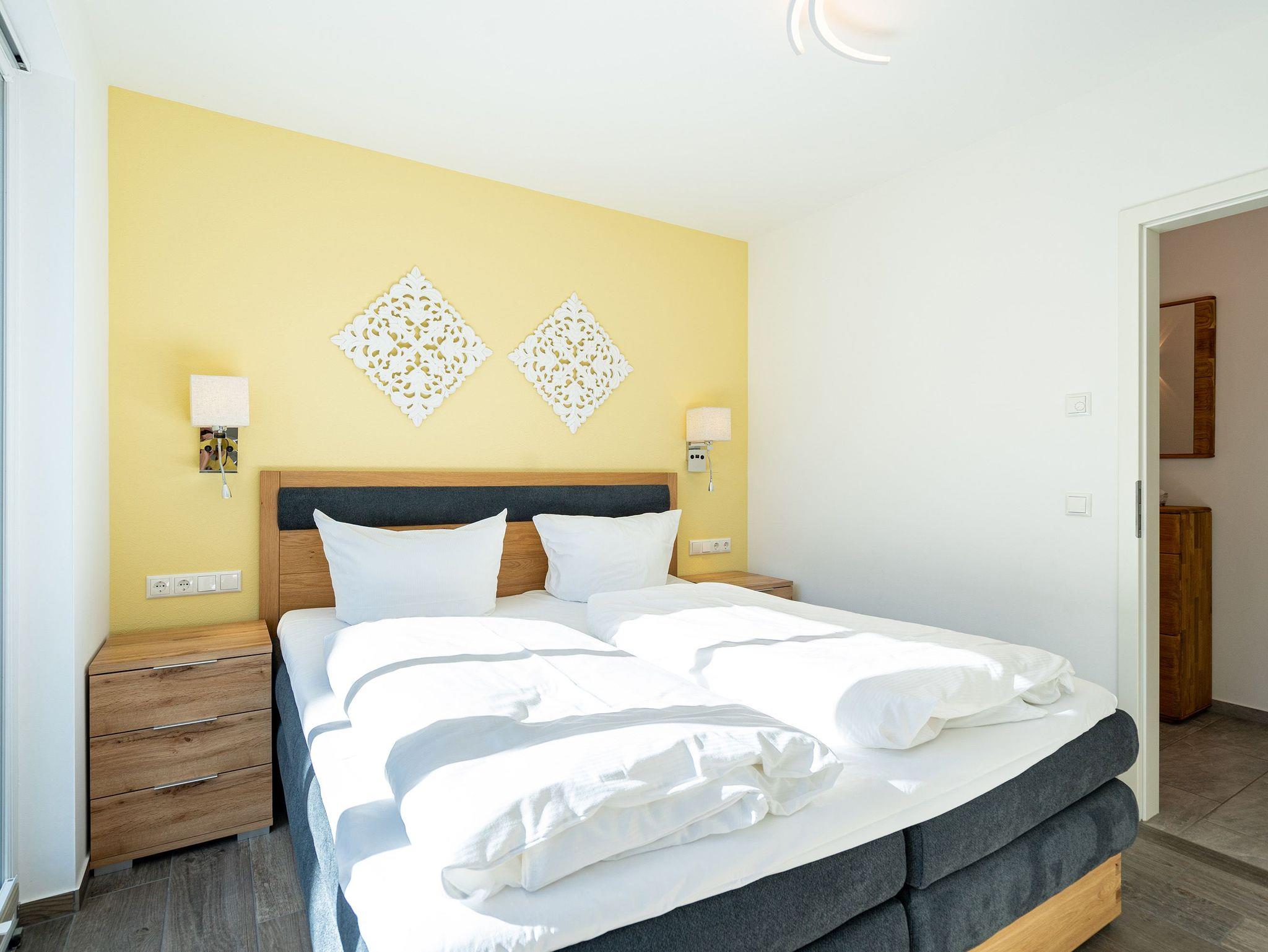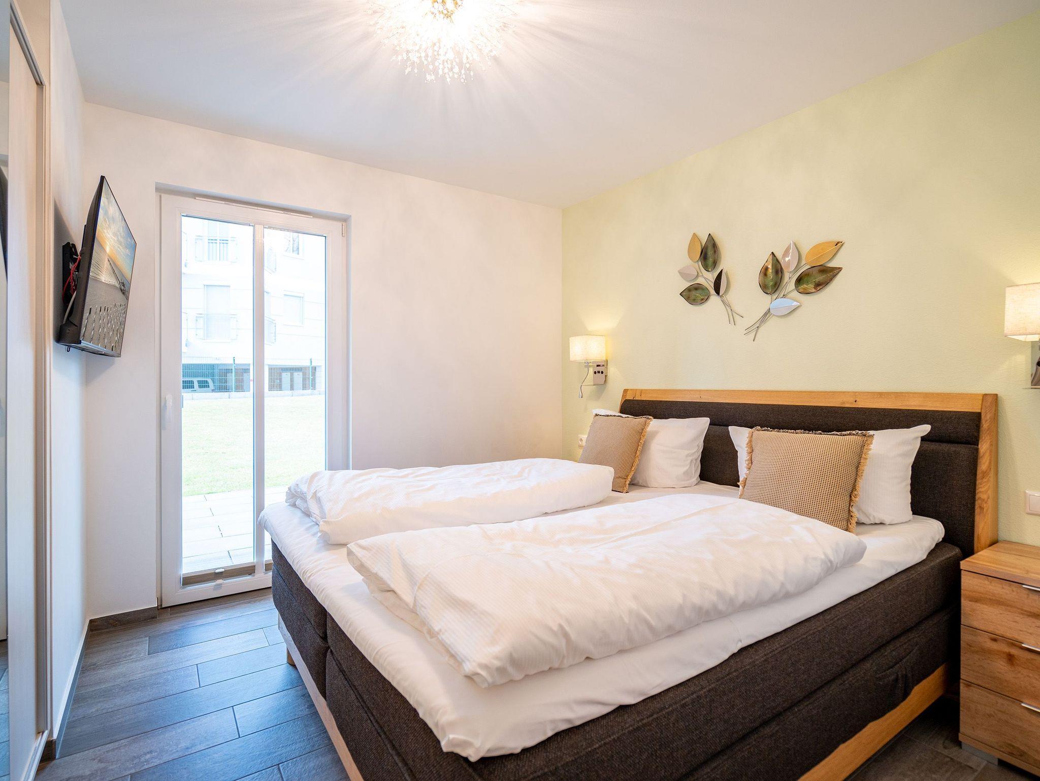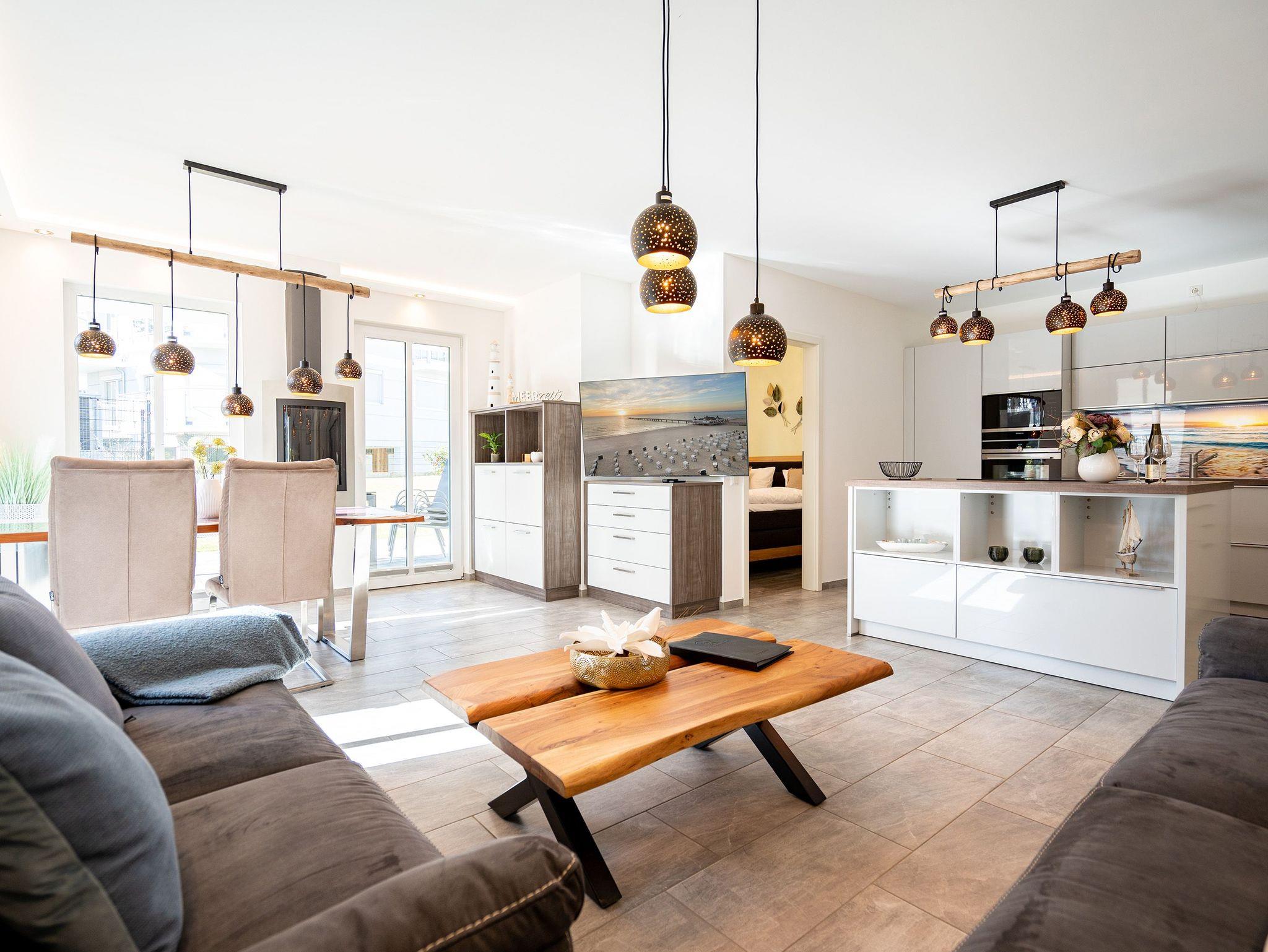 In diesen 2021 errichteten Häusern trifft Helligkeit auf Moderne und bietet Ihnen in seinen stilvoll eingerichteten Zwei- bis Drei-Zimmer Appartements Komfort auf höchster Ebene. Die offen gestalteten Wohn-Ess-Bereiche überzeugen durch ein stylisches Ambiente und ihr großzügiges Raumkonzept. Die teilweise mit Kochinseln ausgestatteten Küchen integrieren sich perfekt in den ebenso schlichten wie modernen Wohnraum. Alle Appartements verfügen über zwei Bäder oder ein Bad und ein zusätzliches Gäste-WC. Um Ihre Auszeit am Meer zusätzlich zu verschönern, wurden alle Appartements mit Gaskamin und Finnischer Sauna ausgestattet. Genießen Sie von den großzügigen Balkonen und Terrassen den Ausblick auf die parkähnliche Grünanlage oder verbringen Sie Ihren Abend auf dem frei zur Verfügung stehenden Grillplatz mit Sitzecke und Grill. Ein kostenloser PKW-Stellplatz in der Tiefgarage (Einfahrtshöhe 1,95m, Anfahrt über die Straße ?Kieferngrund? Höhe Hausnummer 17) gehört ebenso zum Komfort dieser Appartement-Häuser wie kostenfreies W-Lan. Für E-Autos steht am Objekt eine E-Ladesäule mit 2 Ladeplätzen (gesamt 22 kW) auf dem Grundstück kostenpflichtig zur Verfügung. Eine Waschmaschine und ein Trockner können Sie gegen Gebühr über die kostenlose App WeWash nutzen.